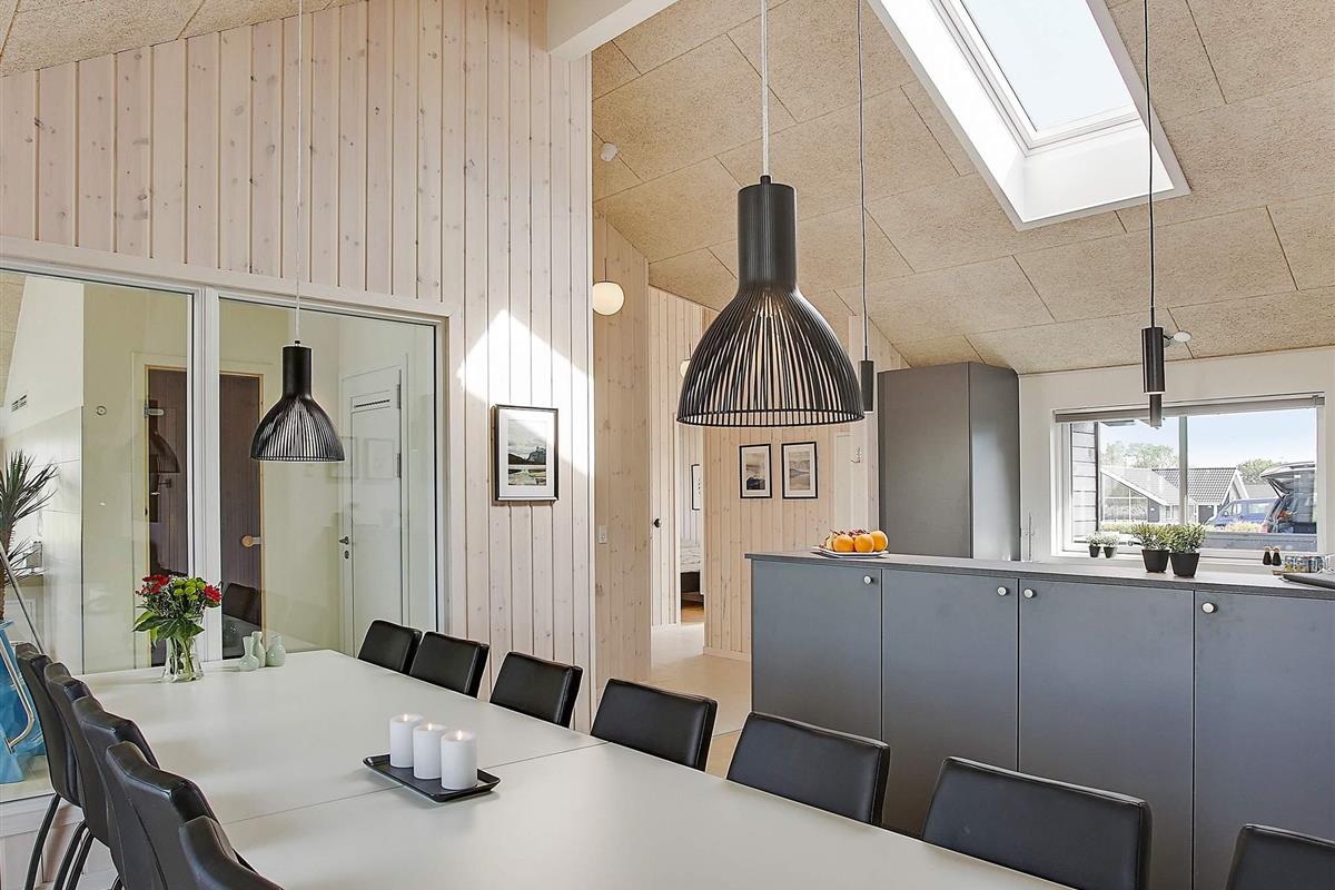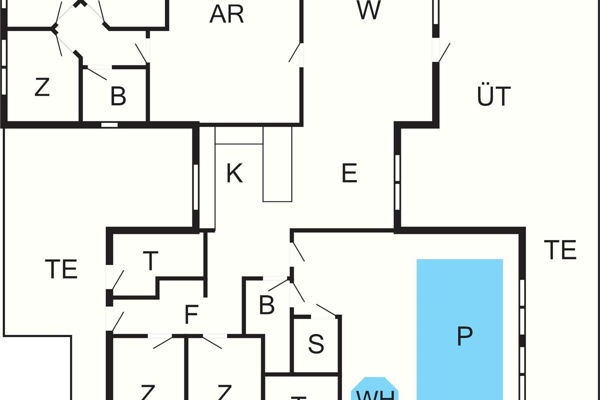 Das Haus ist sehr geräumig und hat eine gute Aufteilung. Im Zentrum liegen Küche und Essbereich. Auf der einen Seite davon befinden sich Wohnzimmer, Aktivitätsraum und ein Schlafbereich mit 3 Schlafzimmern und einem Bad. Auf der anderen Seite finden Sie den Poolbereich und zwei weitere Schlafzimmer. Weitere Schlafplätze gibt es auf dem Hems, der vor allem bei den etwas älteren Kindern beliebt ist. Für die ganz kleinen Gäste sind Kinderbett und Hochstuhl vorhanden.