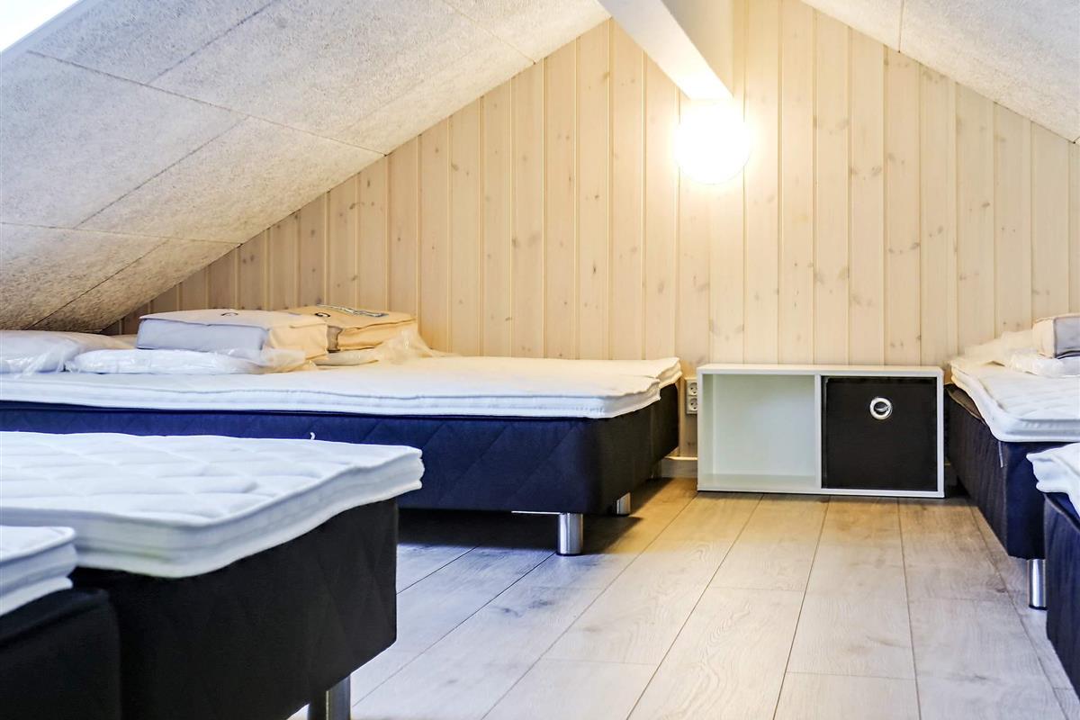 Die vielen Schlafplätze des Hauses wurden auf vier Schlafzimmer mit eigenem Bad und sechs Schlafzimmer mit zwei Einzelbetten aufgeteilt. Die restlichen sechs Schlafplätze befinden sich auf dem offenen Hems unter der Dachschräge des Hauses und eignen sich daher vornehmlich für Kinder/Jugendliche.