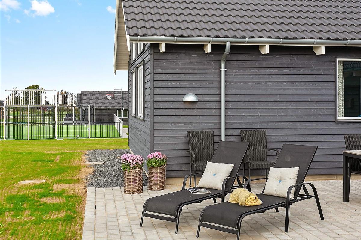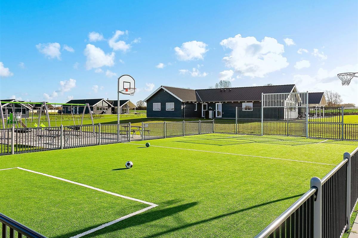 Im Außenbereich befindet sich eine Gemeinschaftsfläche für sportliche Aktivitäten und ein Spielplatz, zu beiden haben auch die Gäste des benachbarten Ferienhauses Zutritt. Das Unternehmen HAGS, eines der führenden Unternehmen der Branche, hat diesen abenteuerlichen Bereich nach neuesten Sicherheitsstandards entworfen und gebaut. Hier ist für jeden etwas dabei: vom Schaukel- und Klettergerüst mit Rutsche bis hin zum Spielfeld mit einem Belag aus Kunstrasen, der für Fußball, Basketball, Fußtennis, Volleyball und Badminton genutzt werden kann. Zwischen Spielplatz und Spielfeld befinden sich mehrere Tische und Bänke - ideal für ein Picknick oder eine Erfrischung zwischendrin. Neben diesem Bereich gibt es auch ein abgesenktes Trampolin (Nutzung nur auf eigens Risiko!).