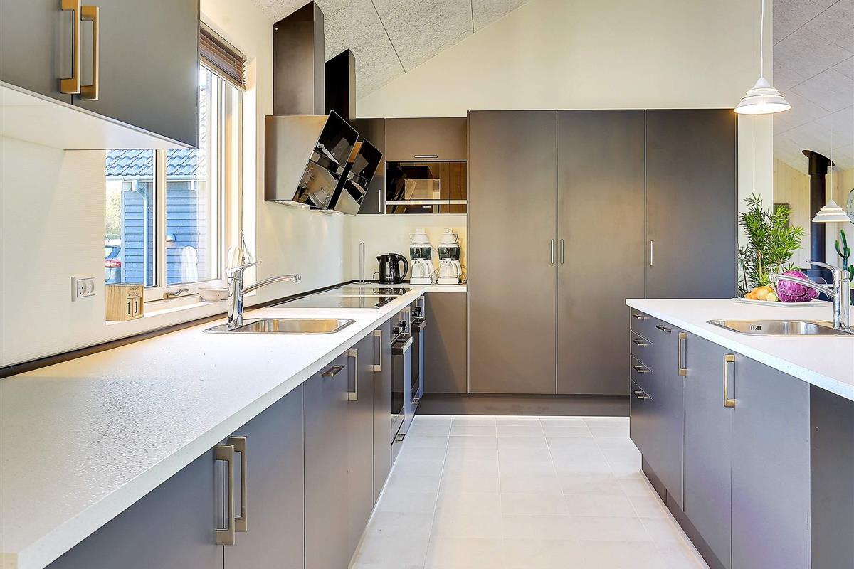 Im Wohnzimmer sorgt der Holzofen an kühleren Tagen für wohlige Wärme. Die große Küche bietet viel Platz und ist zeitgemäß, mit einem Induktionskochfeld ausgestattet. Zur Ausstattung gehören auch zwei Spülmaschinen, Kaffeemaschinen etc. Außerdem noch großer Gefrierschrank, Waschmaschine und Wäschetrockner im Haus.
