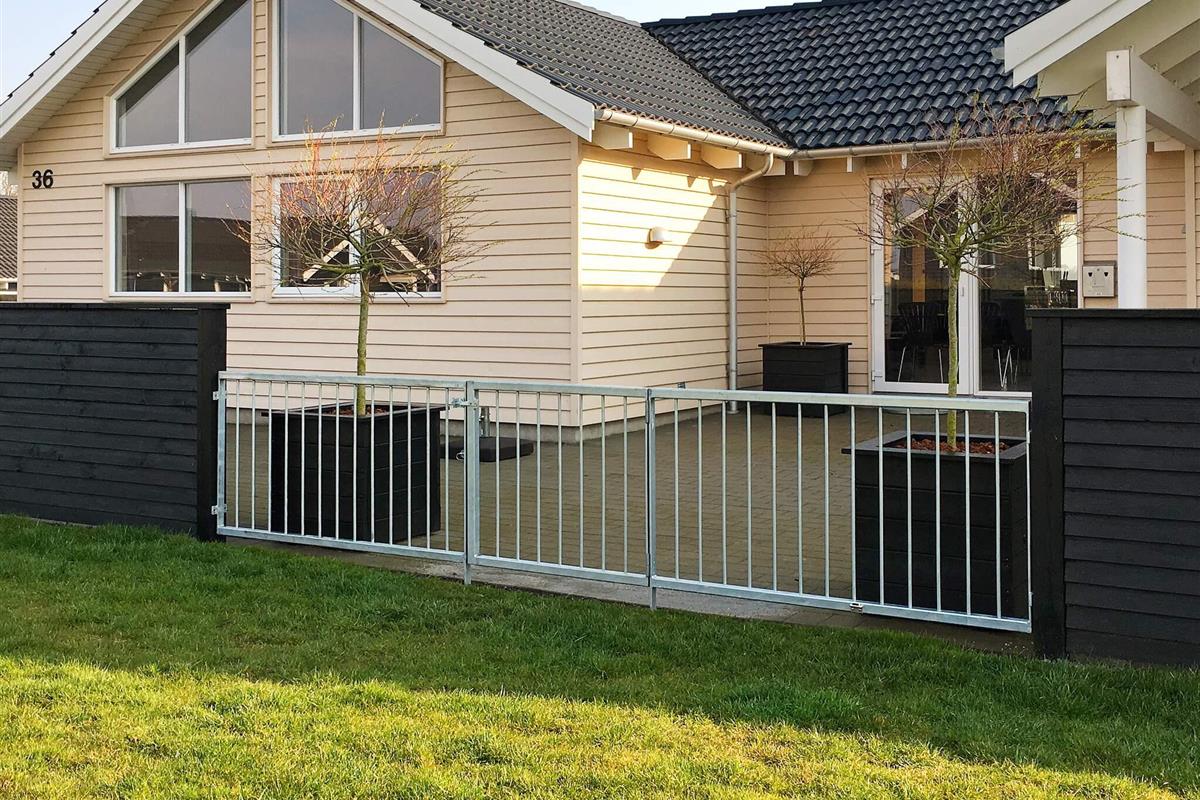 Im Außenbereich kann die große Terrassenfläche ganz abgeschlossen werden, ideal falls Kleinkinder oder der Vierbeiner der Familie mitreisen. Für Kinder stehen u.a. ein Spielturm mit Rutsche und ein Gartentrampolin zur Verfügung (Nutzung nur auf eigenes Risiko!).