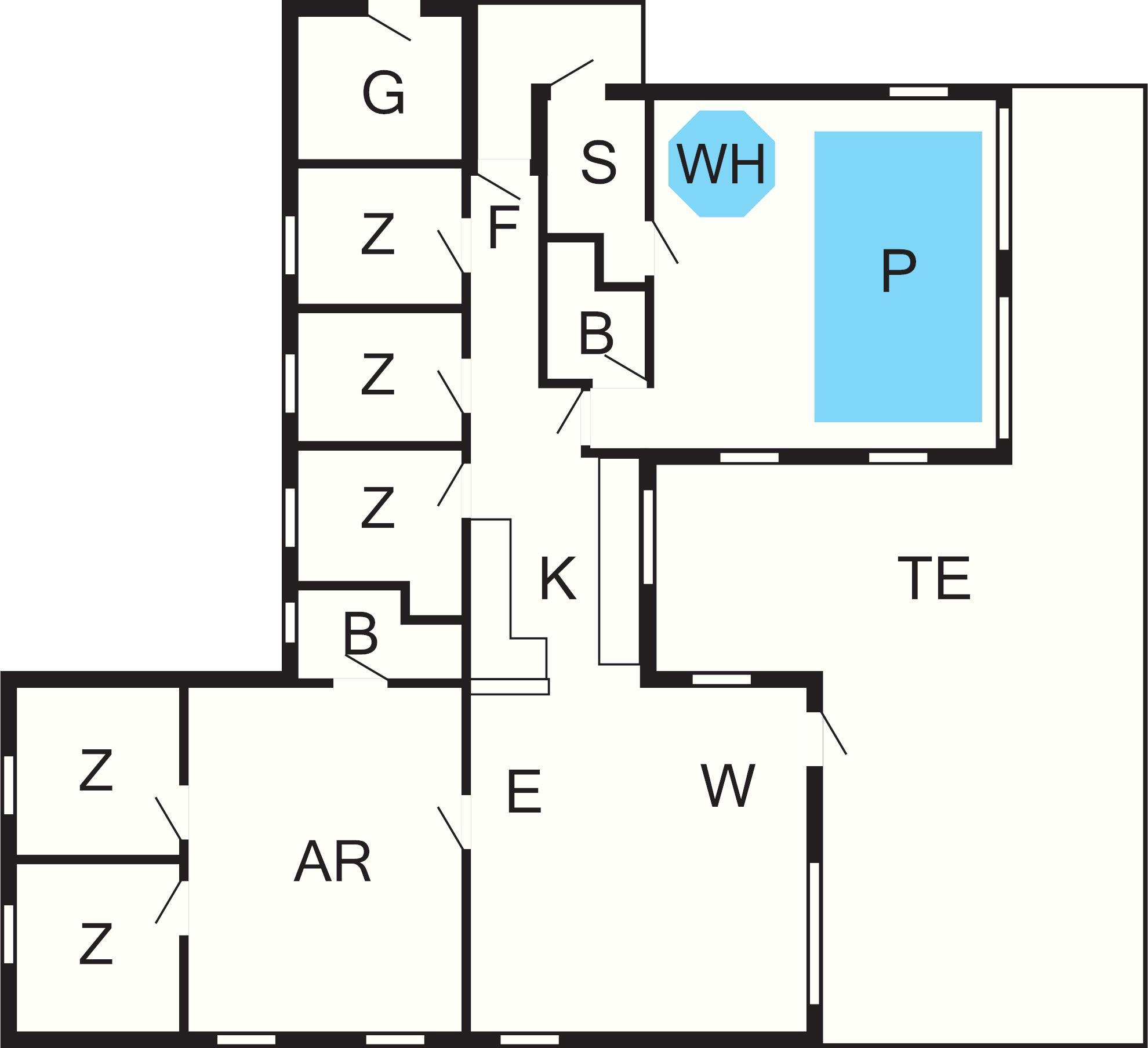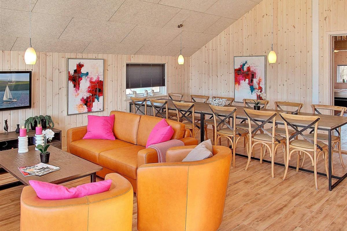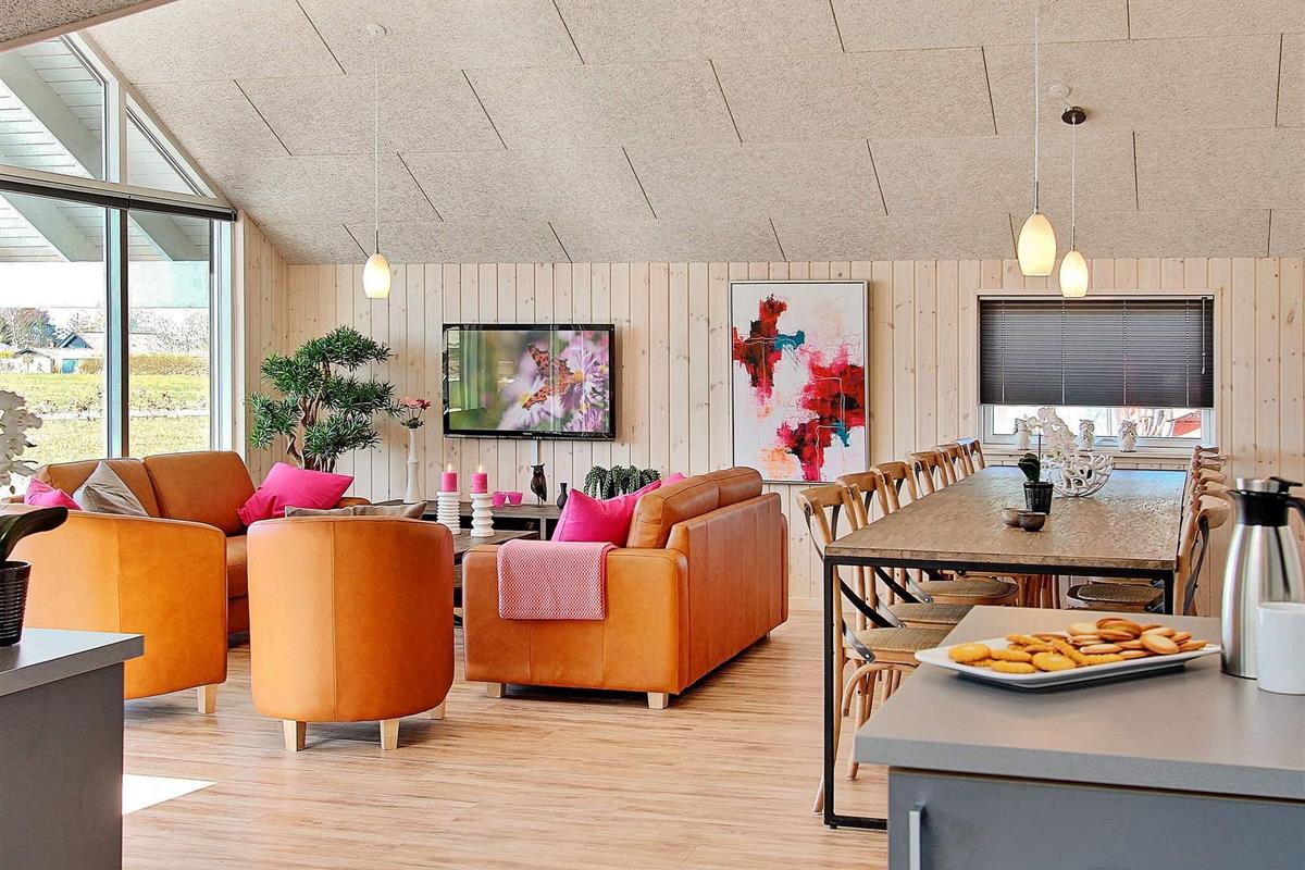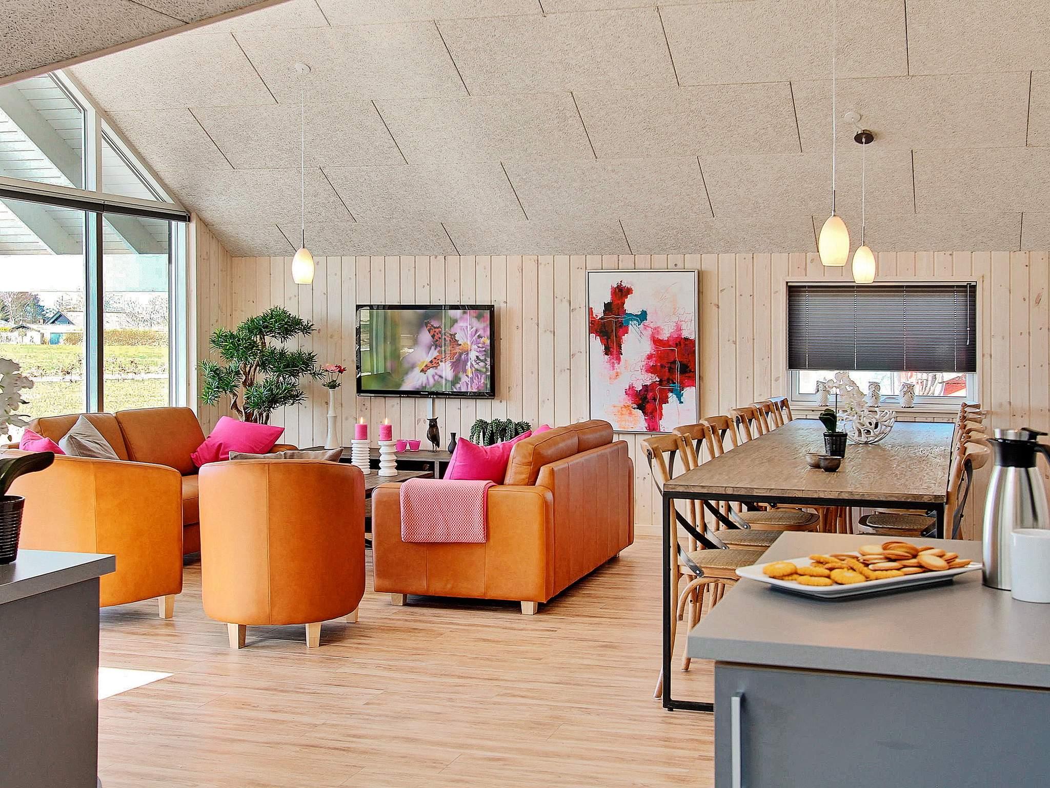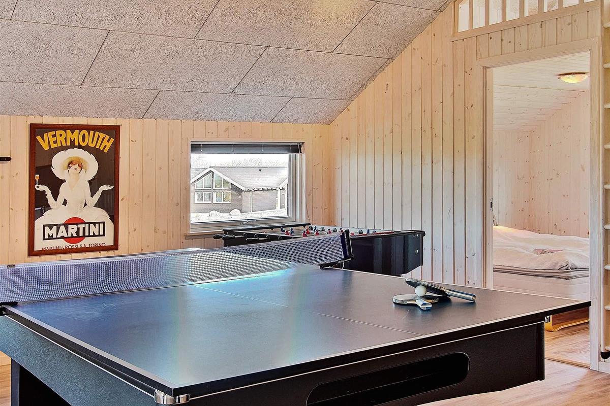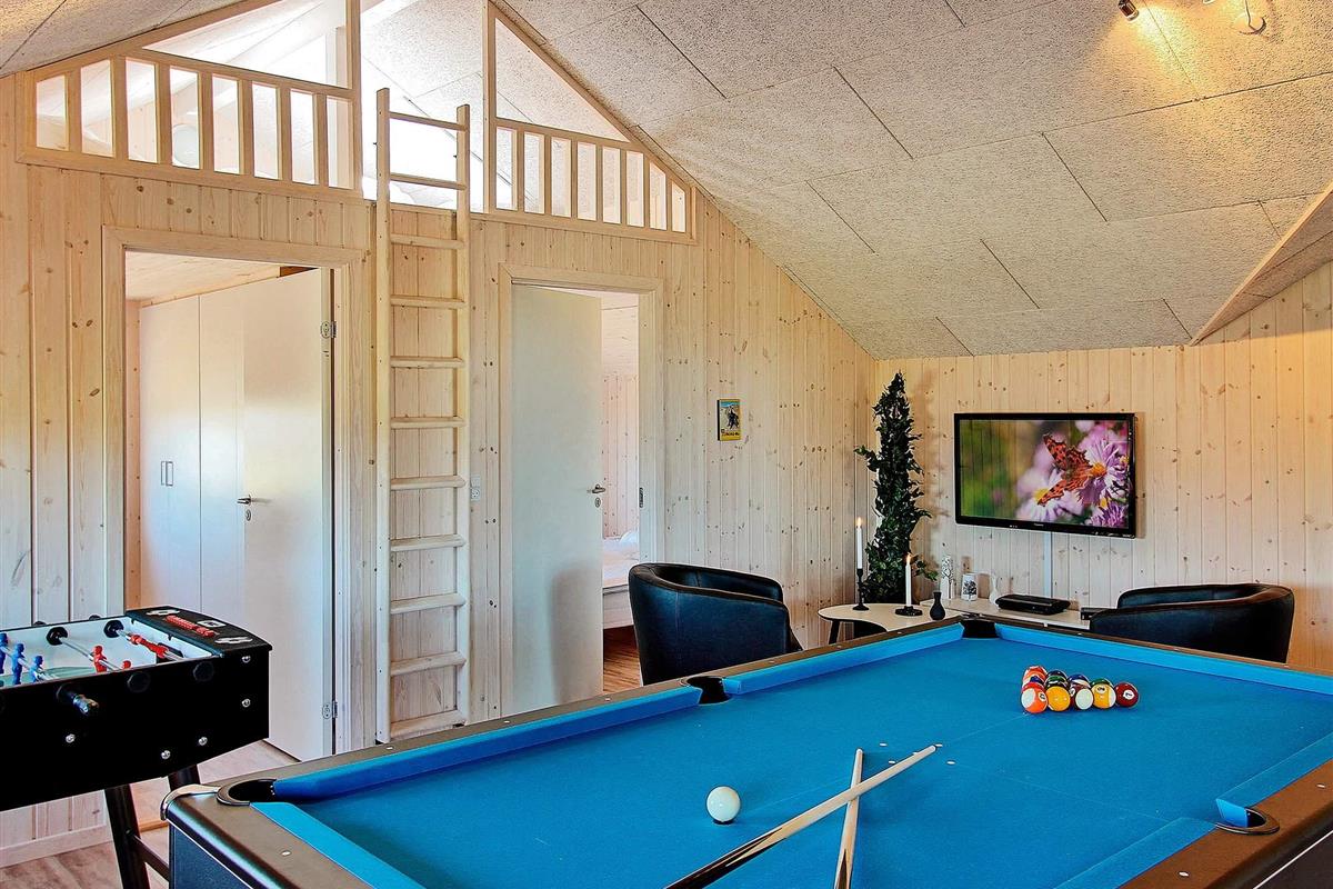 Das geräumige Haus hat eine gute Raumaufteilung. Der Ess-Wohnraum ist geschmackvoll eingerichtet und bietet u.a. Stereoanlage, Flachbild-TV und Sofabereich. Die fünf Schlafzimmer haben Boxspringmatratzen. Darüber hinaus gibt es eine geräumige Schlafgalerie (Hems). Im Aktivitätsraum können Sie sich beim Kickern, Billard, Tischtennis oder elektronischen Dart herausfordern. Die Küche ist mit zahlreichen Hilfsmitteln ausgestattet, die man auch im Urlaub nicht missen möchte. Es gibt zwei Badezimmer mit Fußbodenheizung. Die Erwärmung des Hauses erfolgt mittels Erdwärme.