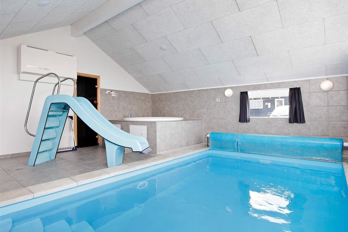 Der Poolraum bietet neben dem Swimmingpool einen eingebauten Whirlpool und eine Sauna. Der Pool misst 18 m², hat eine Gegenstromanlage und eine Rutsche für Kinder. Genießen Sie hier die Möglichkeit sowohl aktiv zu sein als auch zu Entspannen. Nach dem feuchtfröhlichen Spaß kann man es sich vor dem knisternden Feuer des Holzofens gemütlich machen. Es gibt drei Fernseher im Haus sowie PlayStation3 und DVD-Spieler.
