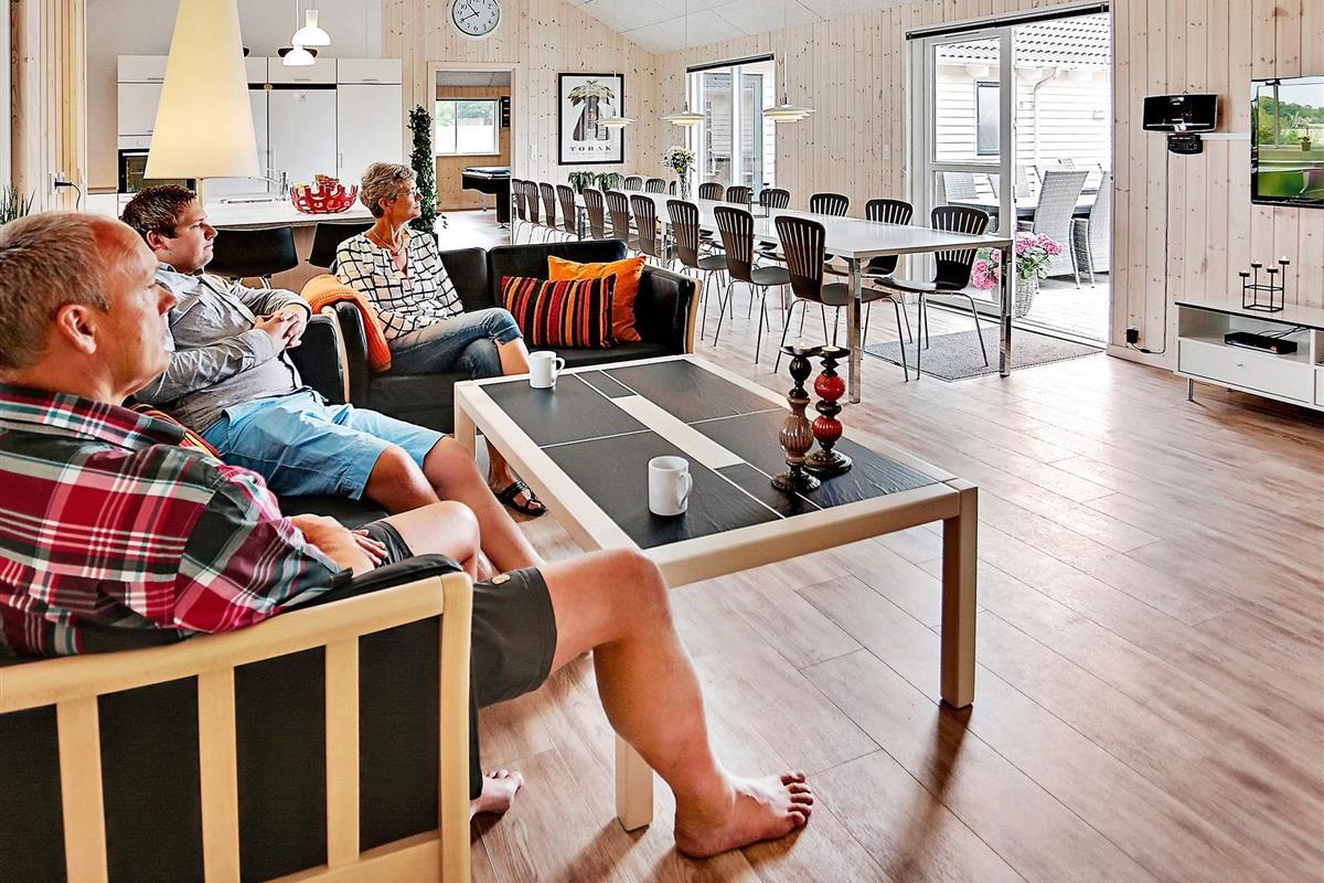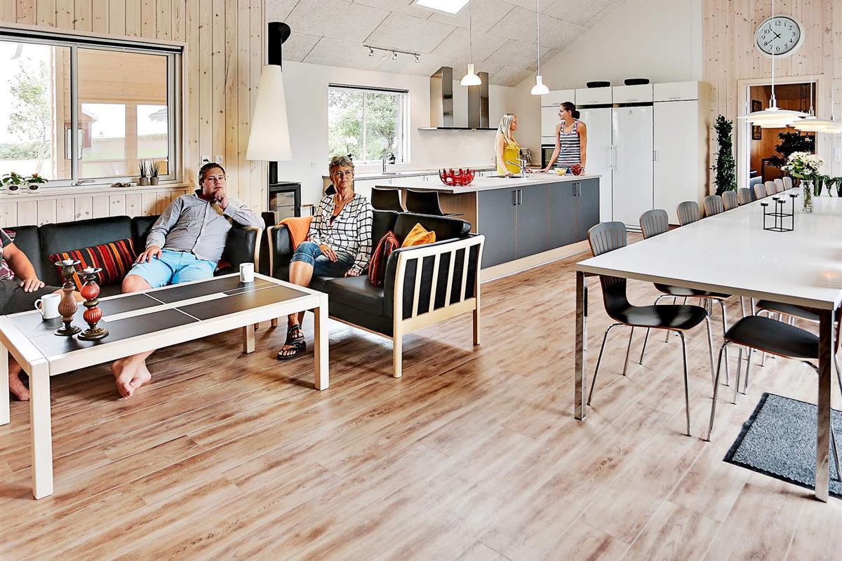 Der Ess-Wohnraum ist geschmackvoll eingerichtet und bietet , Flachbild-TV und Sofabereich. Die acht Schlafzimmer haben Boxspringmatratzen. Darüber hinaus gibt es zwei geräumige Schlafgalerien (Hems).