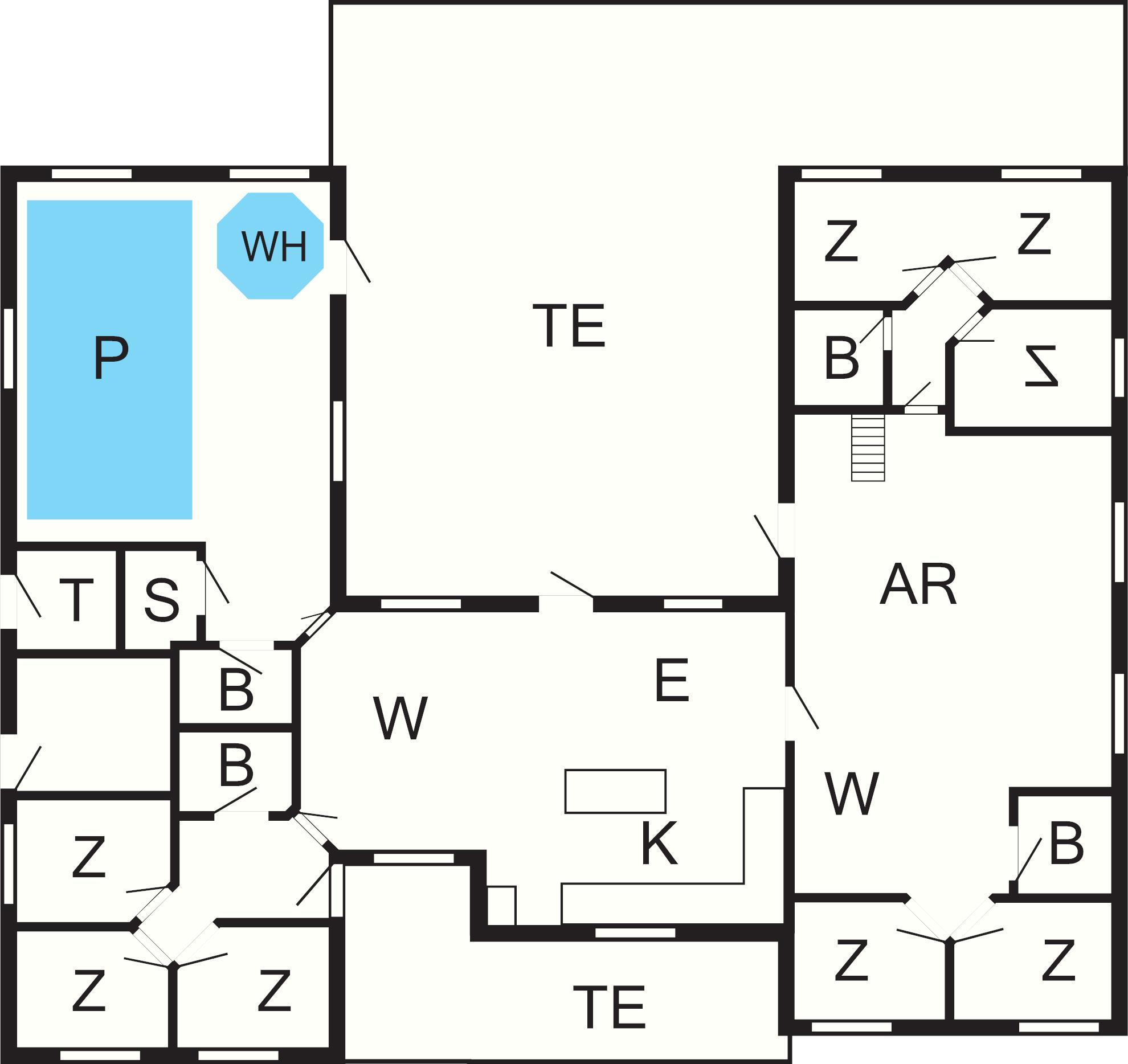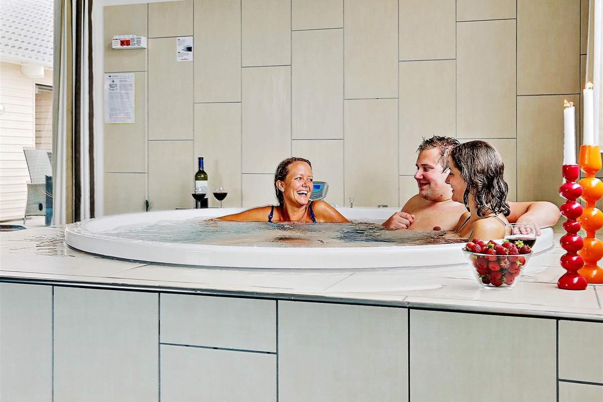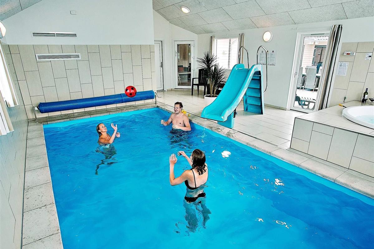 Der Poolraum bietet neben dem Swimmingpool einen eingebauten Whirlpool und eine Sauna für 4-6 Personen. Der Pool misst 18 m², hat eine Gegenstromanlage und eine Rutsche für Kinder. Genießen Sie hier die Möglichkeit sowohl aktiv zu sein als auch zu Entspannen. Nach dem feuchtfröhlichen Spaß kann man es sich vor dem knisternden Feuer des Holzofens gemütlich machen. Es gibt mehrere Fernseher im Haus.