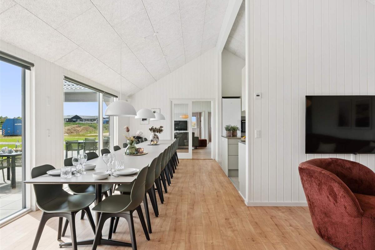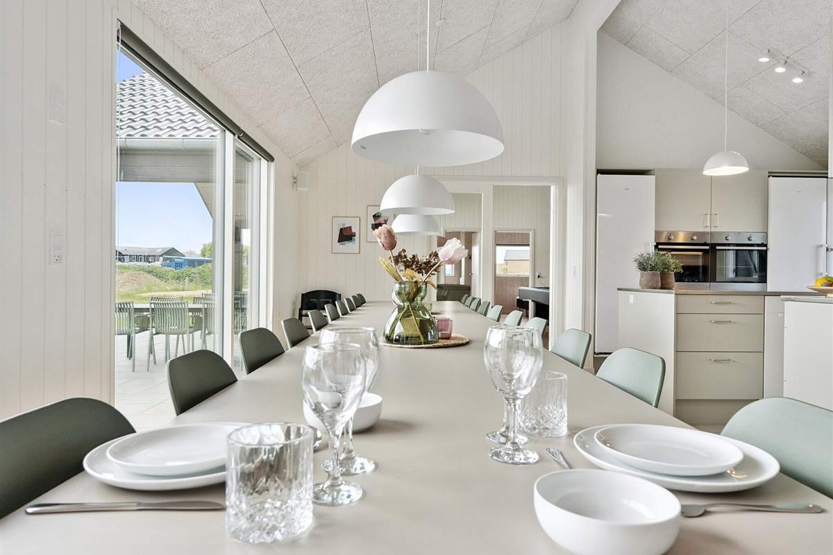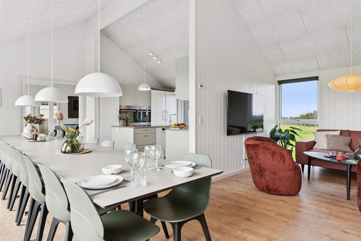 Der große Küchen- und Essbereich ist der natürliche Treffpunkt des Hauses, wo die ganze Gruppe zusammenkommen kann. Hier finden Sie eine XL-Küche mit zwei Backöfen, zwei Geschirrspülern und zwei Kühlschränken, sodass das Kochen selbst für große Gruppen zum Kinderspiel wird. Der Essbereich ist geräumig und ermöglicht es allen, gemeinsam zu essen und sich dabei ungezwungen zu unterhalten. Wenn es Abend wird, können Sie sich in das gemütliche Wohnzimmer zurückziehen, Brettspiele spielen, Filme schauen oder einfach die Gesellschaft der anderen genießen.