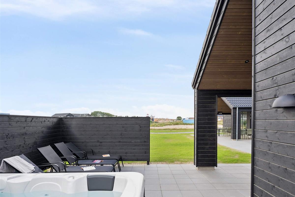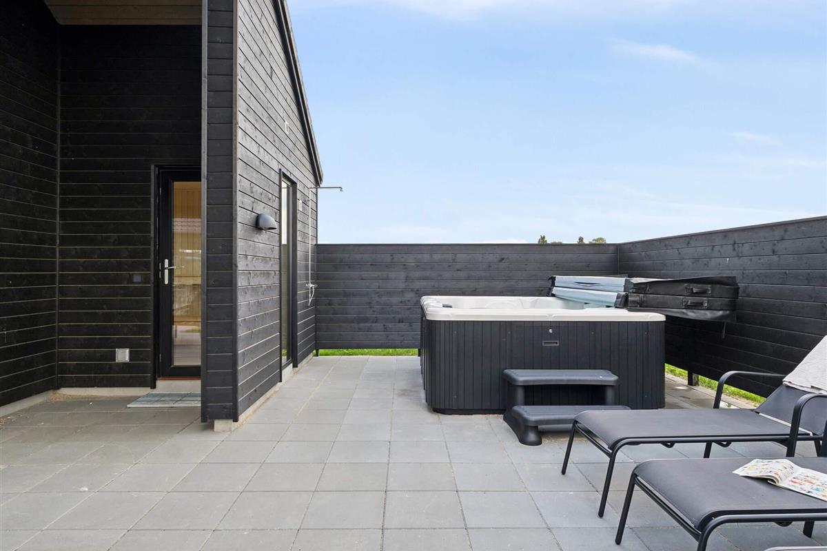 Der große Poolbereich des Ferienhauses ist ideal für Kinder und Erwachsene. Hier können Sie im Pool mit Wasserrutsche planschen. Wenn Sie eher auf Wellness stehen, erwartet Sie im separaten Wellnessbereich außen ein schöner Whirlpool und eine Sauna. Dort können Sie sich entspannen und einen ruhigen Moment genießen, während der Rest der Gruppe auf den Loungemöbeln unter der überdachten Terrasse entspannt.