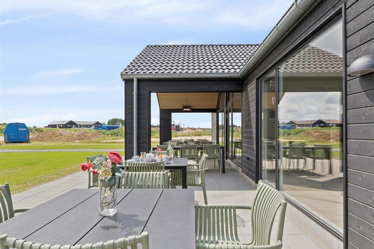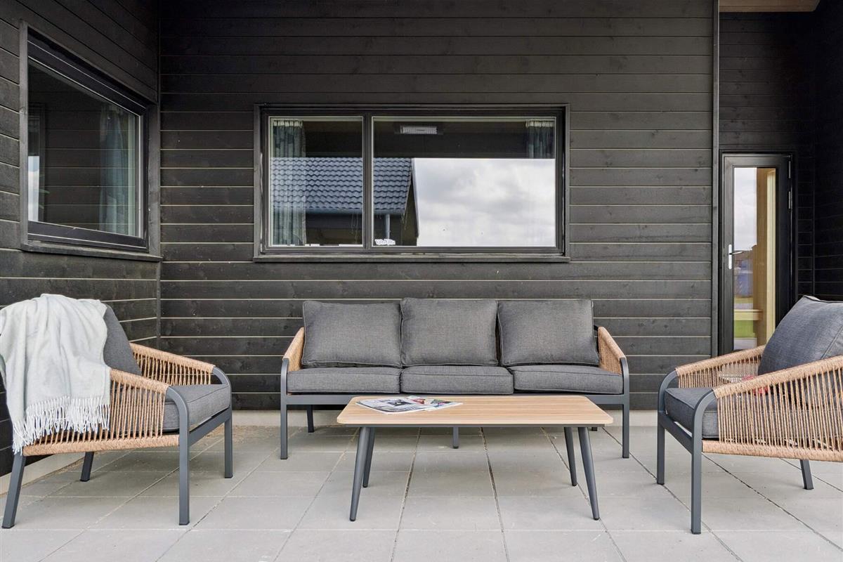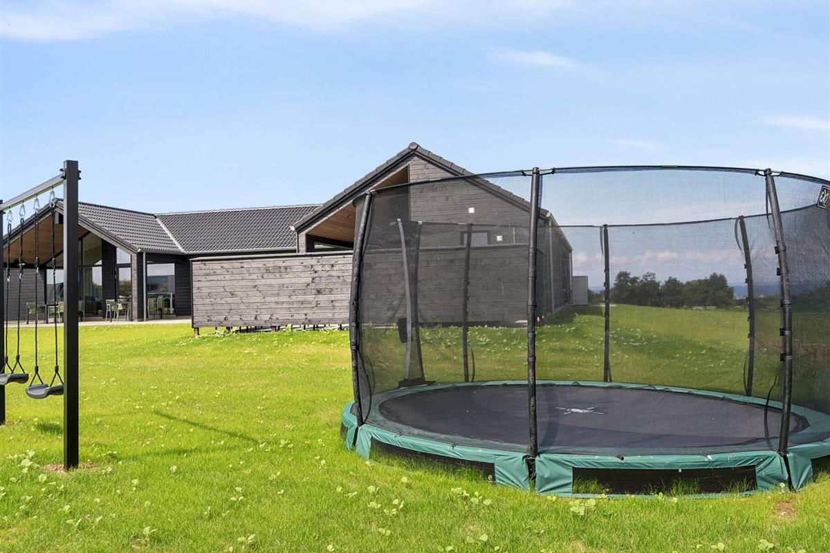 Bei schönem Wetter lädt die große Terrasse zum gemütlichen Beisammensein ein. Der lange Esstisch bietet Platz für alle, während der Grill für die Zubereitung köstlicher Mahlzeiten bereitsteht. Die Kinder können im Garten spielen, wo es ein abgesenktes Gartentrampolin und Schaukeln gibt – ideal für stundenlangen Spaß und Spiel.