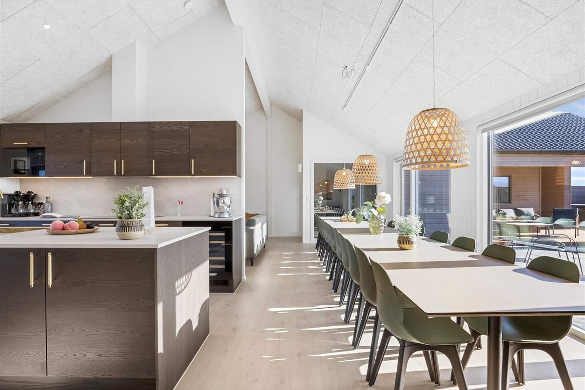 Das Herzstück des Hauses ist der große, gut ausgestattete Wohn- und Küchenbereich, der sich perfekt für gemeinsames Kochen und Essen eignet. Hier finden Sie zwei Backöfen, zwei Geschirrspüler, zwei Kühlschränke und einen Weinkühlschrank – Kochen wird so zum Kinderspiel, unabhängig von der Gruppengröße. Der große Gemeinschaftsraum lädt zu gemütlichen Momenten und geselligem Beisammensein ein.