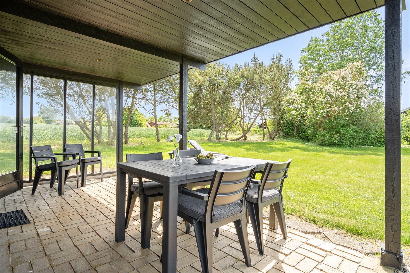 De vakantiewoning is gelegen op een 920 m² groot aangelegde tuin. Afstand tot de zee 400 m. Er is een zwemsteiger in de buurt. Dichtstbijzijnde winkel 7000 m. Er is een golfbaan op een afstand van 7000 m. Daarnaast is er een 14 m² groot overdekt terras. Gereedschapsruimte.