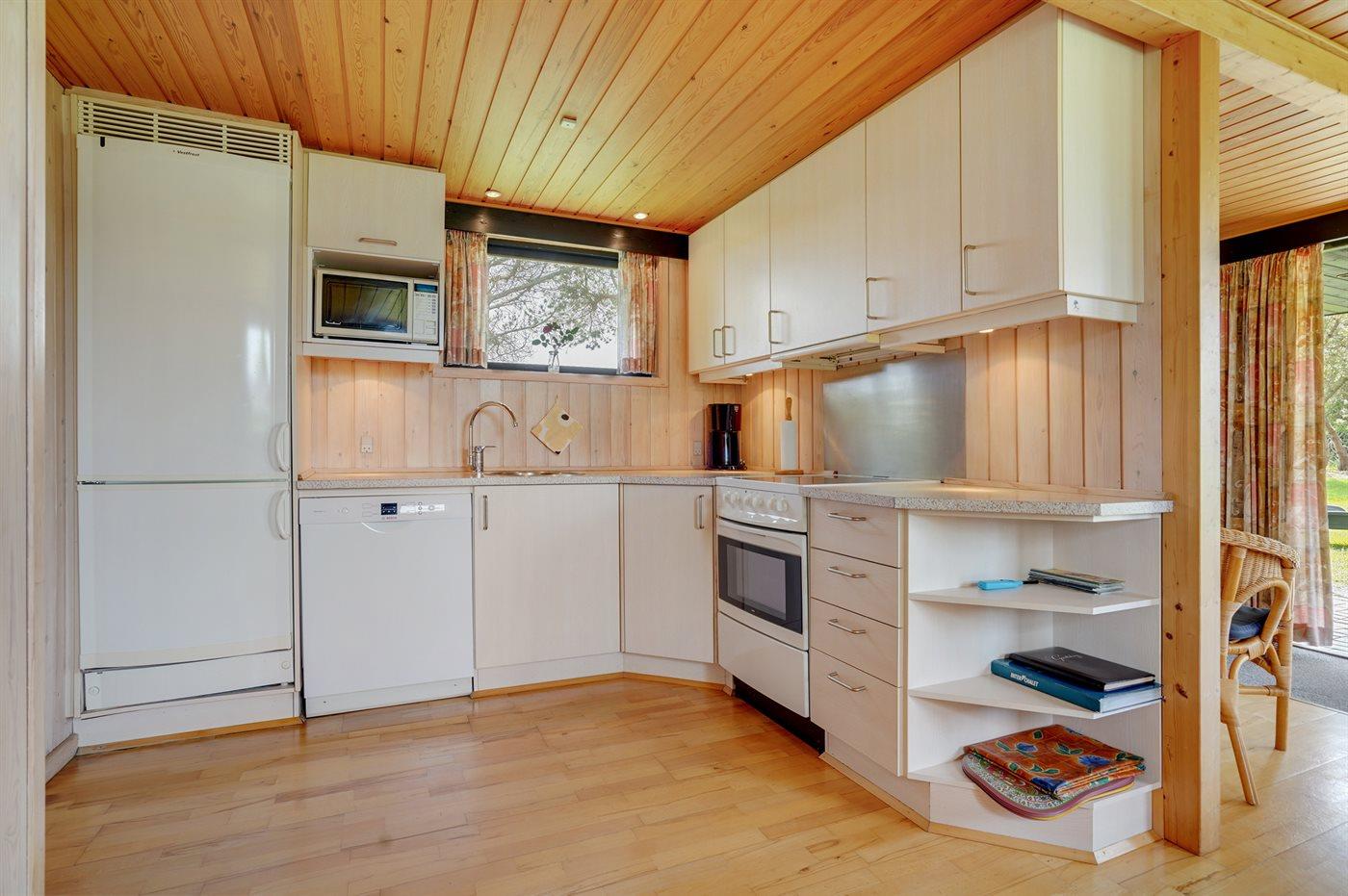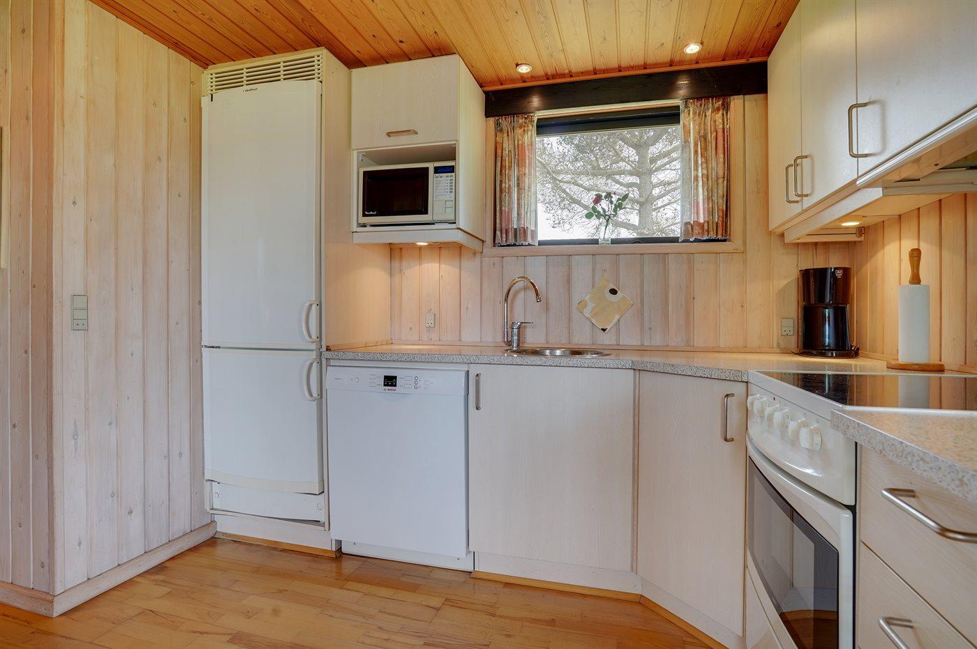 De keuken is uitgerust met koelkast Er zijn 4 keramische kookplaten, heteluchtoven, magnetron en vaatwasser.