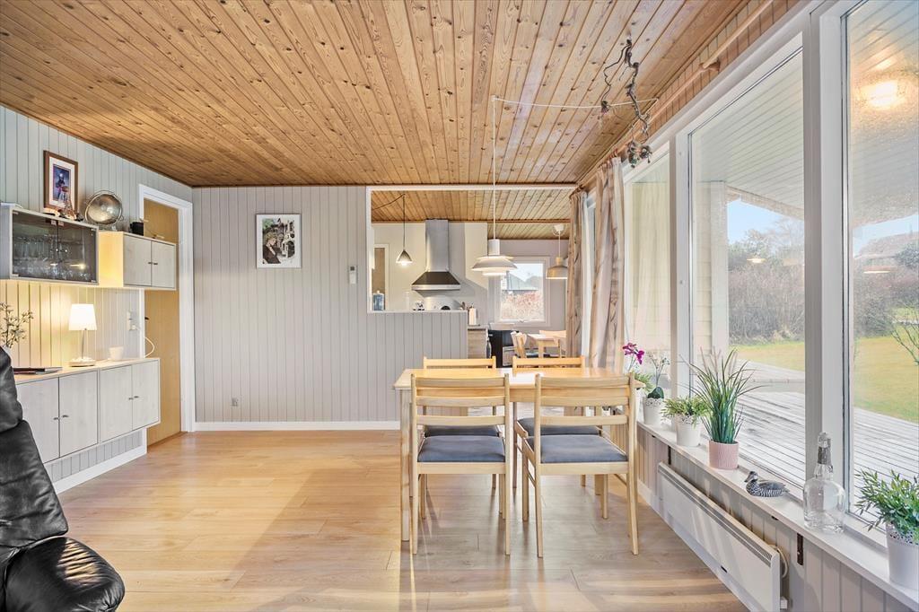 Wenn du das Ferienhaus betrittst, wirst du von einer hellen und freundlichen Atmosphäre empfangen, in der das Wohnzimmer und die Küche harmonisch in einem offenen Raum verbunden sind. Die Küche ist neuer und gut ausgestattet, mit einer gemütlichen Essecke, in der du deinen Morgenkaffee mit Blick auf den üppigen Garten genießen kannst. Im Wohnzimmer steht ein Kaminofen bereit, um an kühlen Abenden Wärme und Gemütlichkeit zu verbreiten, während die Wärmepumpe dafür sorgt, dass die Temperatur immer angenehm ist. Hier findest du leicht zur Ruhe, kannst den Alltag hinter dir lassen und deinen Urlaub in vollen Zügen genießen.