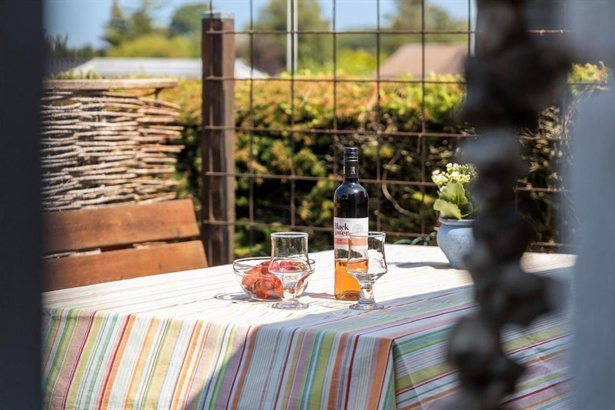 Draußen erwartet Sie ein schöner Garten, der zum Spielen und Entspannen einlädt. Hier können die Kinder frei spielen, während die Erwachsenen sich mit einem guten Buch entspannen oder einen erfrischenden Drink auf der Terrasse genießen. Die teilweise überdachte Terrasse ermöglicht es, das Leben im Freien bei jedem Wetter zu genießen, und es gibt genug Platz für Grill und Gartenmöbel. Nur einen kurzen Spaziergang vom Ferienhaus entfernt liegt der sanfte Badestrand, an dem Sie schwimmen, sich sonnen oder Sandburgen bauen können. Der nahegelegene Strand ist kinderfreundlich mit flachem Wasser, was ihn zu einem idealen Ort für Familien macht. Egal, ob Sie einen aktiven Tag am Strand verbringen oder einfach die frische Meeresluft genießen möchten, dieses Ferienhaus bietet die perfekten Voraussetzungen für einen entspannten Urlaub.
