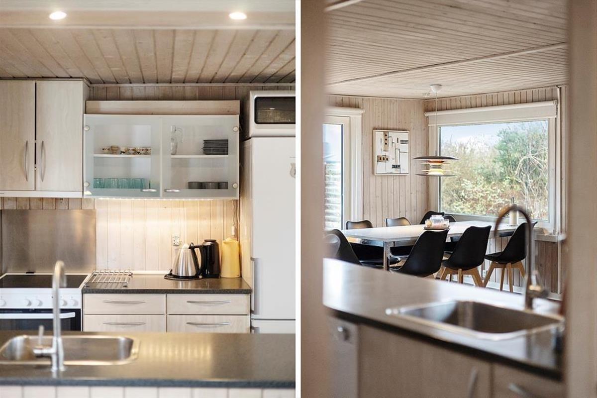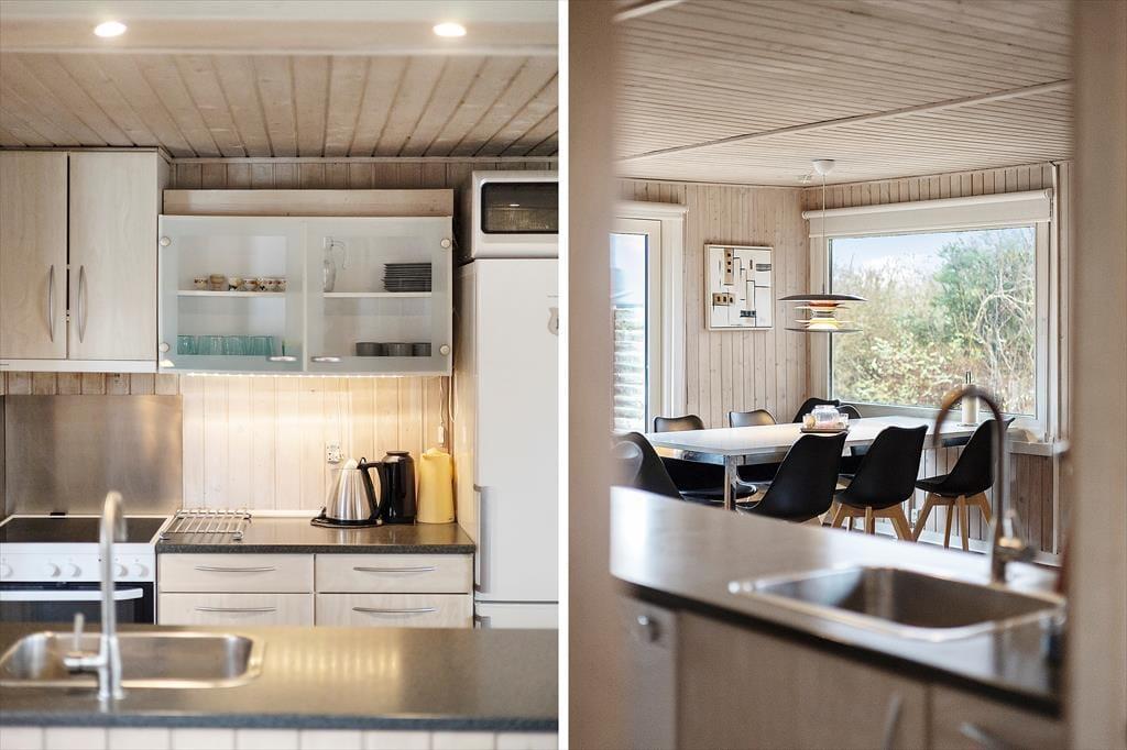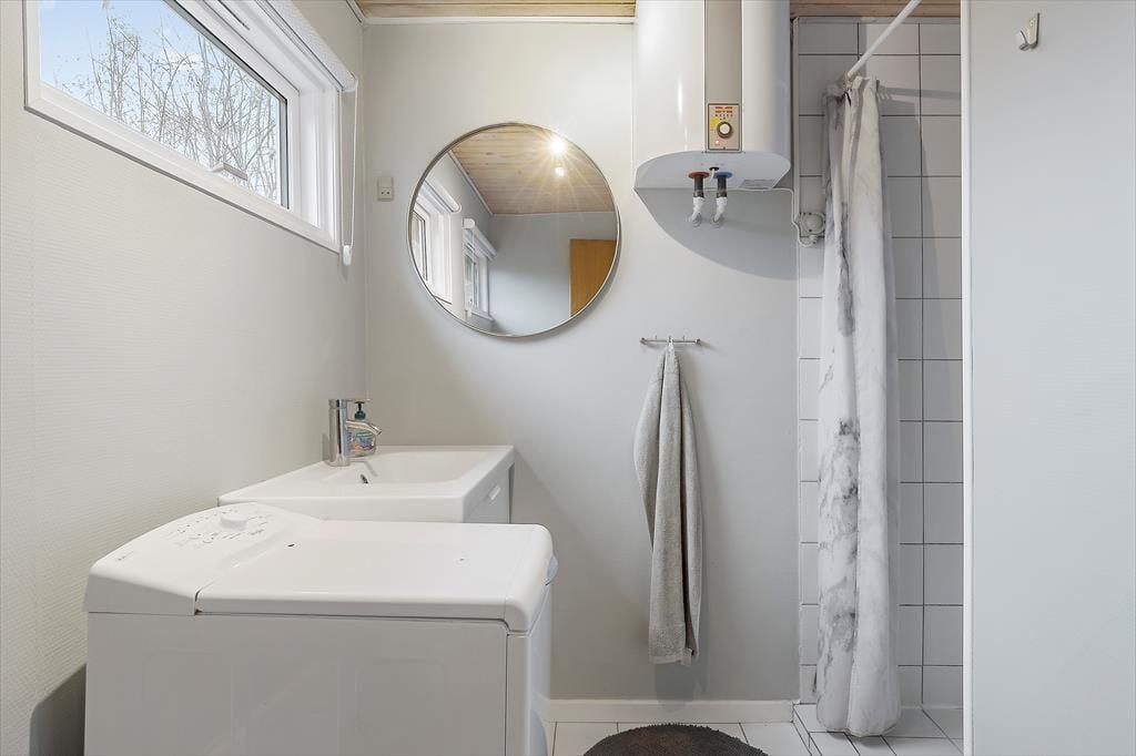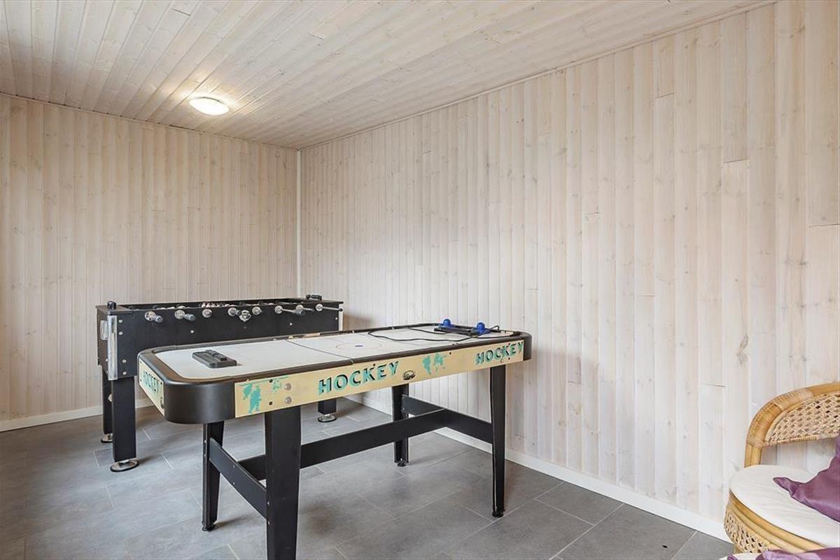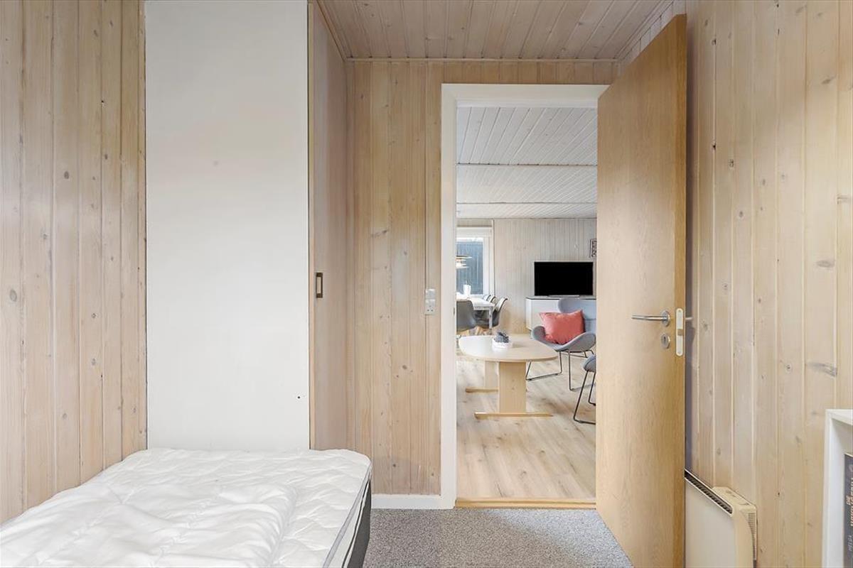Wenn du das Ferienhaus betrittst, wirst du von einem hellen und einladenden Wohnzimmer empfangen, das den perfekten Rahmen für gemütliche Stunden mit Familie und Freunden bietet. Die offene Verbindung zur Küche erleichtert es, zusammen zu kommen, während du gemeinsam Mahlzeiten zubereitest. Der Kaminofen in der Ecke sorgt für eine warme und gemütliche Atmosphäre – ideal für kühle Abende. Vom Wohnzimmer aus hast du direkten Zugang zu einer schönen Terrasse, auf der du deinen Morgenkaffee unter freiem Himmel genießen kannst. Das Ferienhaus verfügt auch über vier schöne Schlafzimmer, die jedes für sich ausreichend Platz und Komfort für eine erholsame Nachtruhe bieten. Das Badezimmer ist funktional mit Dusche, und es gibt auch ein separates Annex, das eine Sauna und ein Spielzimmer umfasst – perfekt für Entspannung und Spaß. Das Haus ist ideal für kleine und große Gruppen und die Einrichtung strahlt eine heimelige Atmosphäre aus.