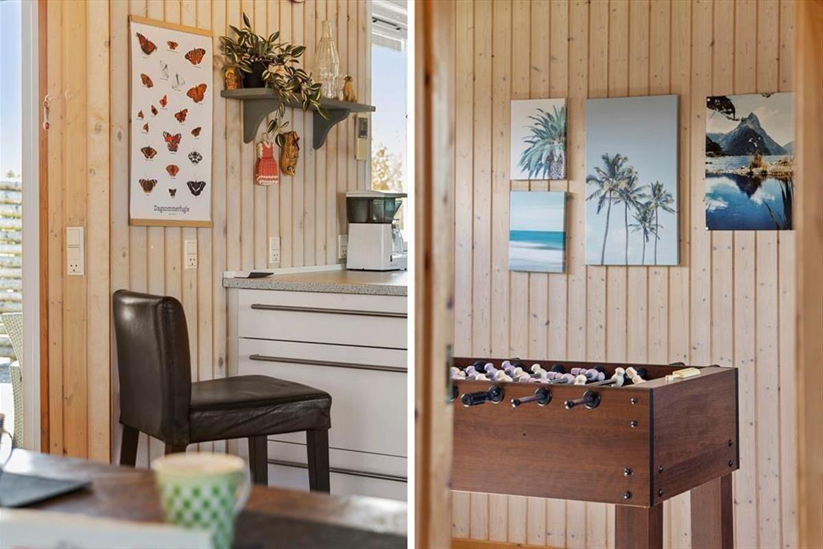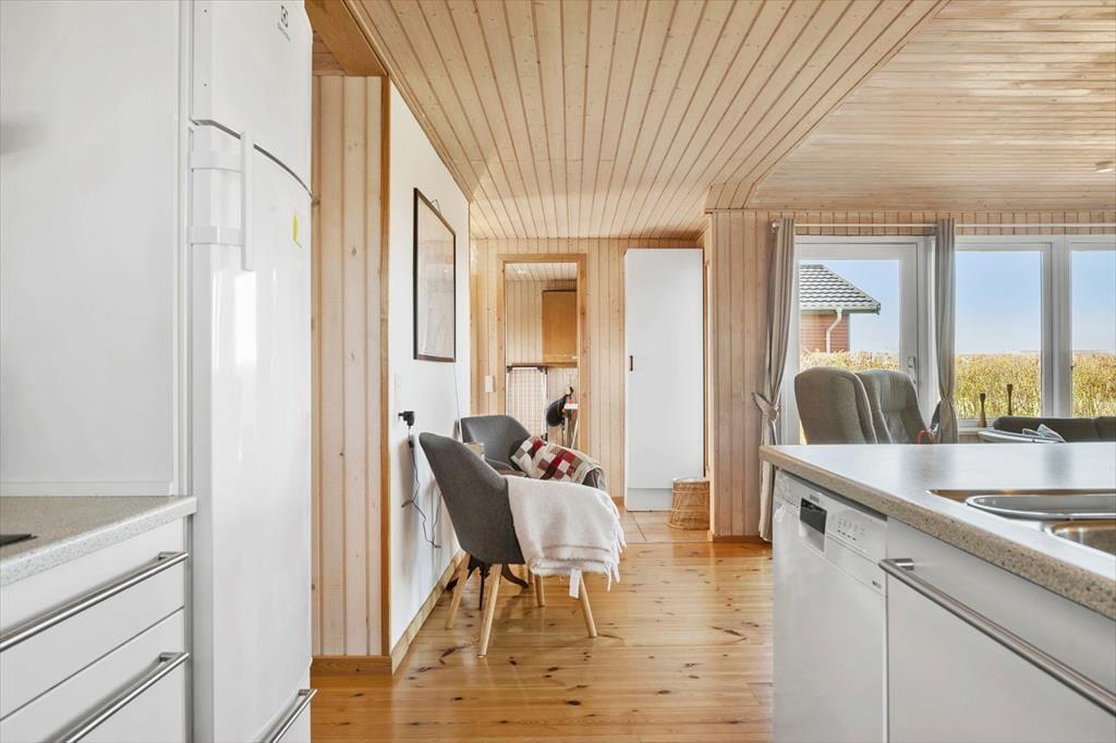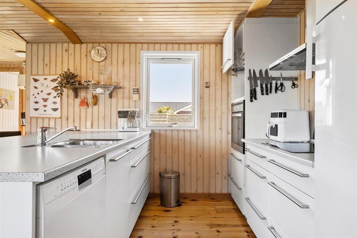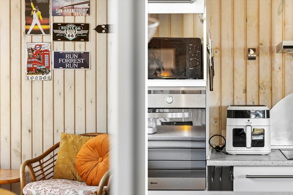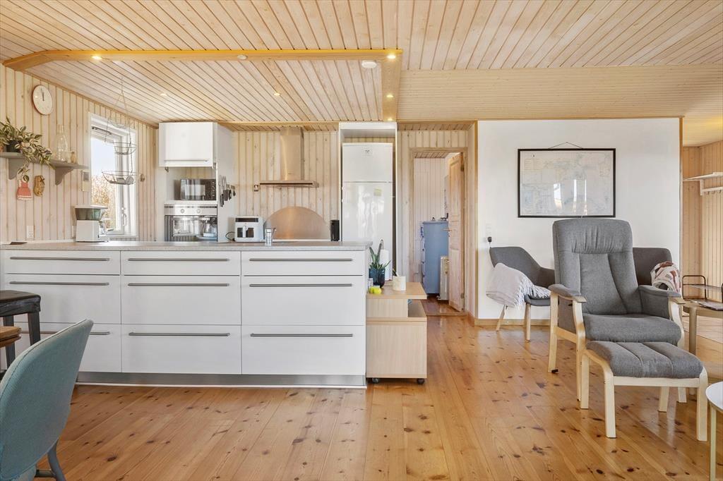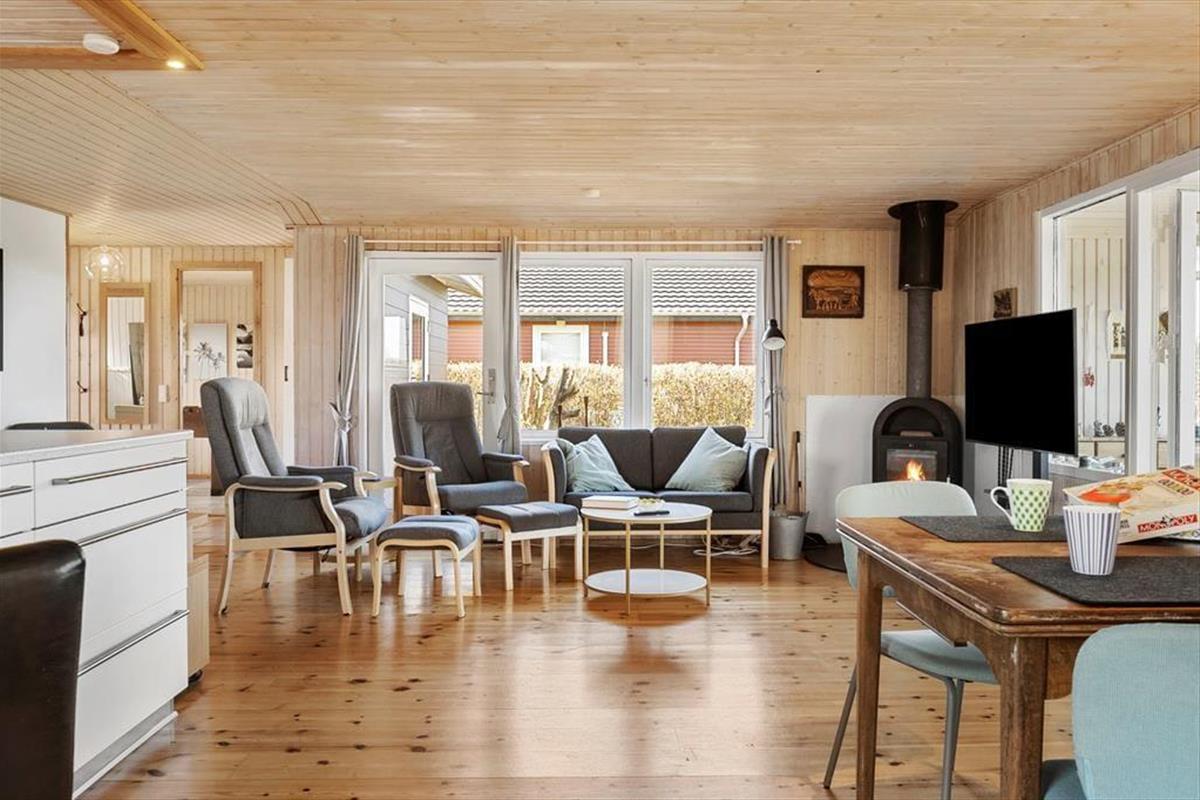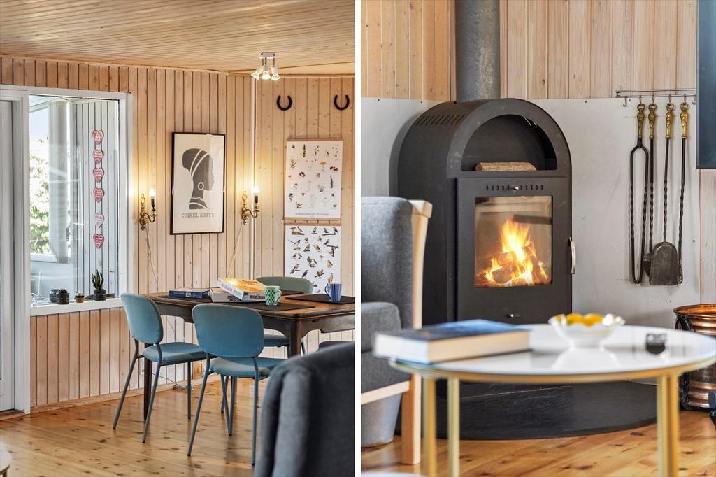 Sobald Sie das Ferienhaus betreten, werden Sie von einer hellen und einladenden Atmosphäre empfangen. Das gemütliche Wohnzimmer des Hauses und der offene Küchen-/Wohnbereich bilden den idealen Treffpunkt für die Familie, um sich zu entspannen und gemeinsam Zeit zu verbringen. Der Kamin im Wohnzimmer schafft eine besonders warme und heimelige Atmosphäre, besonders an kühleren Tagen. Vom Wohnzimmer und der Küche aus haben Sie direkten Zugang zu einer schönen Terrasse und einem Wintergarten, die zur Entspannung mit Blick auf die umliegende Natur einladen. Das Ferienhaus verfügt über drei gemütliche Schlafzimmer, die sicherstellen, dass jeder eine ruhige Nachtruhe findet, und das Badezimmer mit Dusche ist sowohl funktional als auch modern.
