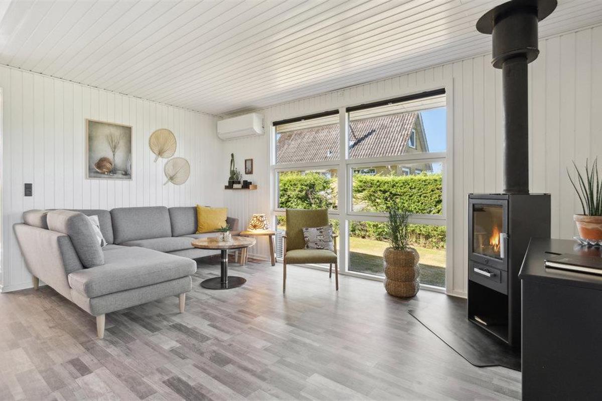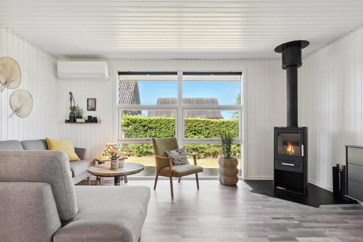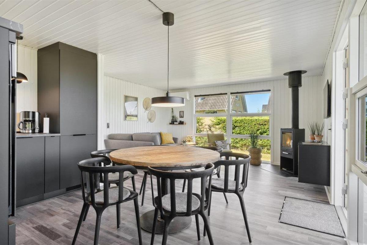 Dit goed onderhouden en smaakvol ingerichte vakantiehuis heeft een licht, modern interieur. De open woon- en eetruimte wordt overspoeld met licht en nodigt je uit om ontspannende uren door te brengen met zijn gezellige zithoek en houtkachel, ideaal voor rustige avonden na een dag aan zee. De stijlvolle, open keuken is harmonieus geïntegreerd en biedt alles wat je nodig hebt om samen je maaltijden te bereiden. Grote raamfronten en directe toegang tot het terras verbinden het interieur op aangename wijze met het exterieur.