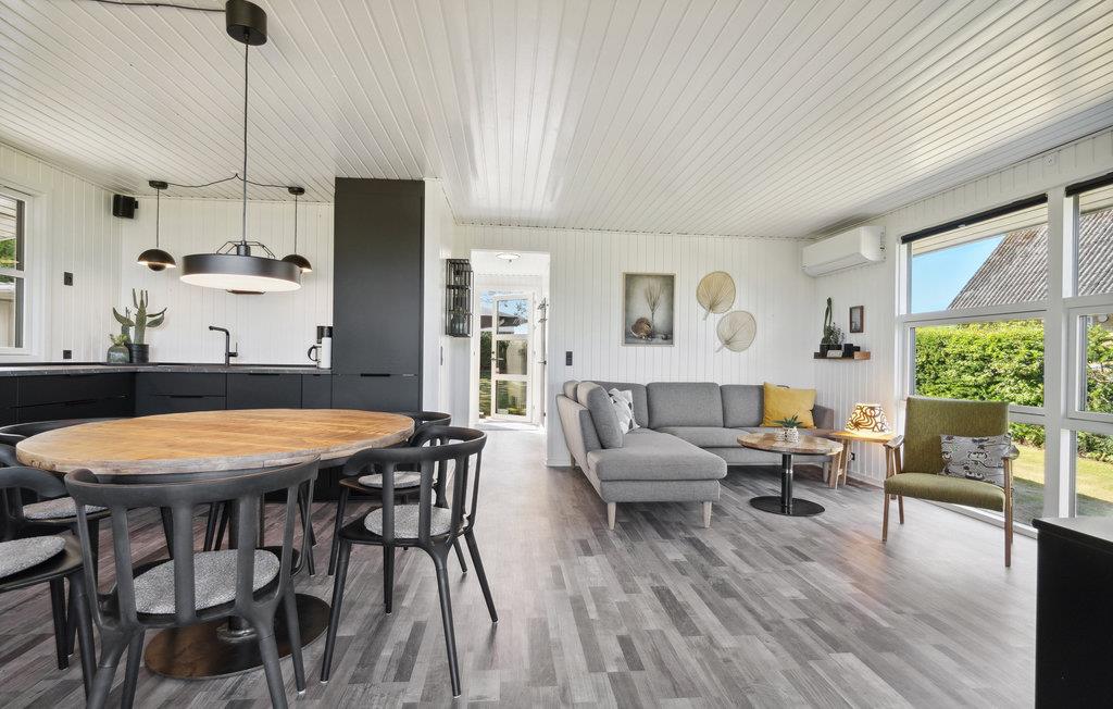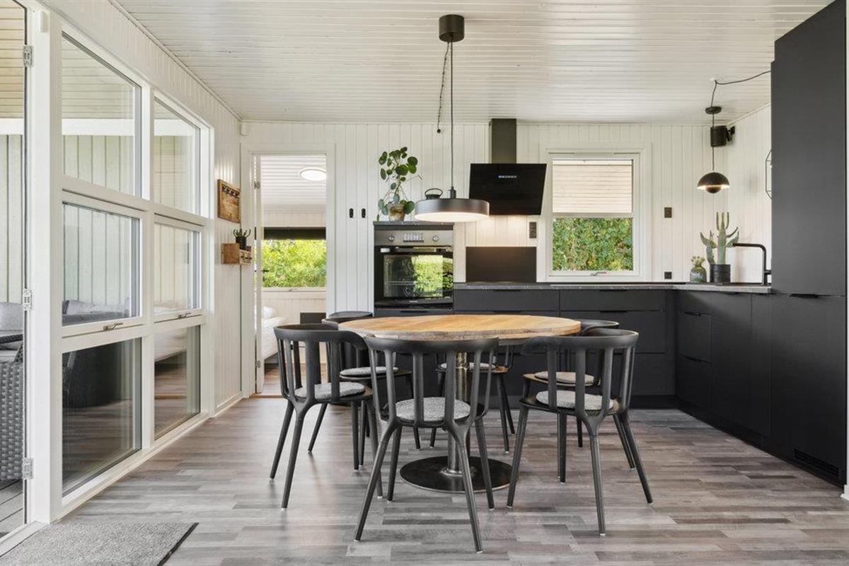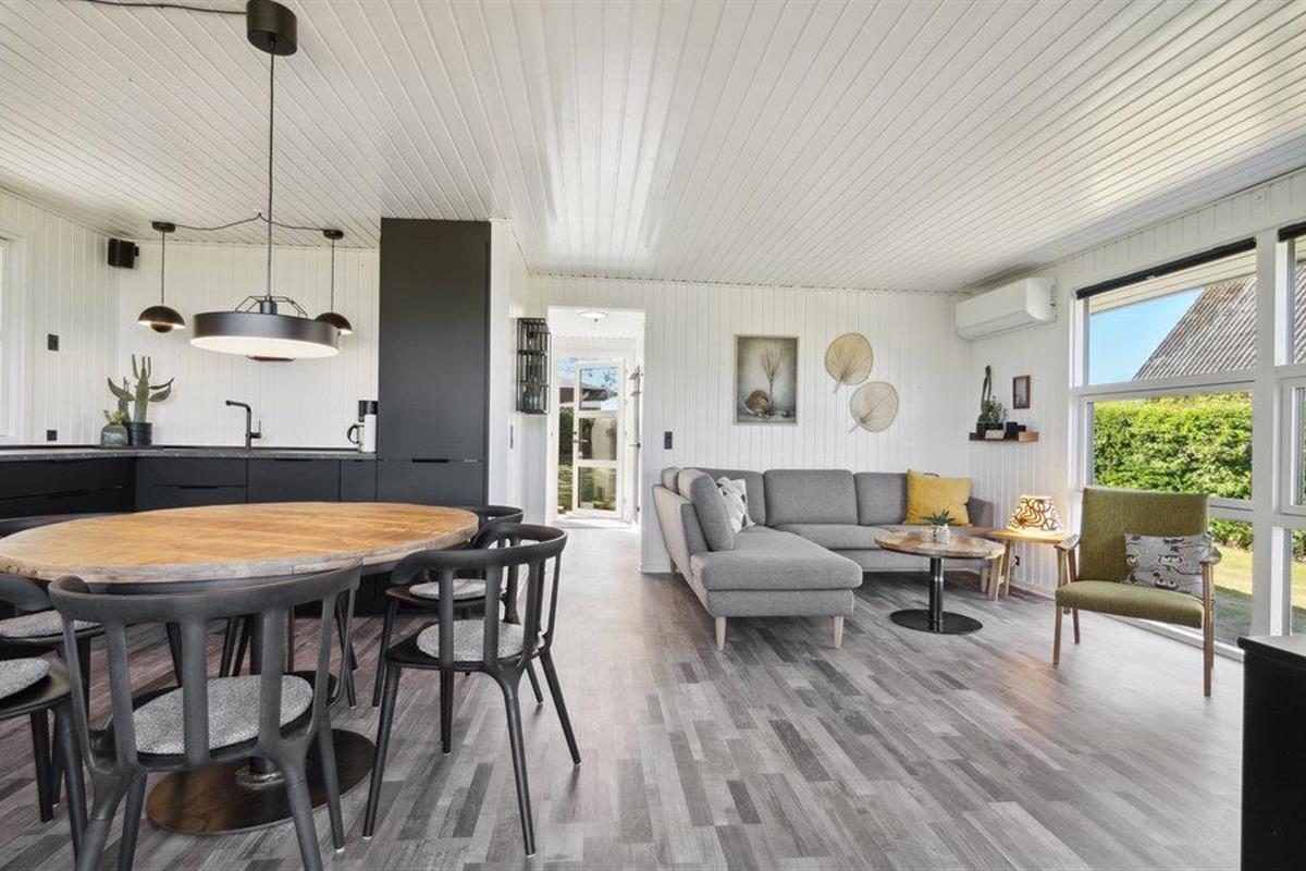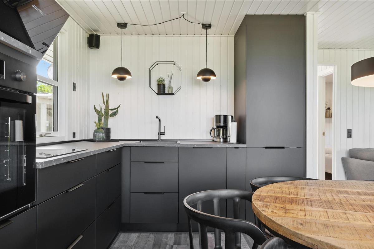 Dit goed onderhouden en smaakvol ingerichte vakantiehuis heeft een licht, modern interieur. De open woon- en eetruimte wordt overspoeld met licht en nodigt je uit om ontspannende uren door te brengen met zijn gezellige zithoek en houtkachel, ideaal voor rustige avonden na een dag aan zee. De stijlvolle, open keuken is harmonieus geïntegreerd en biedt alles wat je nodig hebt om samen je maaltijden te bereiden. Grote raamfronten en directe toegang tot het terras verbinden het interieur op aangename wijze met het exterieur.