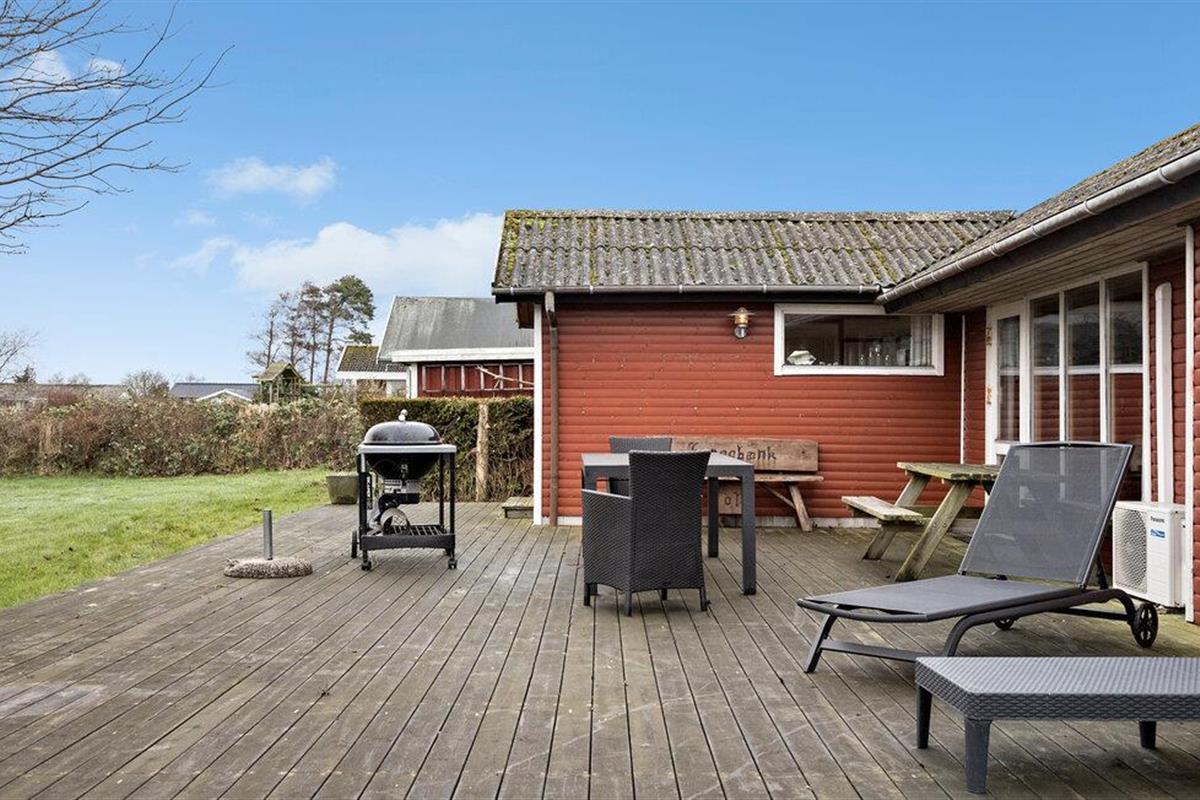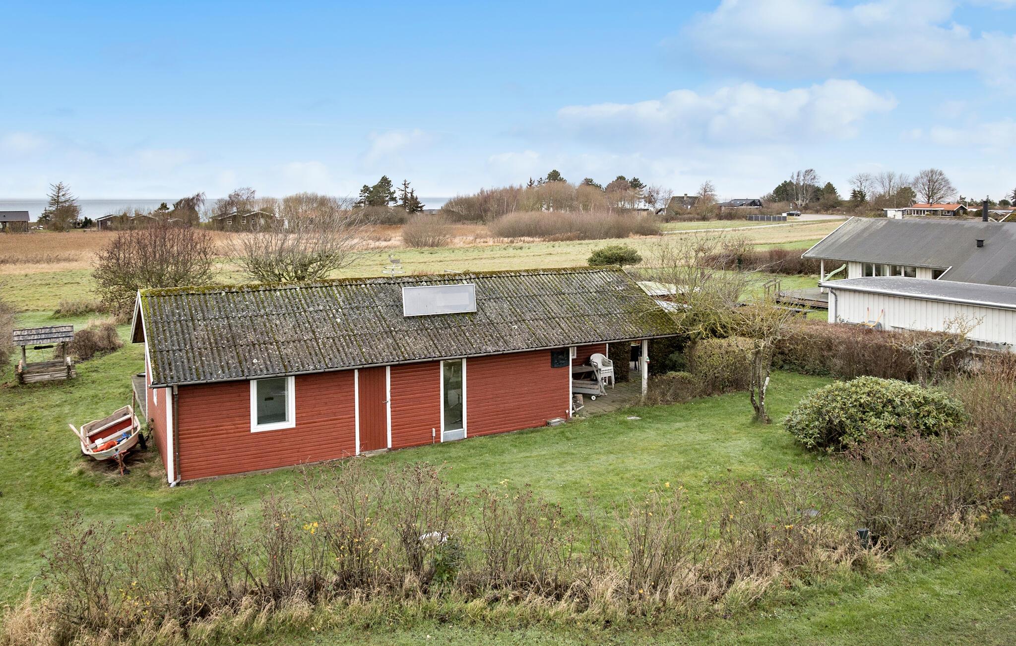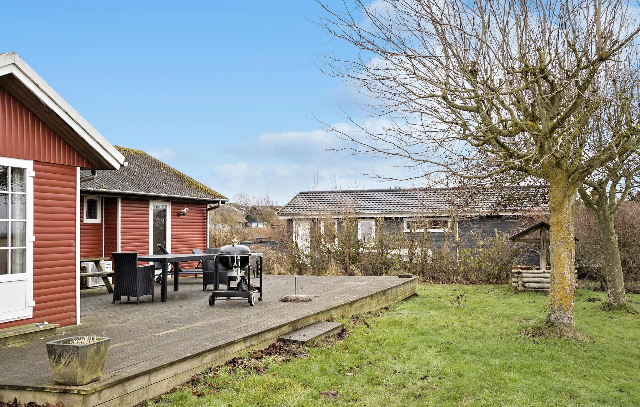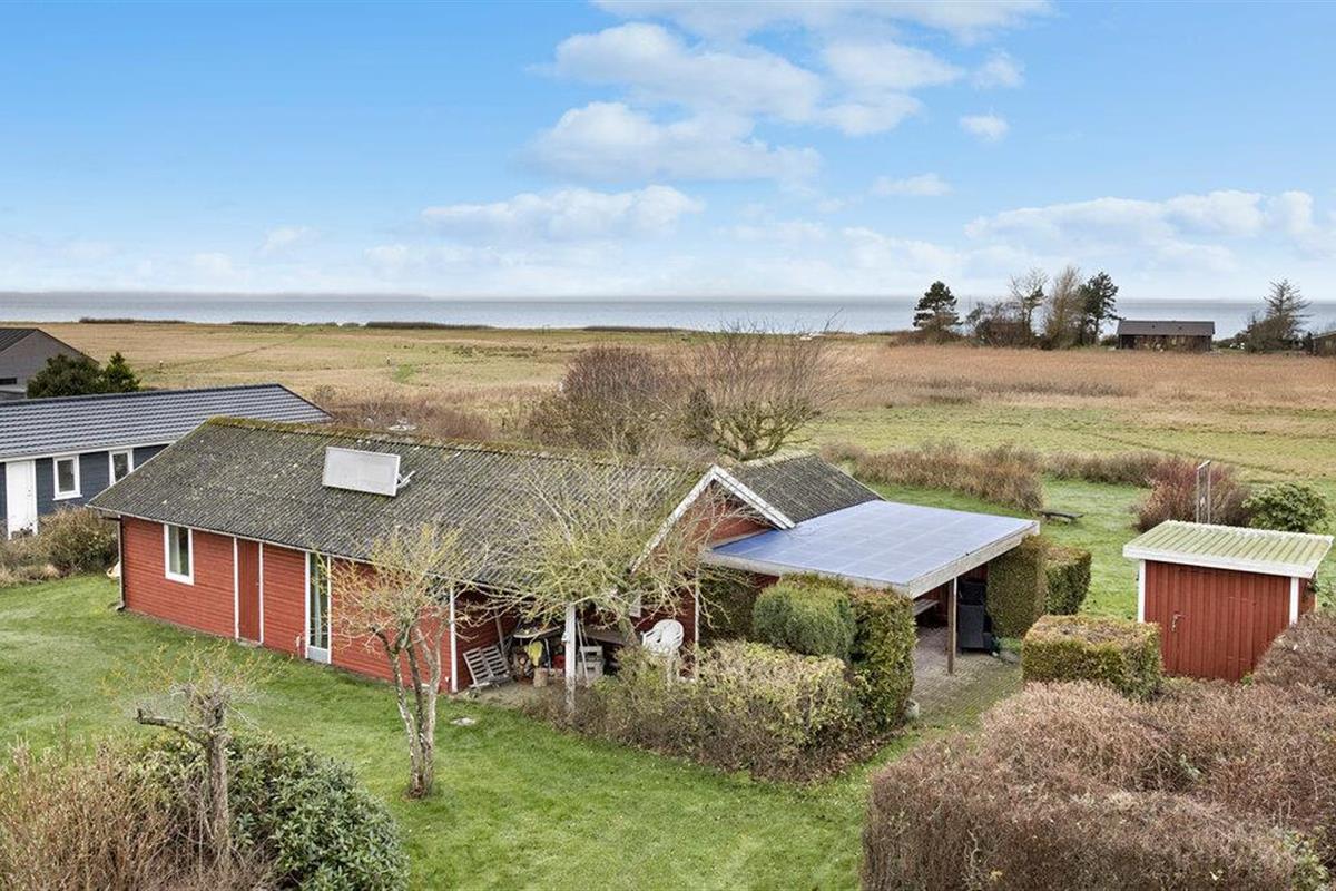 Ontspan in dit gezellige houten vakantiehuis met zeezicht vlak bij Skåstrup Strand op Funen.
