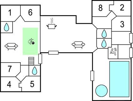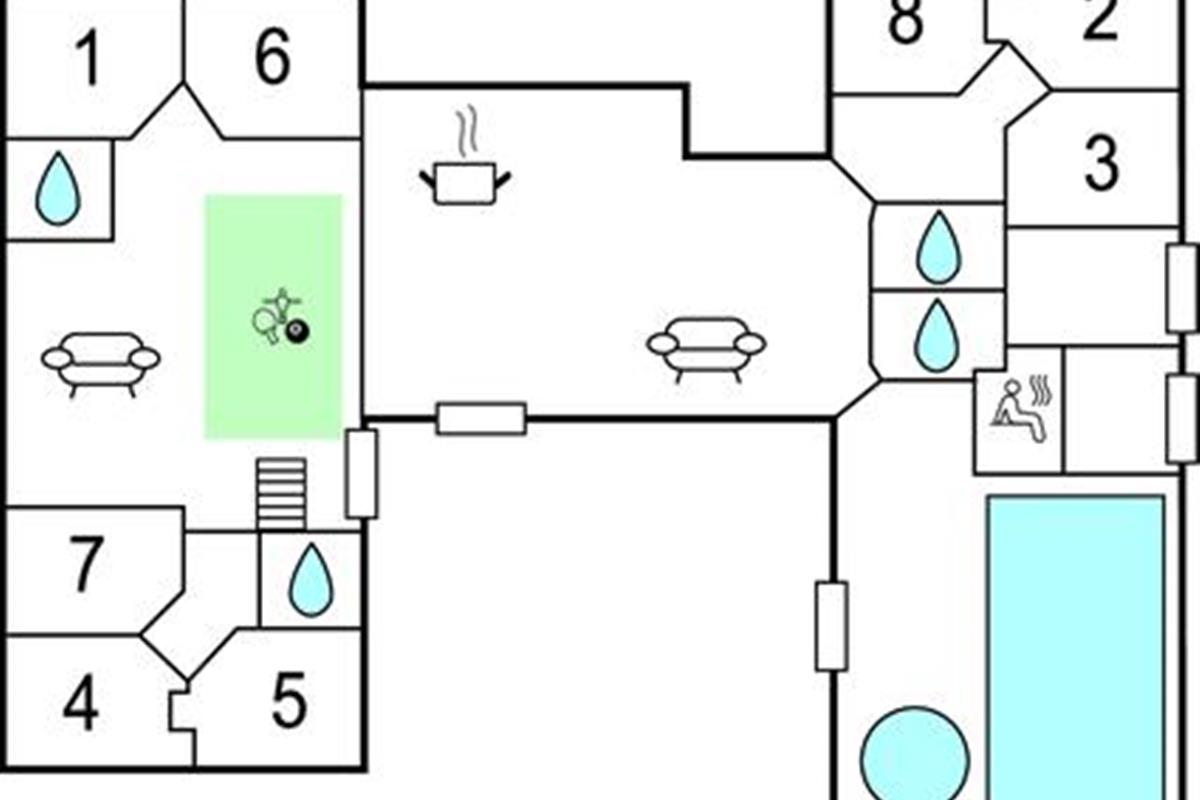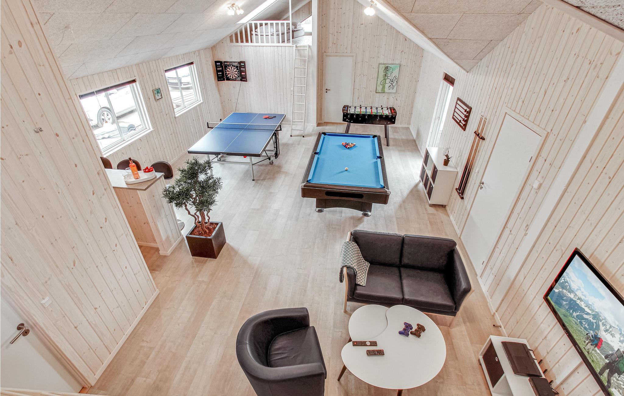 Fantastisch vakantiehuis op een goede locatie bij het badstrand van Nordfünen. 8 goede slaapkamers en 2 zomen bieden slaapgelegenheid. Plus tafelvoetbal, biljart, tafeltennis en darts in de activiteitenruimte, die net naast de grote woonkamer ligt. De keuken is open. De zwembadkamer heeft ook een bubbelbad voor 4 personen en toegang tot de sauna. Het huis is volledig uitgerust met apparatuur. Je hebt alles om je thuis te voelen. Er is ook comfortabel tuinmeubilair op het grote terras. Het voorschot voor de verbruikskosten en de eindschoonmaak betaalt u contant in het huis. Beddengoed, handdoeken, kinderstoel en kinderbedje zijn te huur bij het plaatselijke servicekantoor.