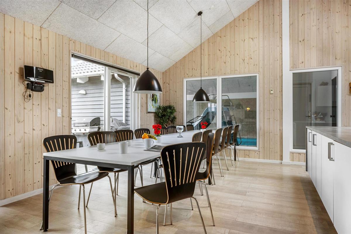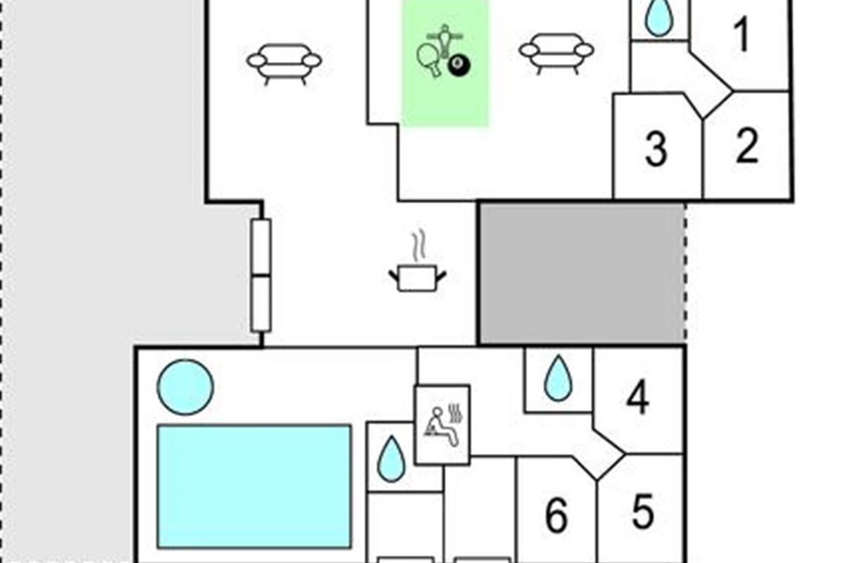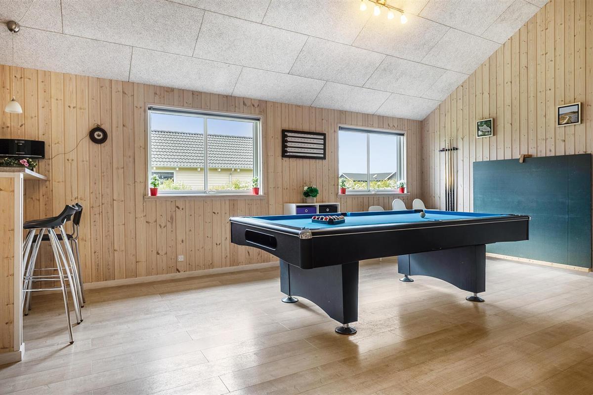 In dit vakantiehuis beleeft u een bijzondere vakantie. Het is ingericht met comfortabele, moderne meubels, hier ontspant u zich en voelt u zich thuis. In de uitnodigende activiteitenruimte kunt u biljarten, tafeltennissen, darten en tafelvoetballen. Neem een verfrissing aan de bar, er is ook een koelkast. Bij het zwembad heb je ook een whirlpool voor 6 personen en vanuit deze ruimte kun je ook de sauna in. Zo kun je optimaal genieten van wellness. Op het heerlijke terras vindt u gezellig tuinmeubilair, hier kunt u echt ontspannen op mooie, lange en zwoele zomerdagen. In Bogense ervaart u een maritieme flair aan de haven en de jachthaven.Het voorschot voor de verbruikskosten en de eindschoonmaak betaalt u contant in het huis. Beddengoed, handdoeken, kinderstoel en kinderbed kunnen worden gehuurd bij het plaatselijke servicekantoor.