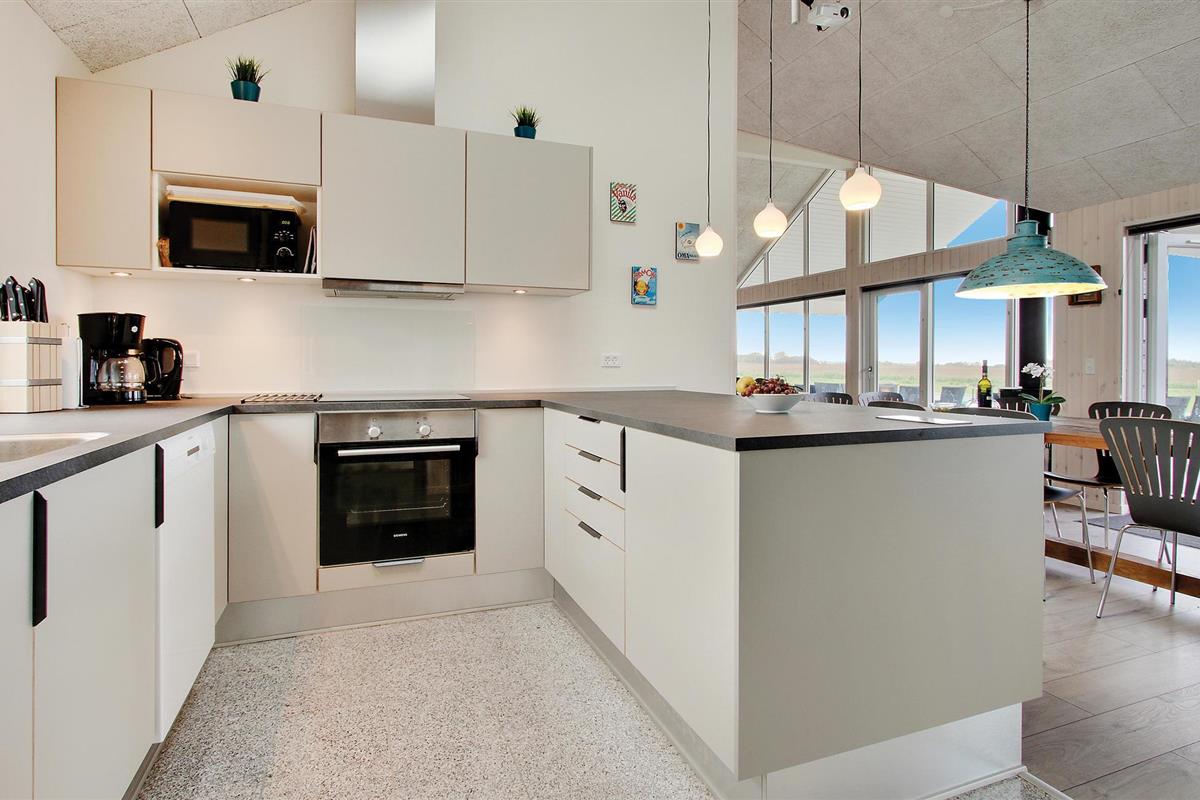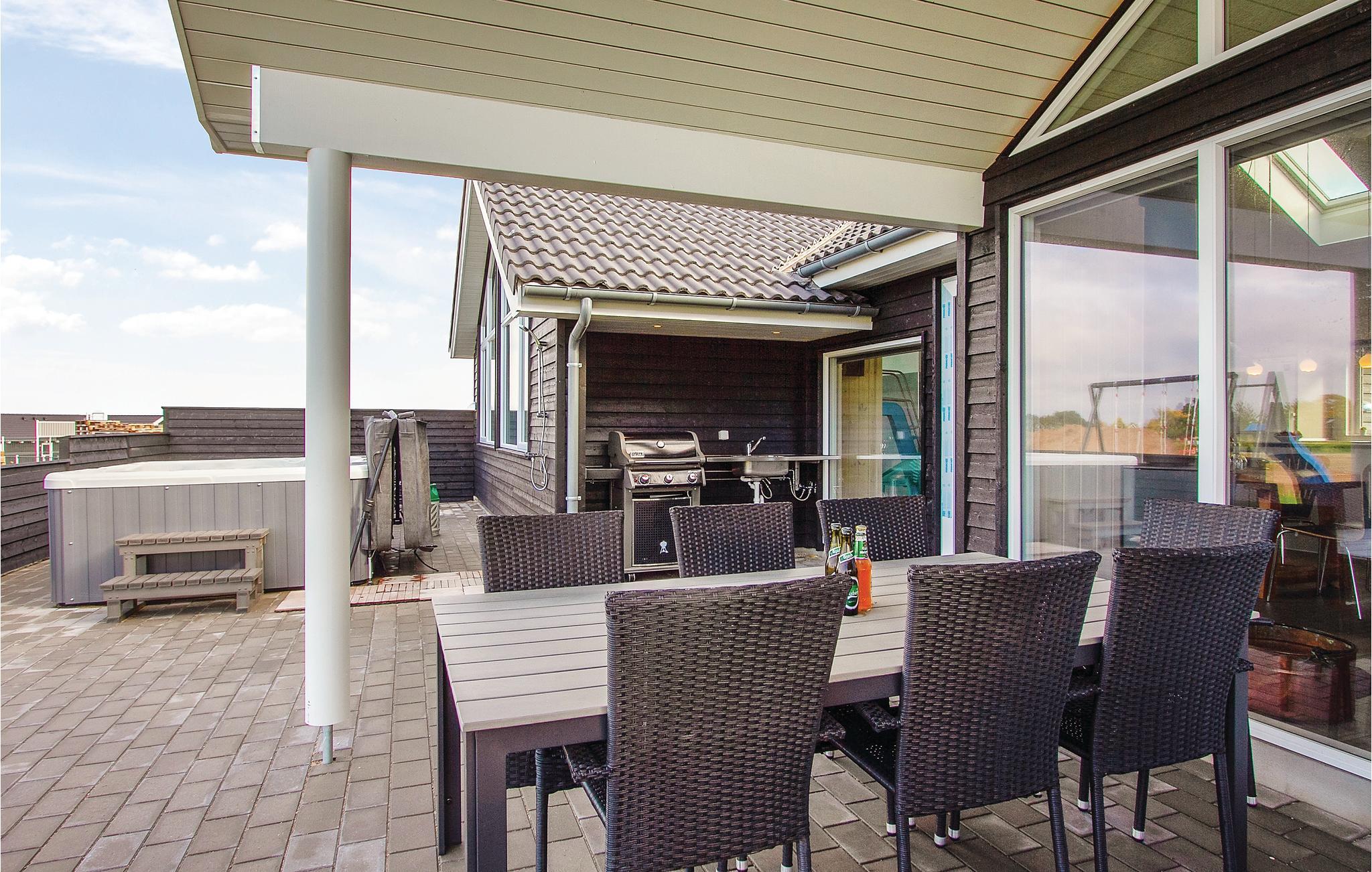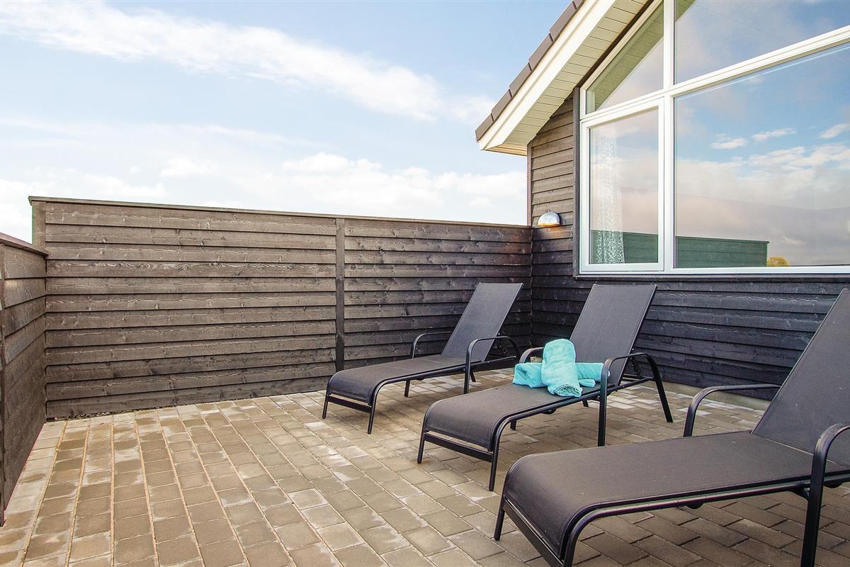 De Deense zomer kan worden genoten op het grote en deels overdekte terras van het huis met goed tuinmeubilair, en met gasbarbecue en buitenkeuken met gootsteen / vispoetsstation kan het vakantiemenu ook buiten worden bereid. In de tuin kunt u op de trampoline springen, voetballen of zonnebaden, en voor de jongste gasten is er een schommel en zandbak. Er zijn voldoende parkeerplaatsen bij het huis, evenals een buitenstekker voor het opladen van elektrische auto's.
