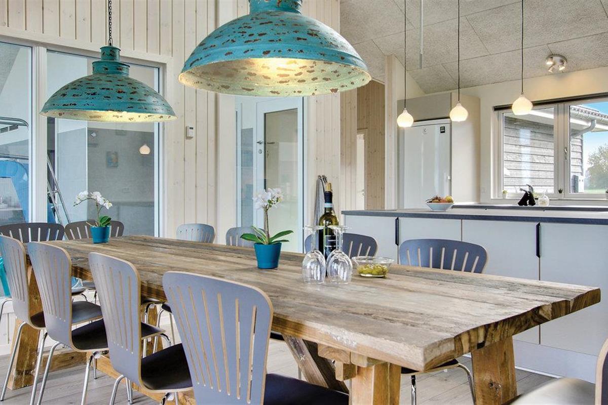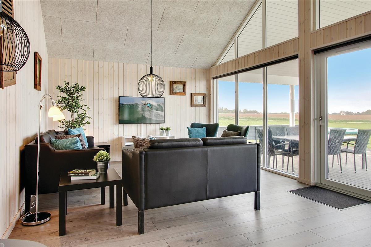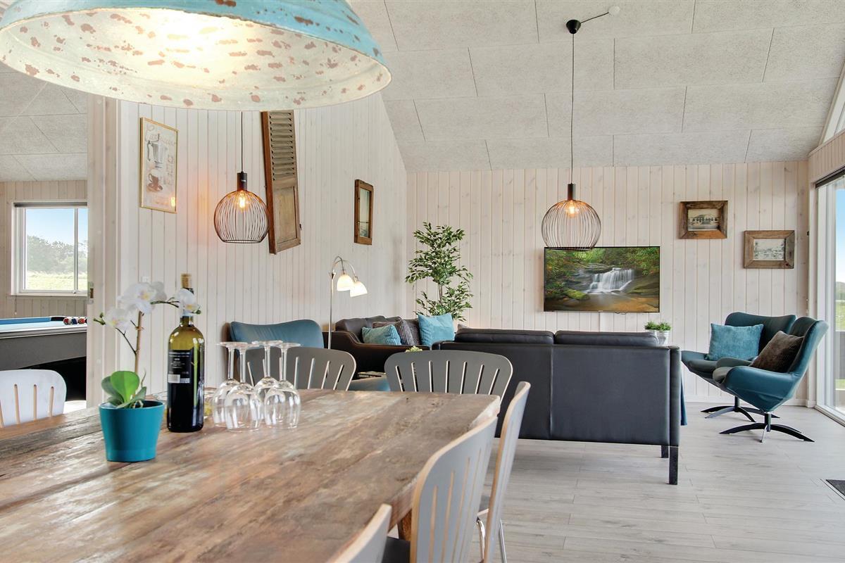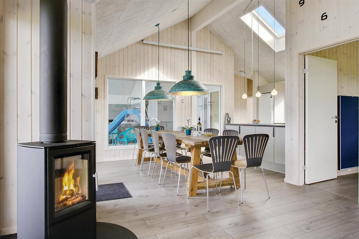 De Deense zomer kan worden genoten op het grote en deels overdekte terras van het huis met goed tuinmeubilair, en met gasbarbecue en buitenkeuken met gootsteen / vispoetsstation kan het vakantiemenu ook buiten worden bereid. In de tuin kunt u op de trampoline springen, voetballen of zonnebaden, en voor de jongste gasten is er een schommel en zandbak. Er zijn voldoende parkeerplaatsen bij het huis, evenals een buitenstekker voor het opladen van elektrische auto's.