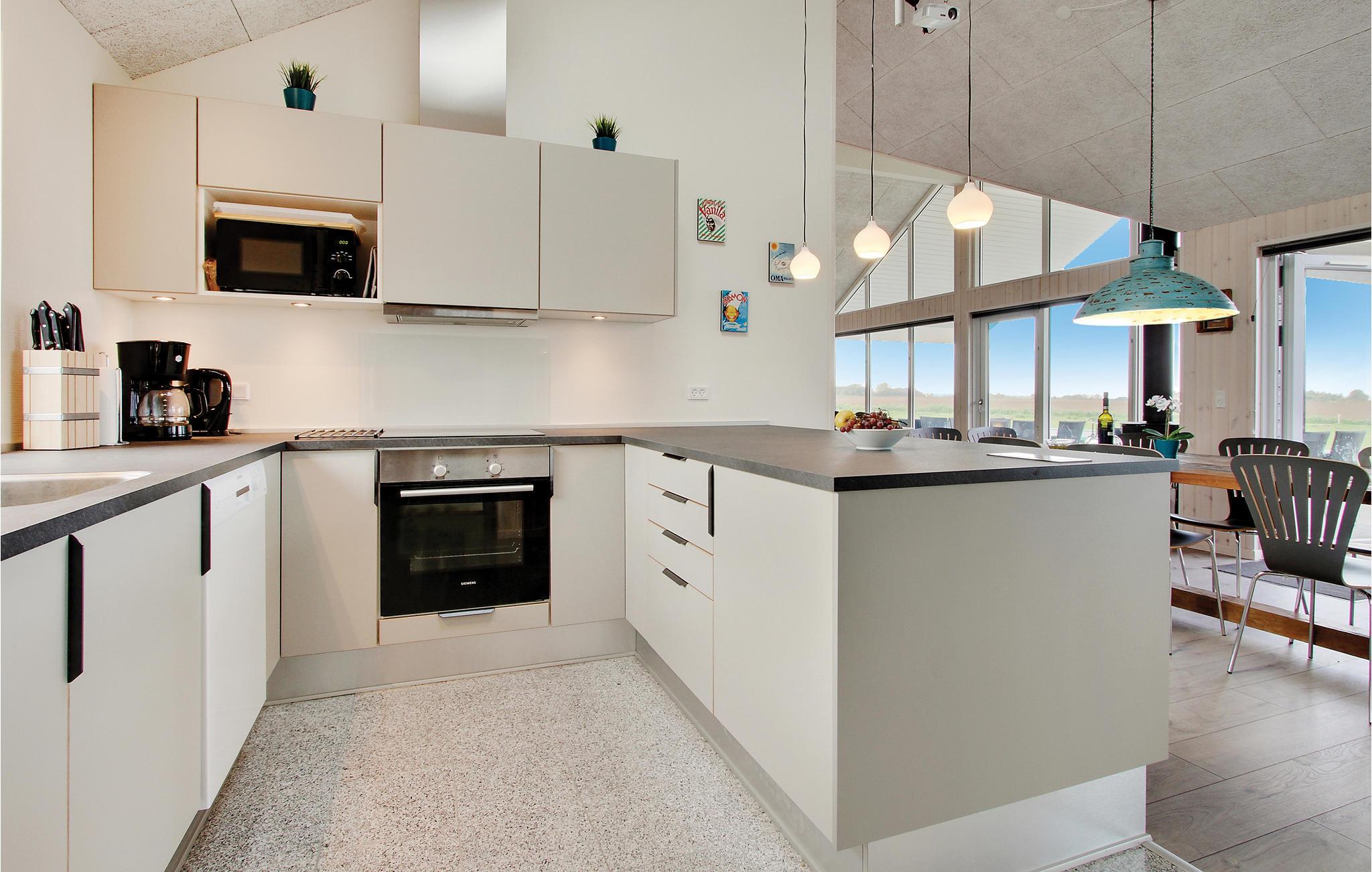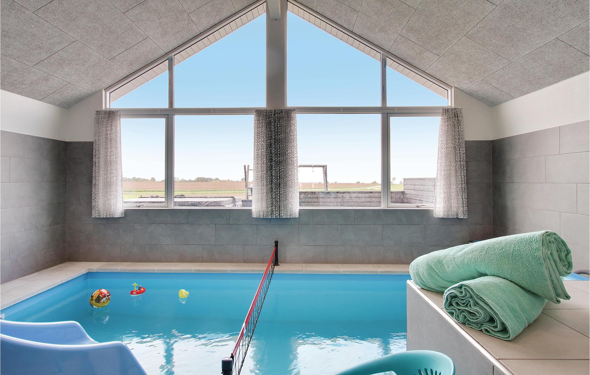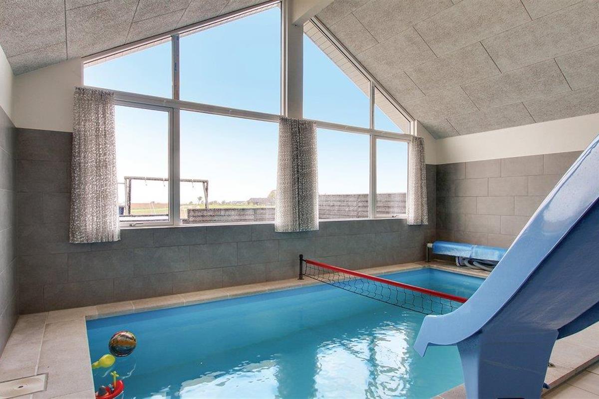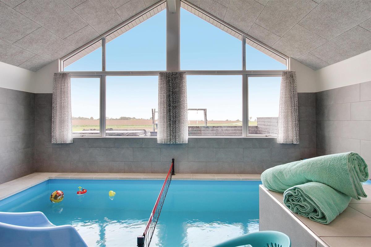 Met een overdekt zwembad met tegenstroom, waterglijbaan en Romeinse trap, sauna en whirlpool en een geïntegreerd volleybalnet biedt het huis volop mogelijkheden voor zwemplezier en wellness - ongeacht het weer en het seizoen. Bovendien vindt u op het terras een 5-persoons buitenwhirlpool met een prachtig uitzicht - gewoon gemaakt voor een glas champagne bij zonsondergang over de Kleine Belt. In verband met de buitenwhirlpool is er een buitendouche (seizoensgebonden).