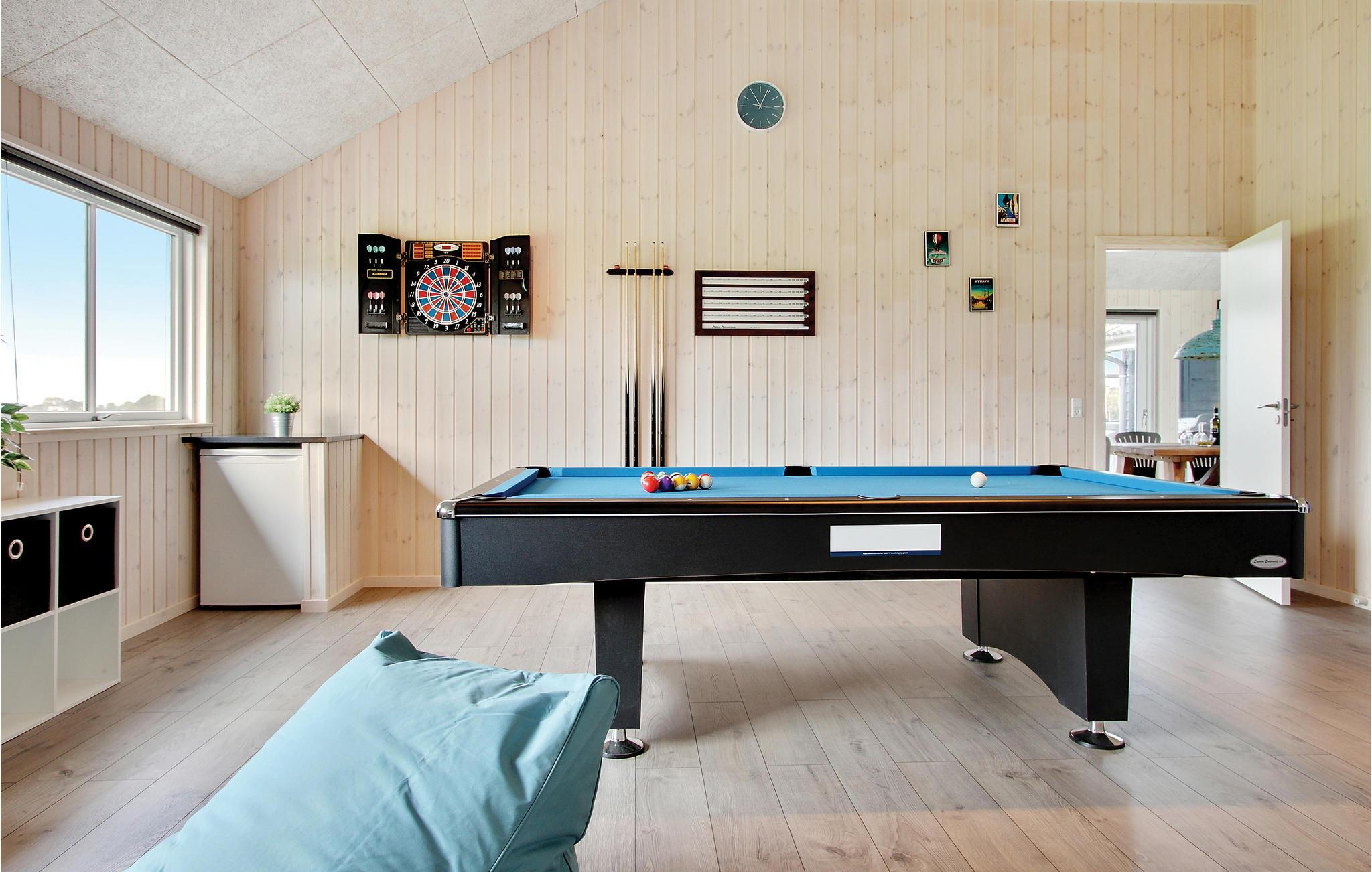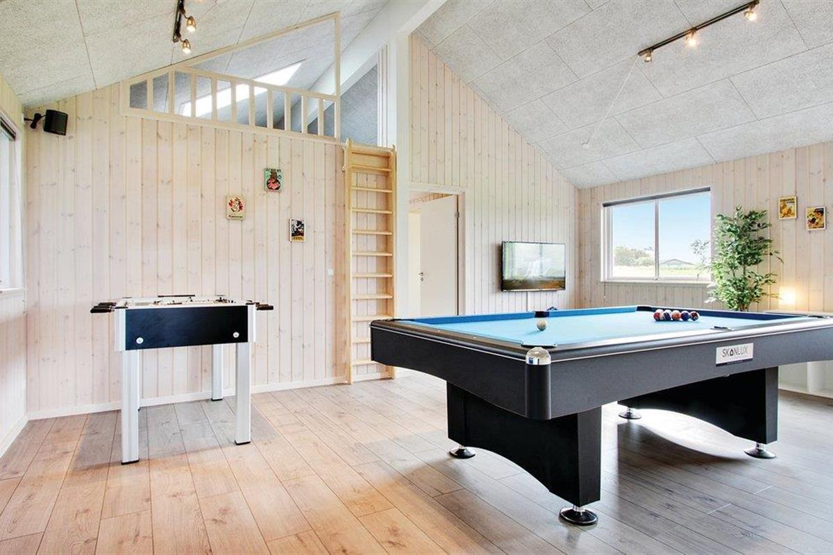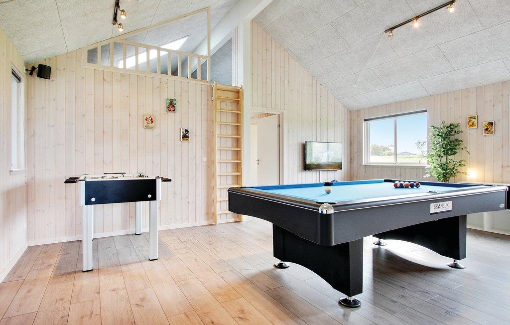 De activiteitenruimte van het huis met biljart/tafeltennis, darts en voetbalspelen nodigt uit tot vele gezellige uurtjes samen voor jong en oud. Als u behoefte heeft aan koude dranken en meer ontspannende activiteiten, staan een koelkast, tv-hoek en Playstation4 klaar. Verder is het huis uitgerust met Sonos geluidssysteem, zodat u de mogelijkheid heeft om alleen de muziek af te spelen die u leuk vindt.