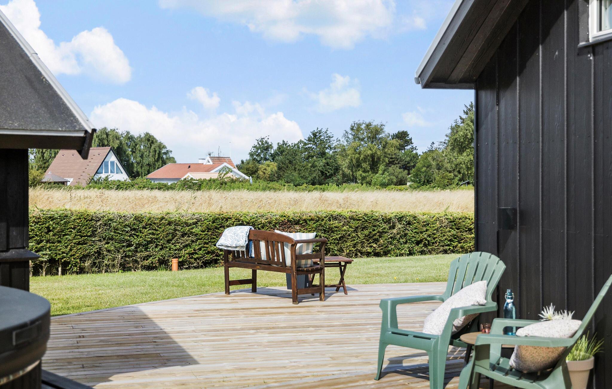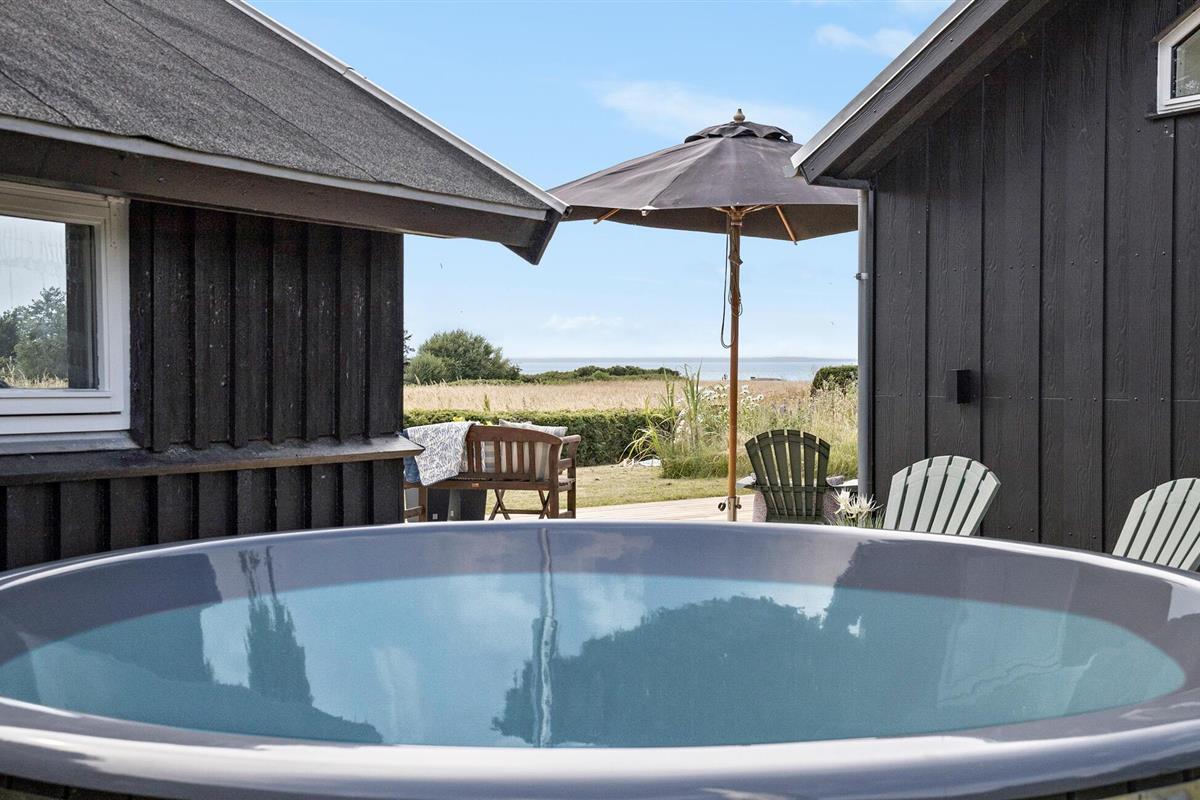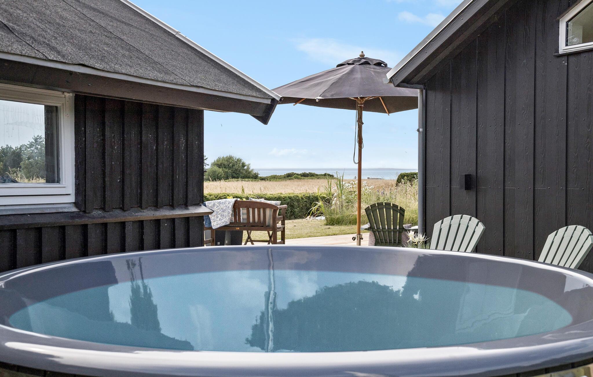 Ontspan in dit moderne vakantiehuis met Fins houten bad en prachtig uitzicht op zee in Bogense, Denemarken.