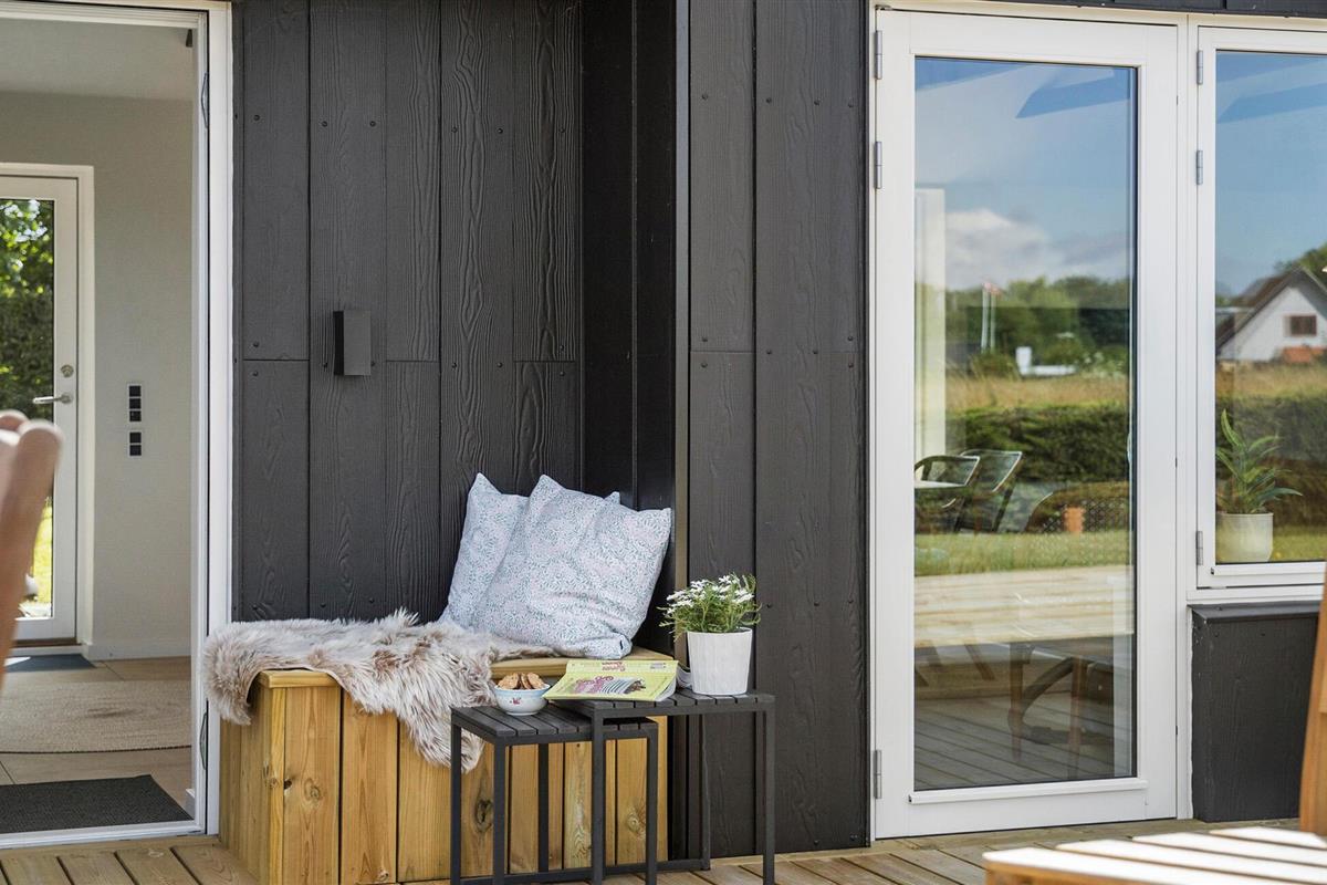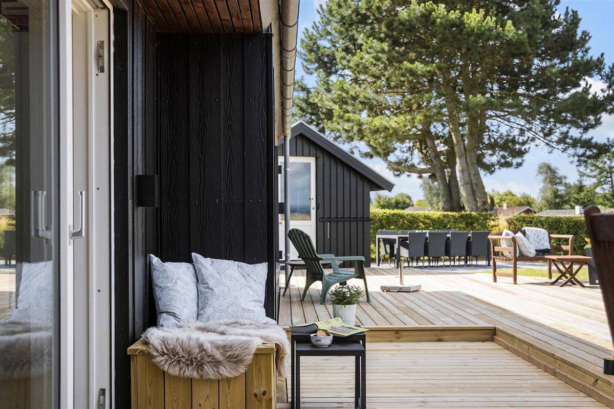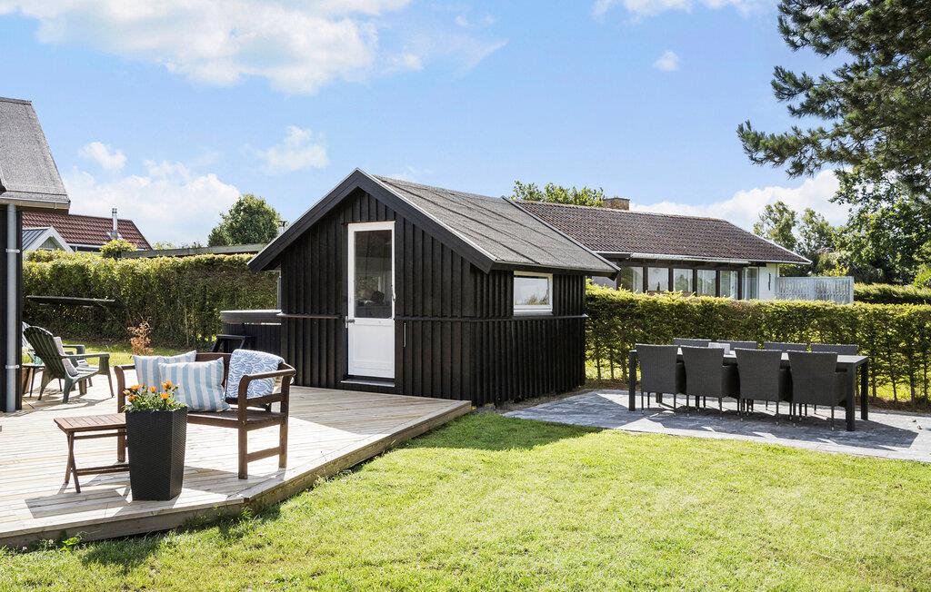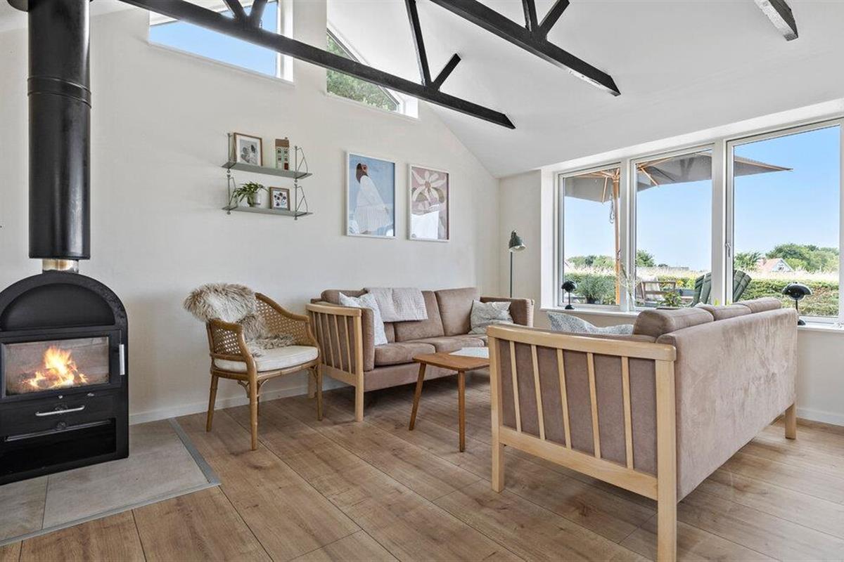 Ontspan in dit moderne vakantiehuis met Fins houten bad en prachtig uitzicht op zee in Bogense, Denemarken.