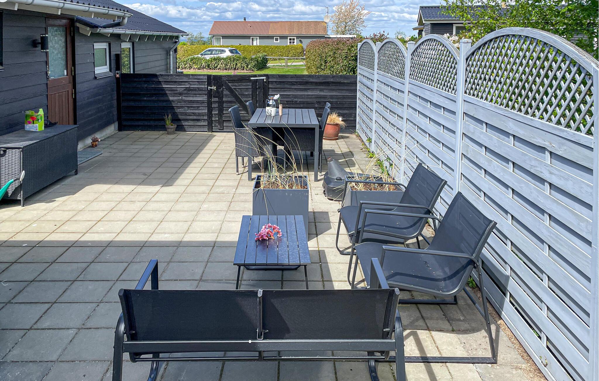 Ontdek dit houten vakantiehuis met prachtig uitzicht op Kleine Belt en drie terrassen in Skåstrup Strand.