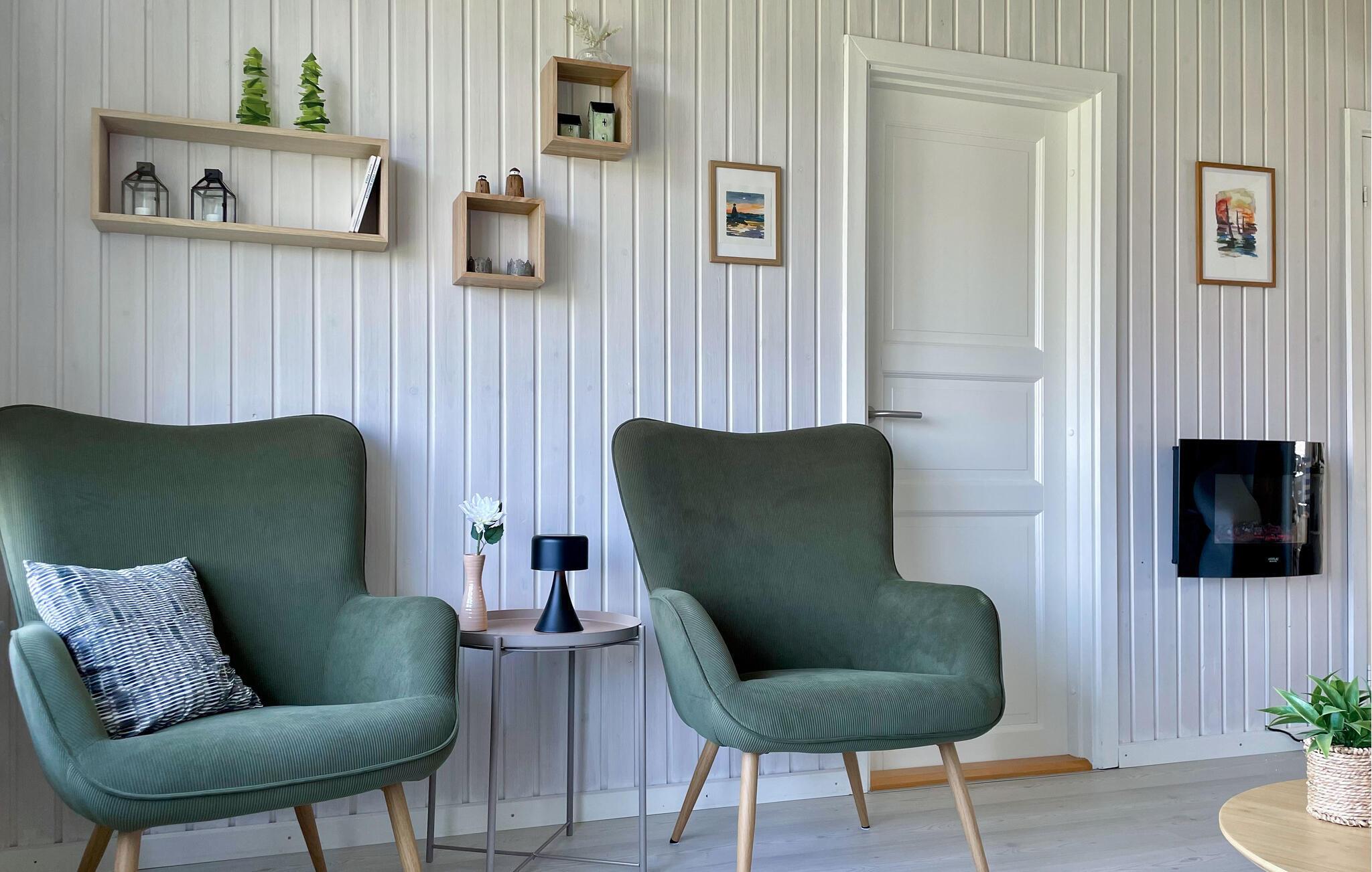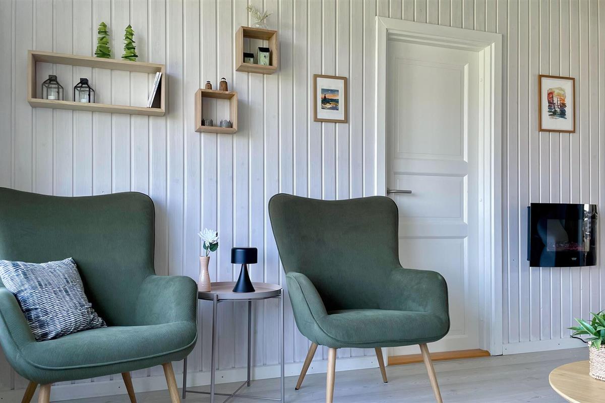 Je uitnodigende houten huis is open, met houten lambrisering en grote ramen die natuurlijk licht binnenlaten en een fantastisch uitzicht bieden over de velden en naar beneden naar het water. Kook in de goed uitgeruste keuken, dek de eettafel en geniet van je maaltijden terwijl je de prachtige omgeving in je opneemt. Maak het jezelf gemakkelijk op de bank en sluit de avond af met een goede film: