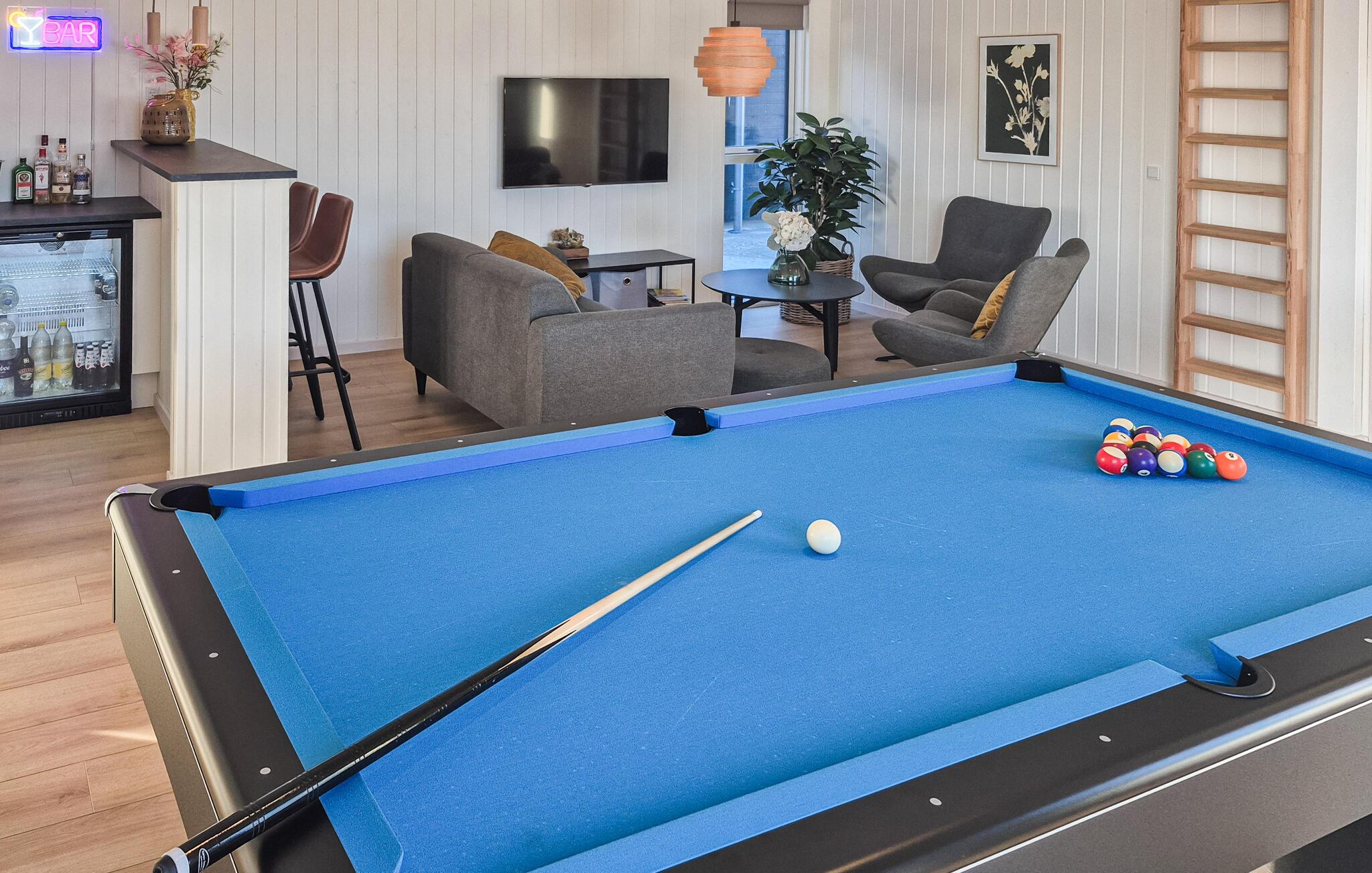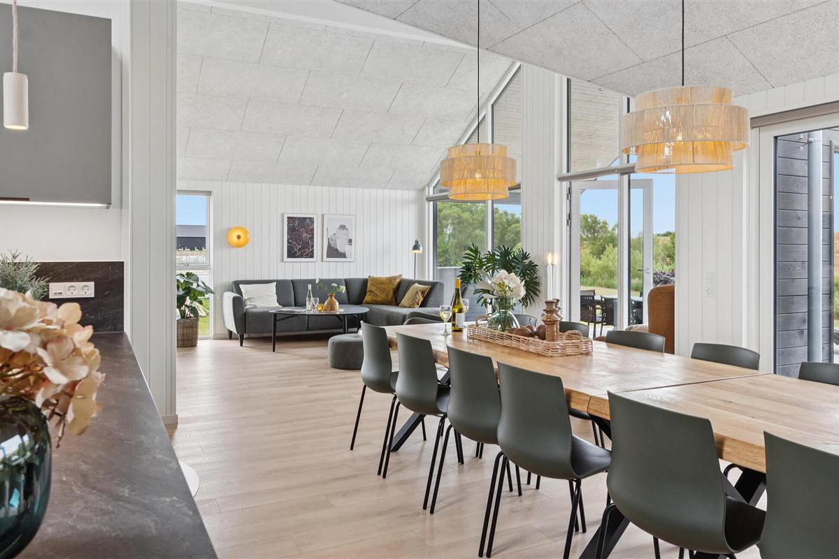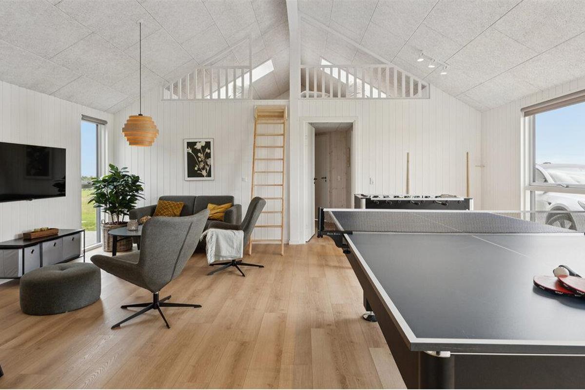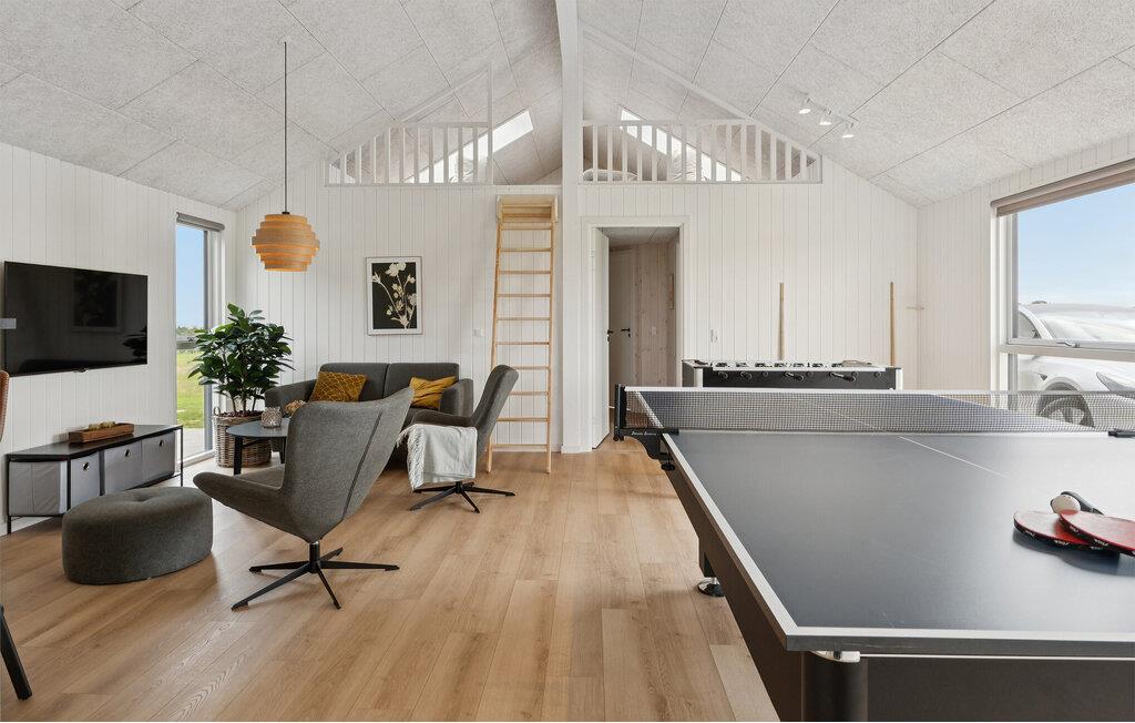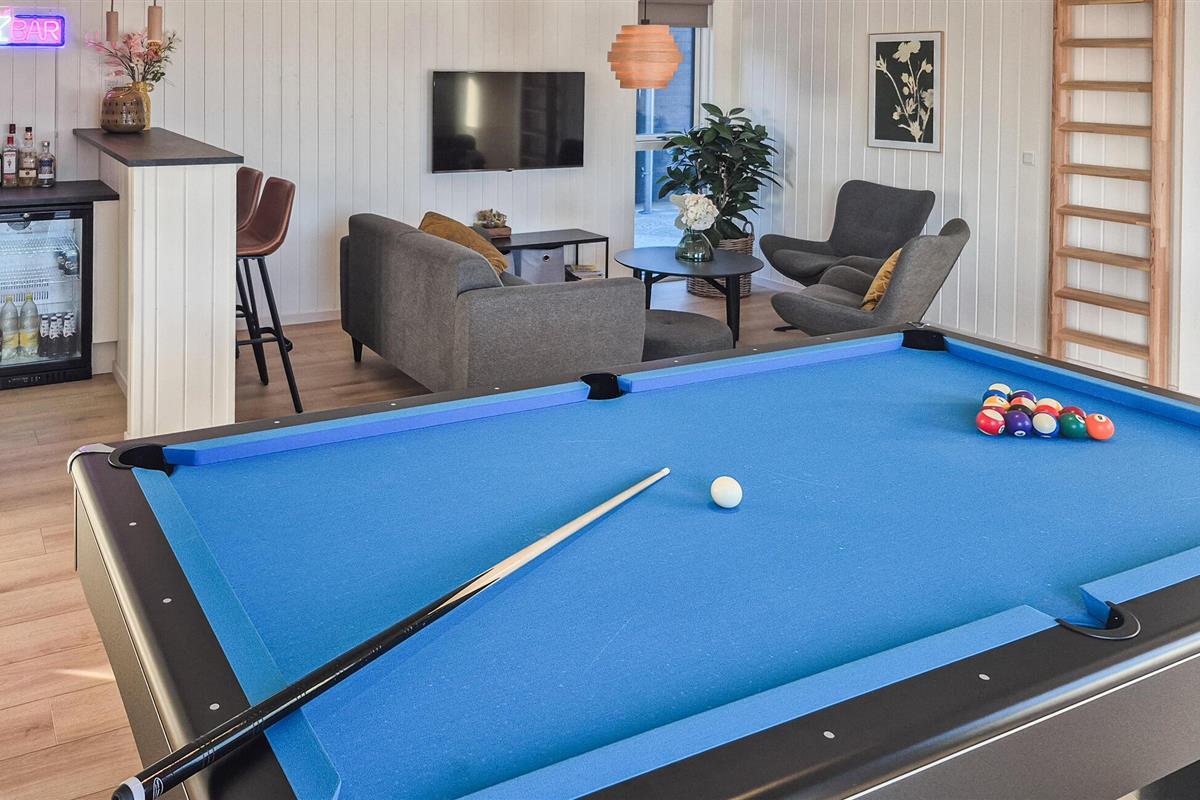 Licht en aantrekkelijk, dit ruime vakantiehuis verwelkomt je en biedt alles wat je nodig hebt voor een ontspannen vakantie waar grote en kleine familieleden aan hun trekken zullen komen. Breng uren vol plezier door in het zwembad met glijbaan en ontspan in de sauna. Verheug je op gezellige avonden als je terugkomt van je avonturen, maak het jezelf gemakkelijk aan de eettafel met een prachtig uitzicht op het buitenleven, laat het diner naadloos overgaan in een spelletjesavond, vermaak je met tafelvoetbal of biljart of praat nog lang na in een gezellige sfeer.