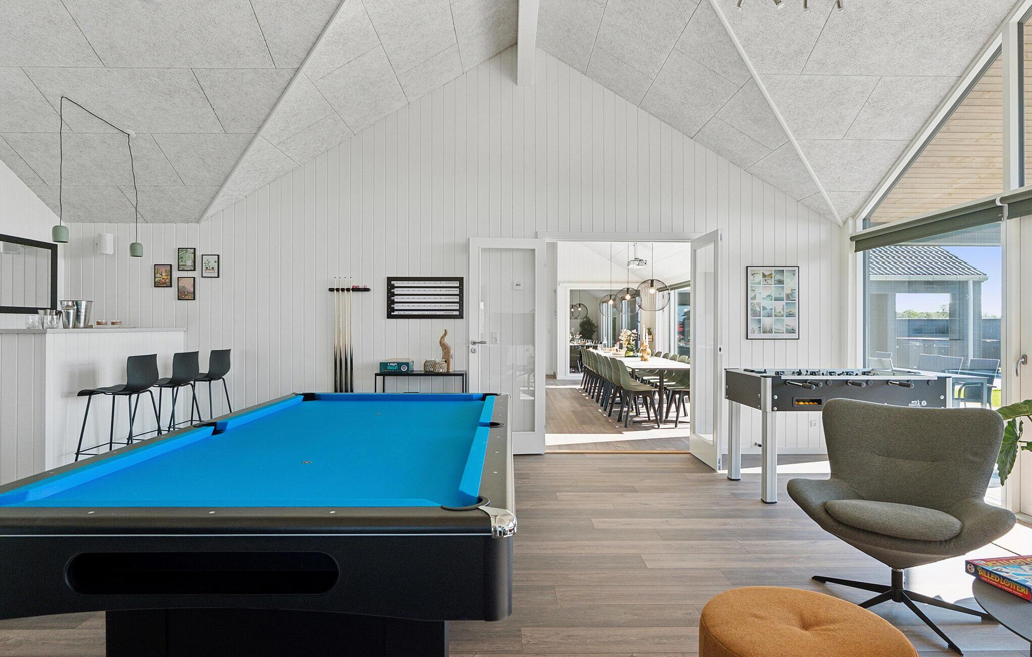Verheug je op een huis met een stijlvolle sfeer, hoge plafonds en grote ramen waardoor het daglicht zachtjes naar binnen valt. De woonkamer met zijn comfortabele banken en warme kleuren nodigt je uit om te ontspannen, misschien luister je naar muziek of kijk je samen naar een film op het grote scherm. En als je daarna zin hebt in wat beweging, neem dan een duik in het binnenzwembad, speel een spelletje pool of tafelvoetbal en breng na afloop een toost uit op de winnaar.