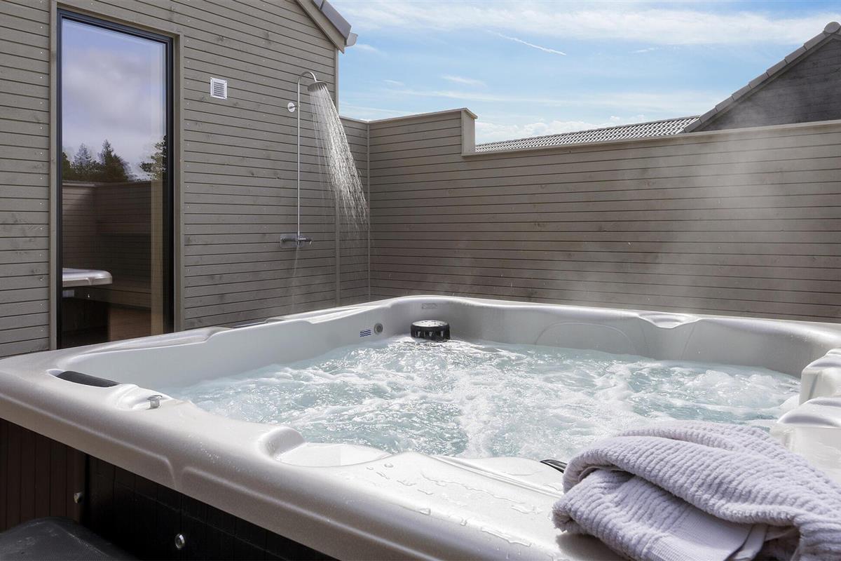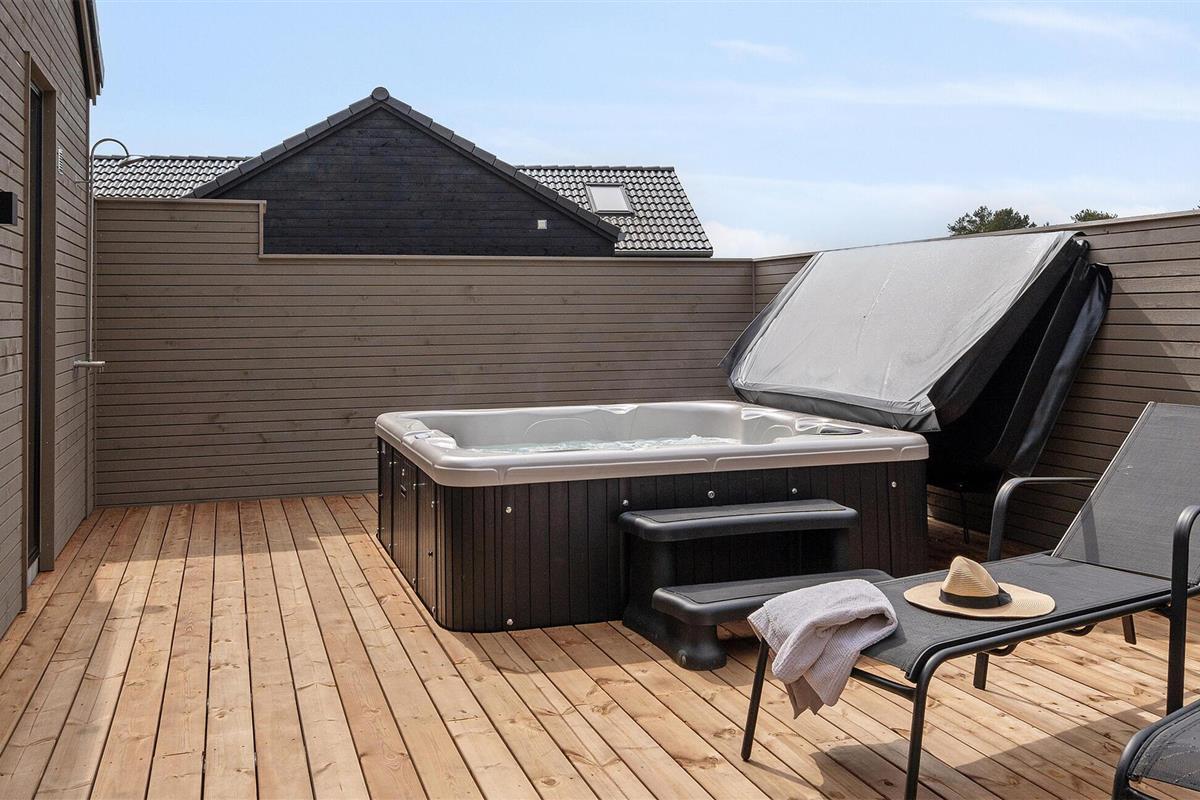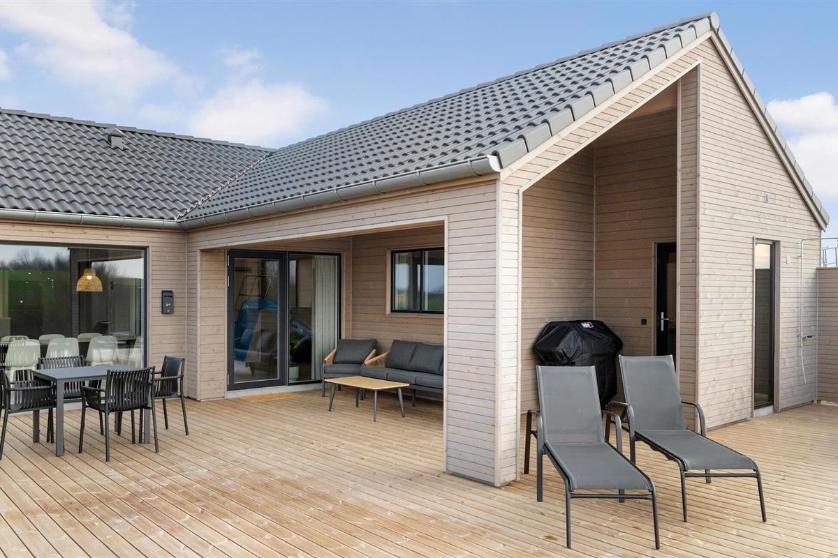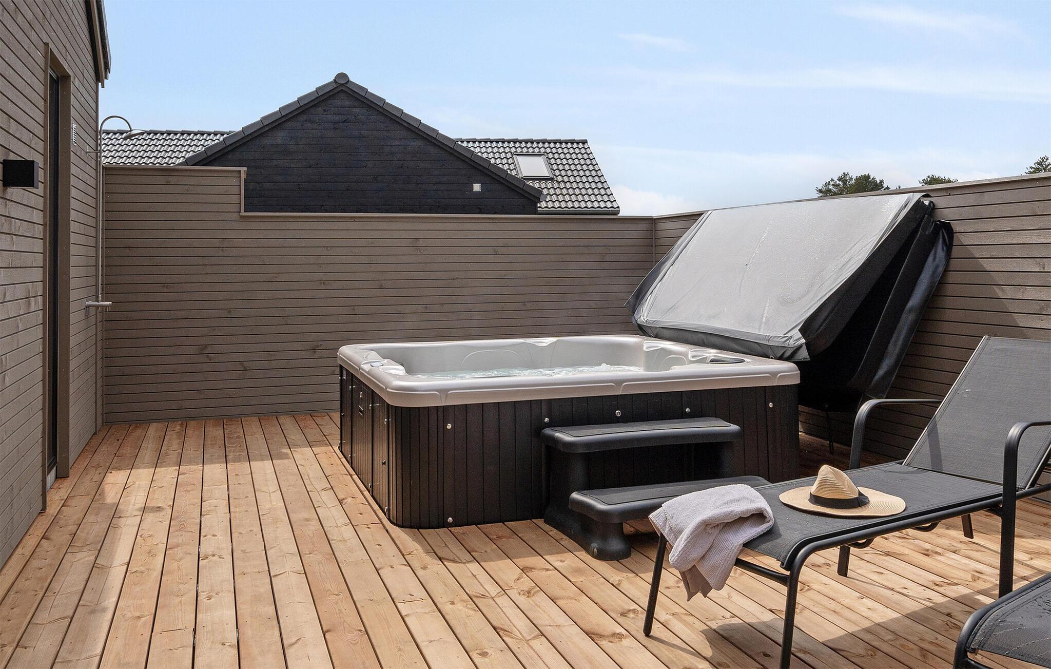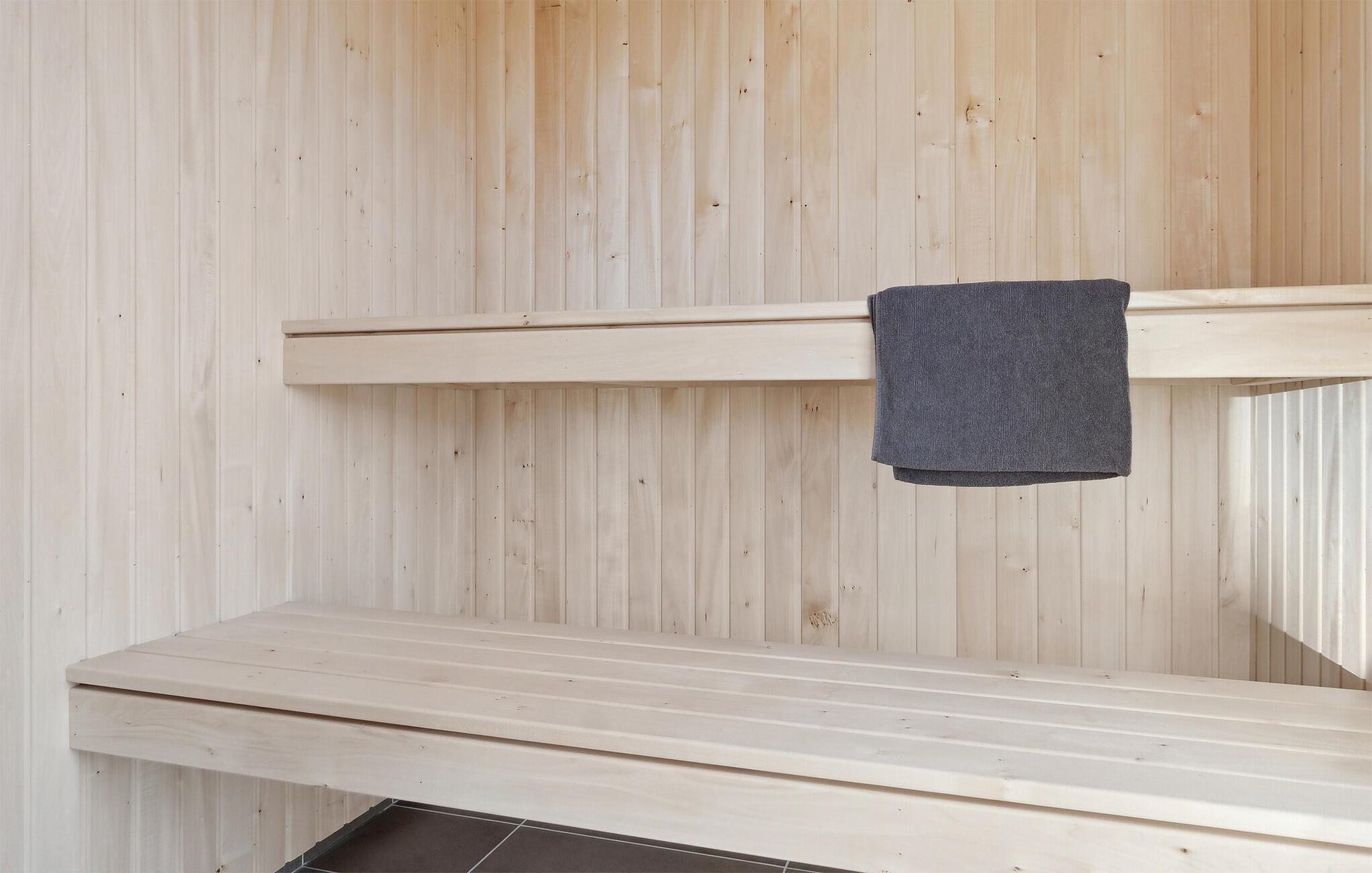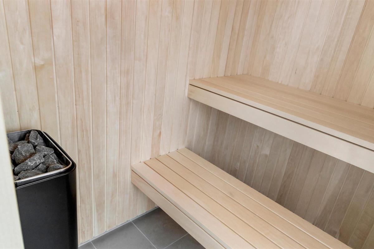 Buiten wacht een groot houten terras met eettafel en barbecue op je, terwijl de kinderen zich kunnen uitleven op de schommel of trampoline in de tuin. Het aparte wellnessterras nodigt uit tot ontspannende momenten in de whirlpool of sauna, ongeacht weer en wind.