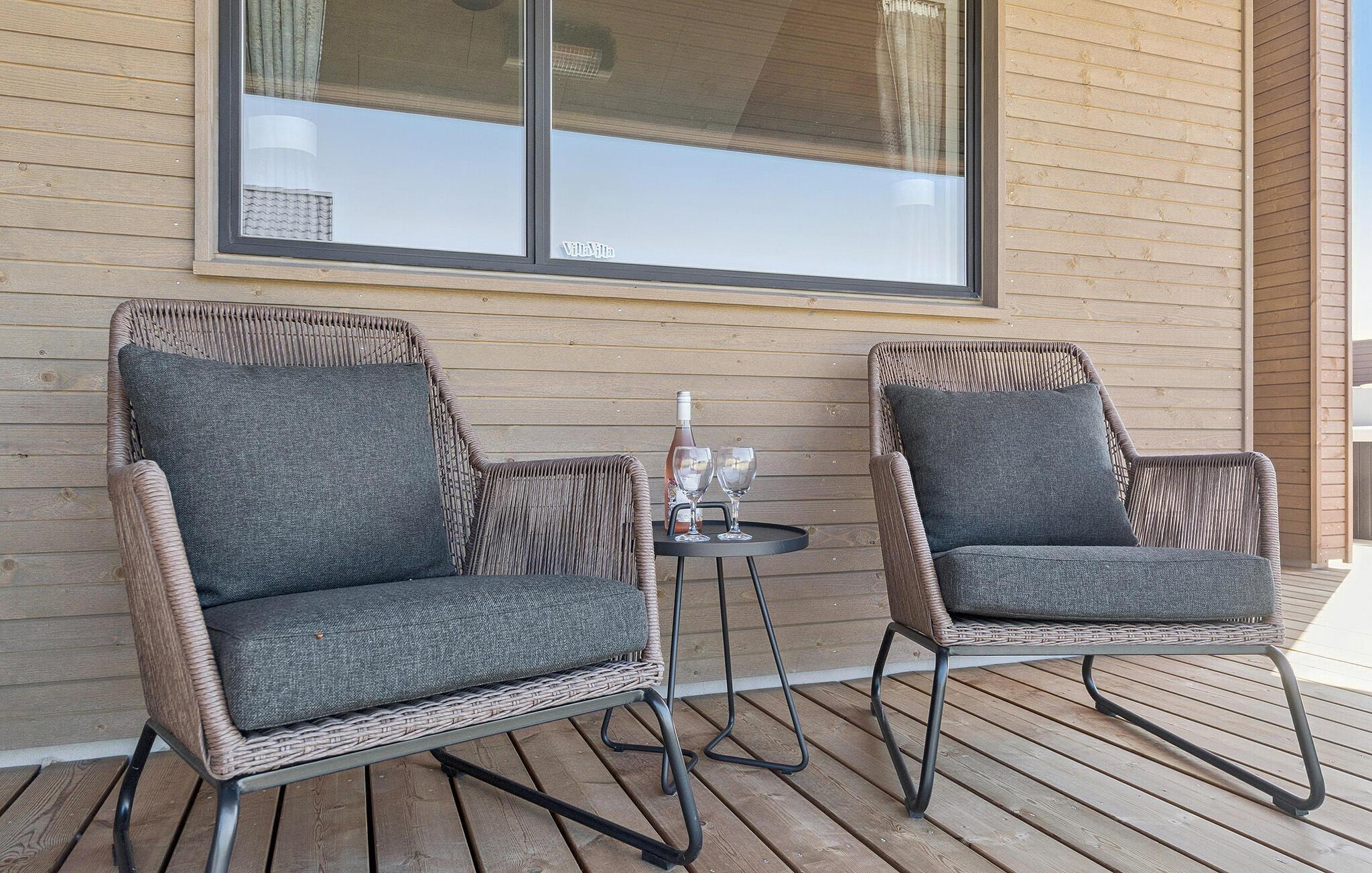 Buiten vind je een prachtig houten terras met een buitenbubbelbad, buitendouche en sauna, ideaal om te ontspannen in de frisse lucht. Kinderen zullen dol zijn op de grote tuin met trampoline en schommels. Een barbecue en tuinmeubilair zijn ook beschikbaar voor lange, gezellige avonden.