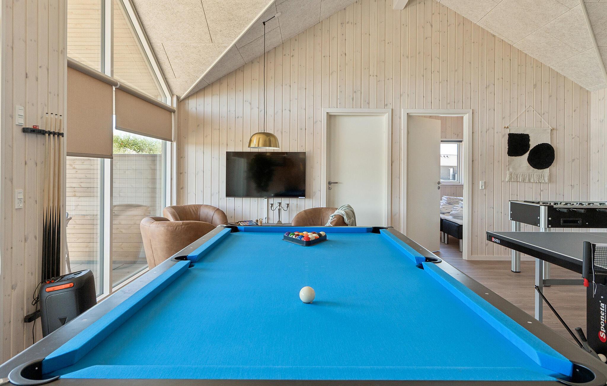 Dit fantastische vakantiehuis biedt uitstekende faciliteiten, een prachtige locatie en veel ruimte voor grote gezinnen of groepen vrienden. Een hoogtepunt van het huis is het indrukwekkende zwembad, waar jong en oud een duik kunnen nemen of van de waterglijbaan kunnen suizen. De activiteitenruimte biedt biljart, tafeltennis, darts, tafelvoetbal en een kleine bar met koelkast voor plezier en spelletjes voor alle leeftijden. Gebruik je maaltijden in de ruime gemeenschappelijke ruimte met een lange eettafel voor alle gasten.