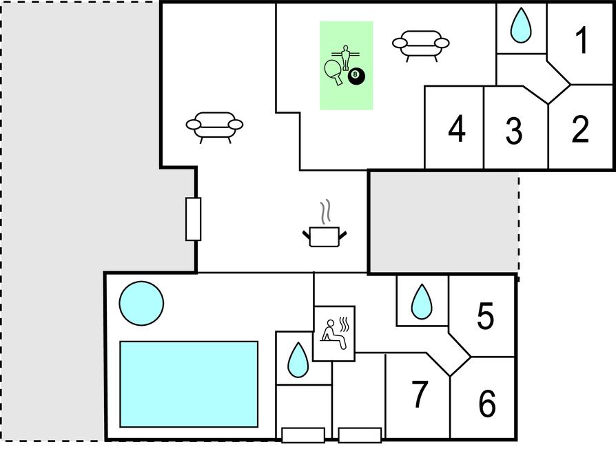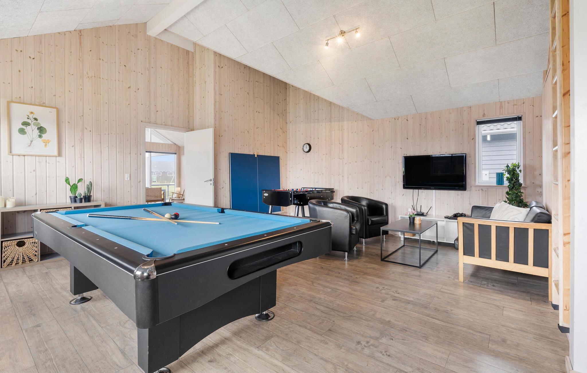 Interessant vakantiehuis met goede inrichting en leuke details. Het huis past goed bij een gezin. U kunt de kinderen laten rondrennen in de grote zwembadruimte. Er is ook een activiteitenruimte met tafeltennis, biljart en een kleine bar met koelkast. De grote zoom is zeker een hit bij uw kinderen. De keuken is zeer goed uitgerust en ruim bemeten met zijn 2 fornuizen en vaatwassers zoals ruime koelmogelijkheden. Het huis ligt in een prachtig natuurgebied en het zandstrand ligt op loopafstand. Het huis is ook perfect om te wandelen. Accommodatie en eindschoonmaak dienen in het huis betaald te worden samen met de overige verbruikskosten. Beddengoed, handdoeken, kinderbedje en stoel kunnen tegen betaling gehuurd worden bij het plaatselijke kantoor.