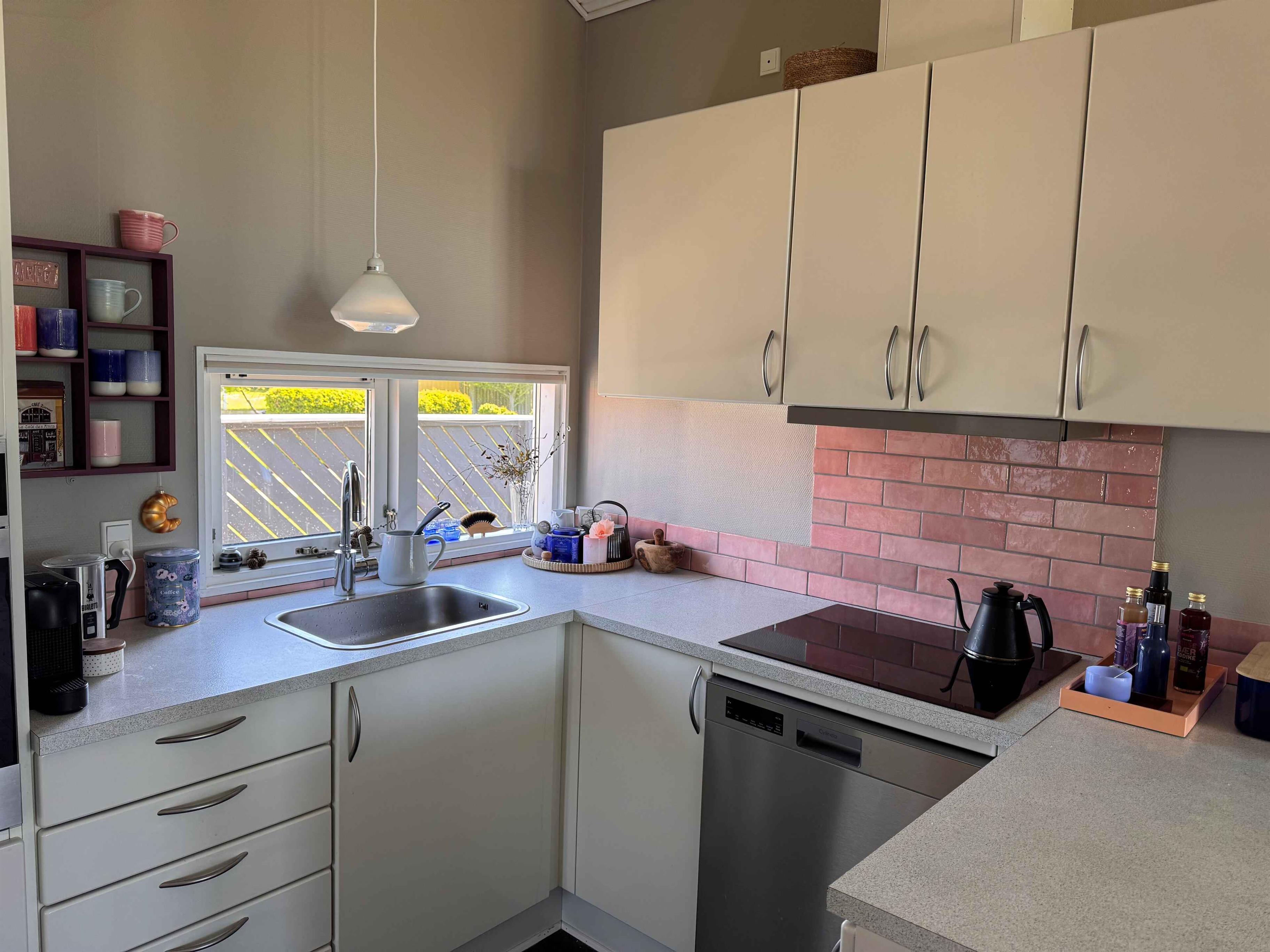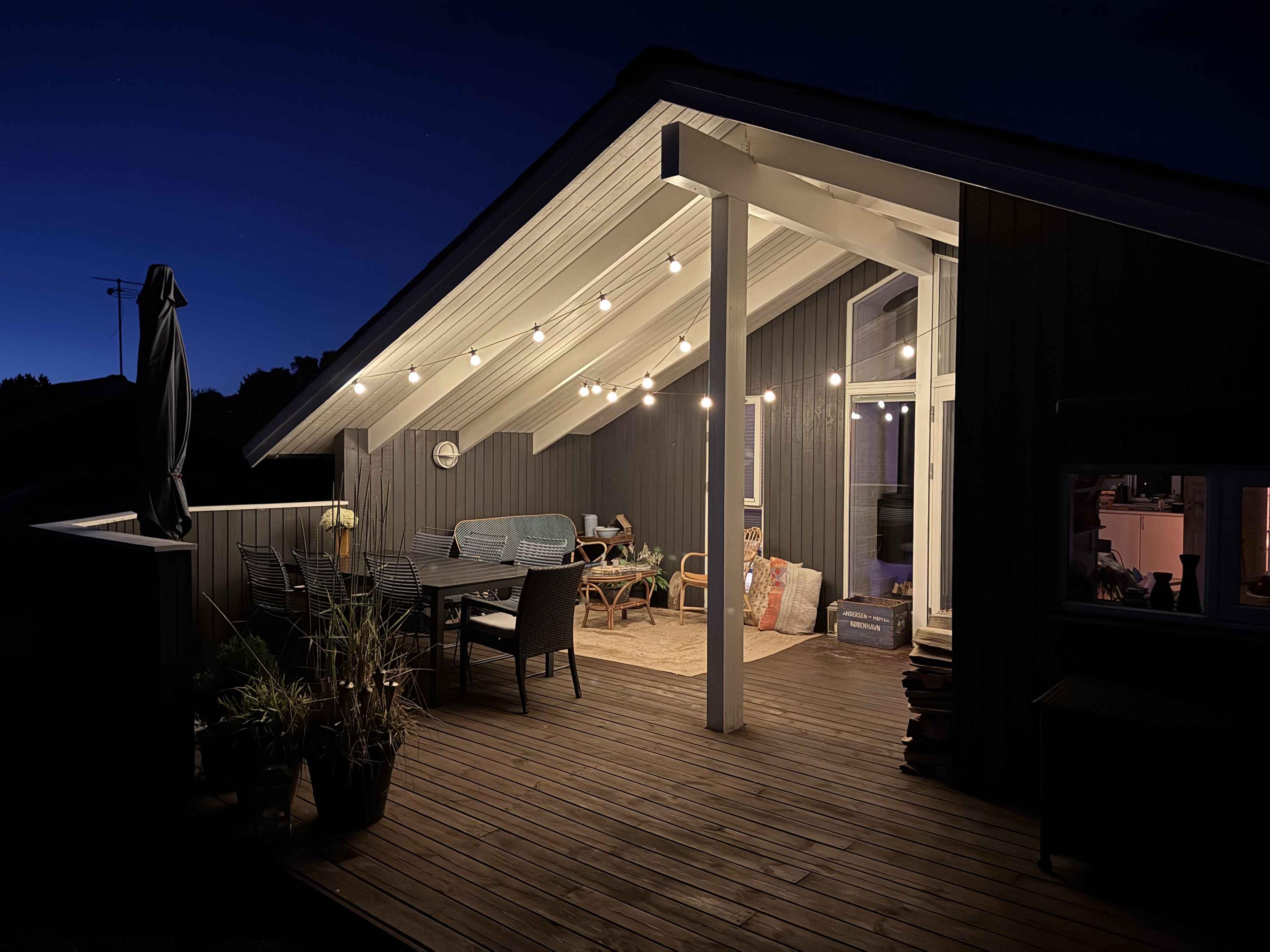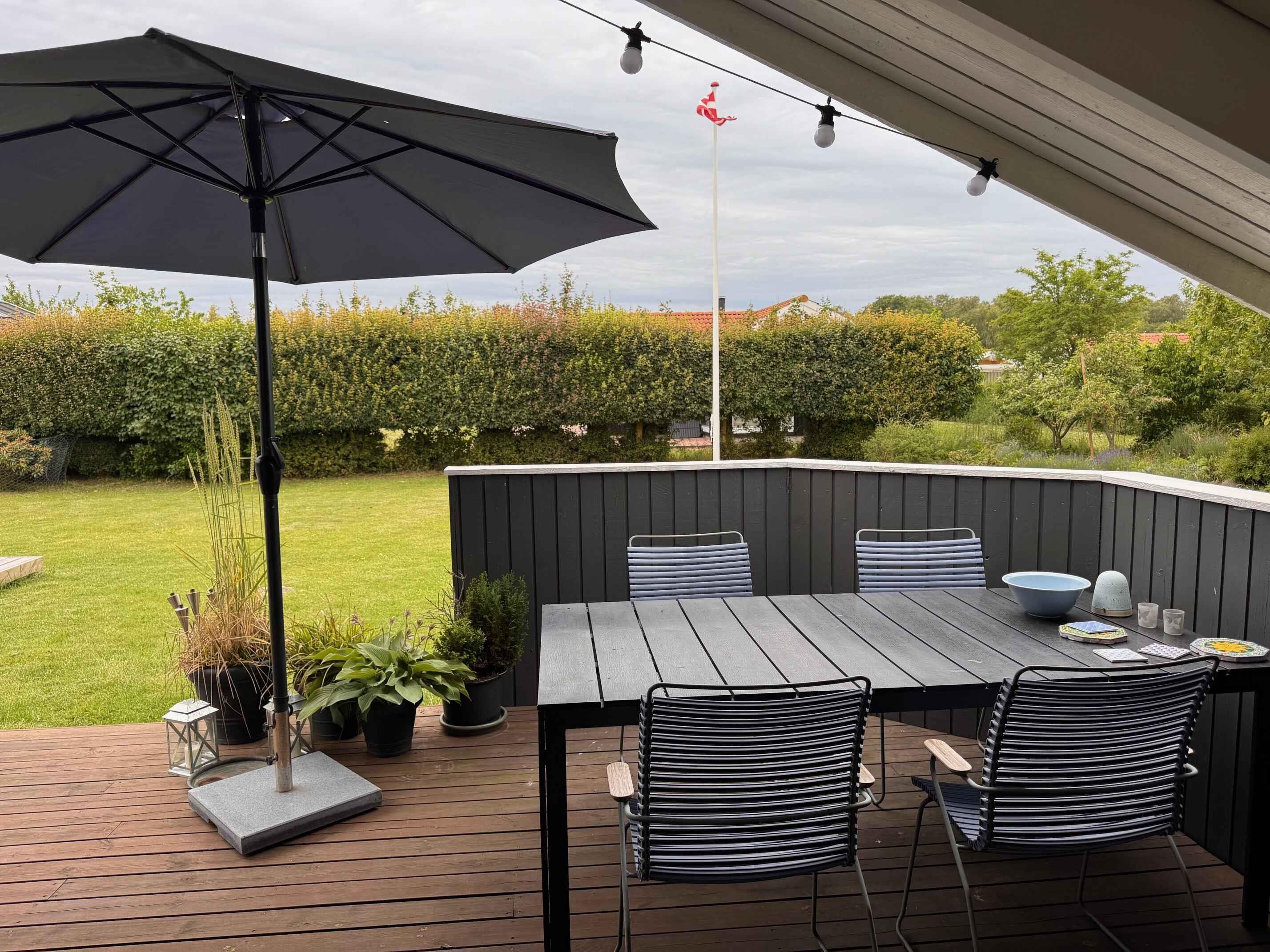 Knus zomerhuisje nabij strand en natuur in Skælskør, met moderne keuken, twee terrassen en trampoline voor buitenplezier.