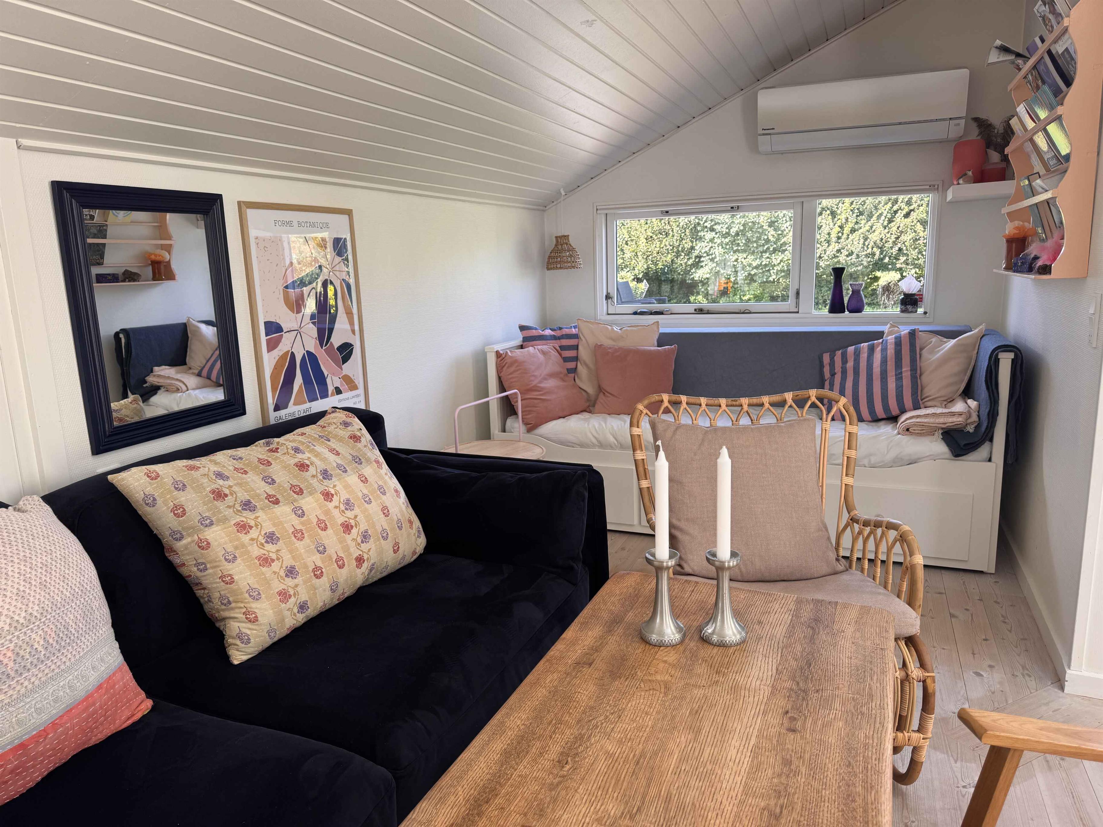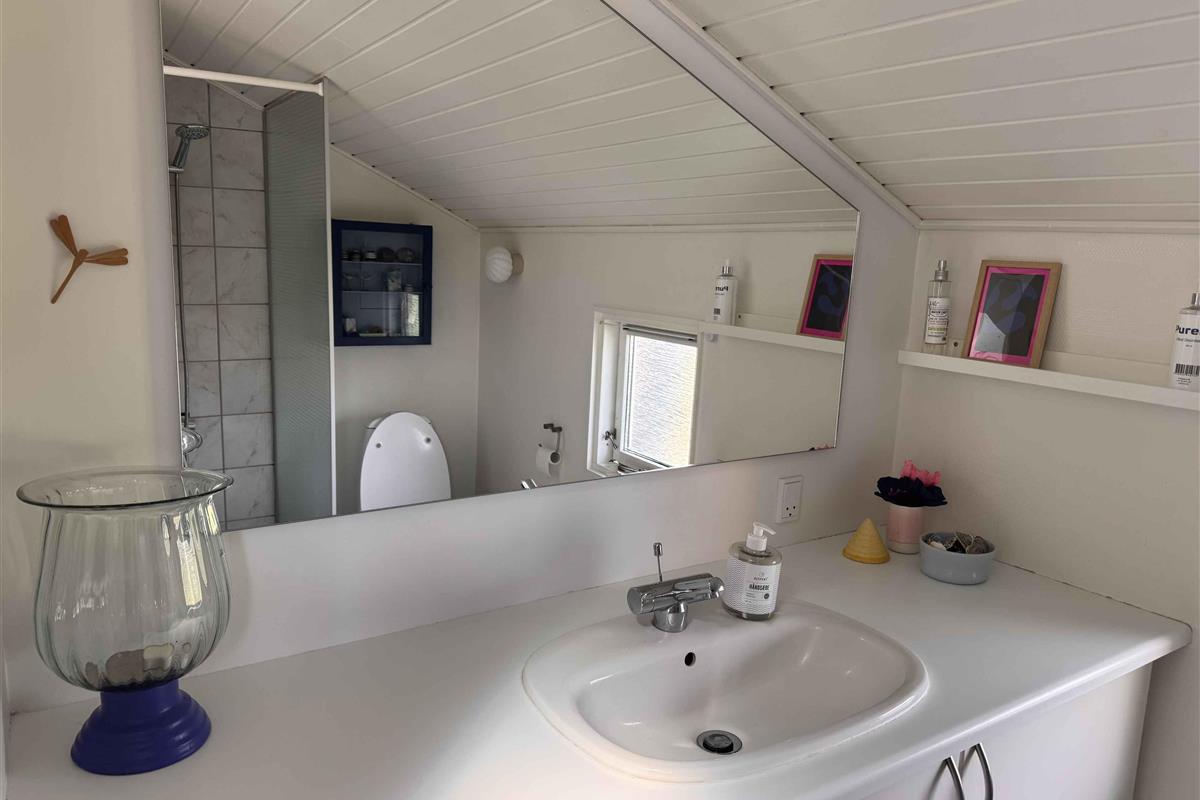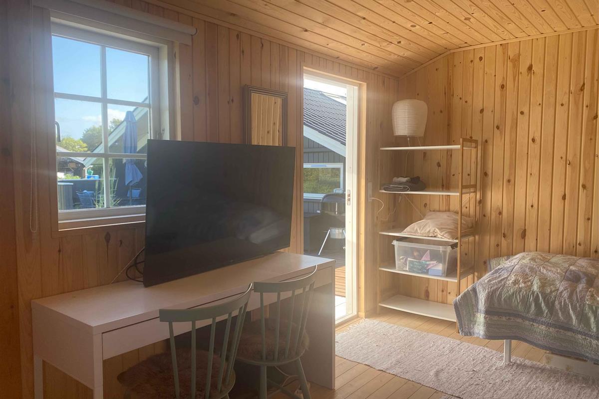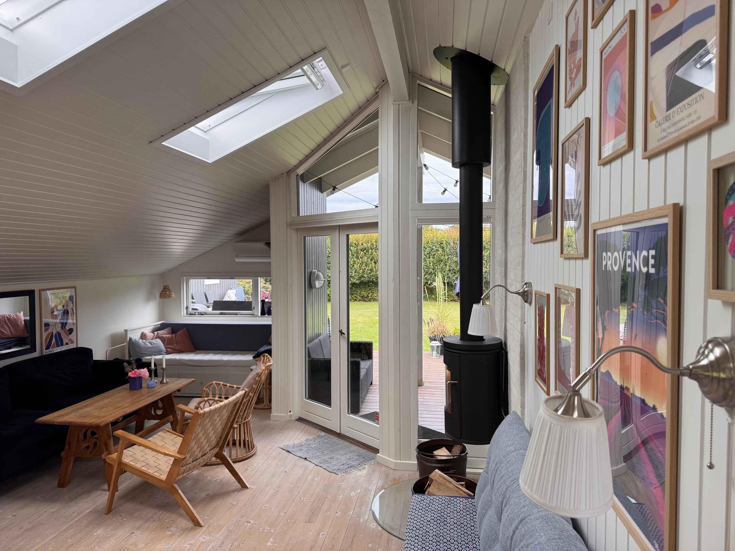 Dit kleine pareltje van een zomerhuis is warm en persoonlijk ingericht, uitnodigend tot rust, gezelligheid en kwaliteitstijd. Het belooft een week vol ontspanning, bordspellen, baden vanaf de “Koninginsteiger” en prachtige wandelingen in de natuur. In het hart van het huis ligt een lichte, uitnodigende woonkamer, verbonden met een kleiner maar functioneel keukenblok. Er is ruimte voor koken, spelen aan de eettafel en relaxen op de bank. Grote dakramen laten daglicht binnenstromen en geven een open, lichte sfeer – ongeacht het weer. Er zijn twee slaapkamers – één groot en één kleiner – beide met tweepersoonsbed. In de woonkamer staat bovendien een slaapbank voor twee extra personen. Bij het huis hoort ook een gezellig bijgebouw als tv-kamer, ideaal om favoriete content van je mobiel te streamen – of voor een ongestoorde dut op een van de twee bedden die functioneren als bank. Buiten vind je twee fijne terrassen: een ochtendterras voor de eerste kop koffie bij zonsopgang in het oosten, en een avondterras op het westen met barbecue en comfortabele meubels, perfect voor middagcocktails en diners onder de lange zomeravonden – binnen of op het overdekte terras. Voor de jongste of speelse geesten is er een ingraafbare trampoline – ideaal om buiten te spelen en bewegen. Grote grasvelden nodigen bovendien uit tot balspel en Vikingspel. Let op: Niet te huur voor commercieel gebruik.