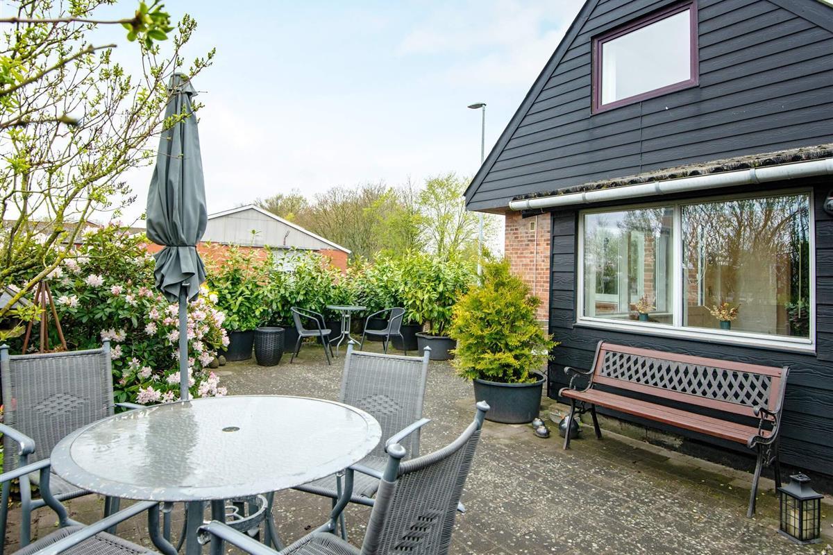 1 Außenbereich: Gartenmöbel, Holzkohlegrill, Indhegnet grund