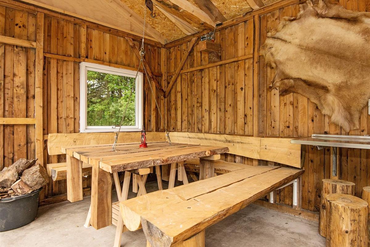 Und: Terrasse, Außendusche, E-Heiz., Luft-Luft-Wärmepumpe, Spielgeräte, Grill, Waldgrundst. 20000 m2, gemischte Möblierung, reizvolle Lage