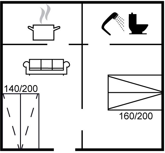 Er zijn in totaal 1 slaapkamer. De slaapplaatsen zijn als volgt verdeeld: 2 slaapplaatsen in tweepersoonsbed. 2 slaapplaatsen in slaapbanken (tweepersoons). 2 van deze slaapplaatsen bevinden zich in de huiskamer. Verder is kinderbed ter beschikking.