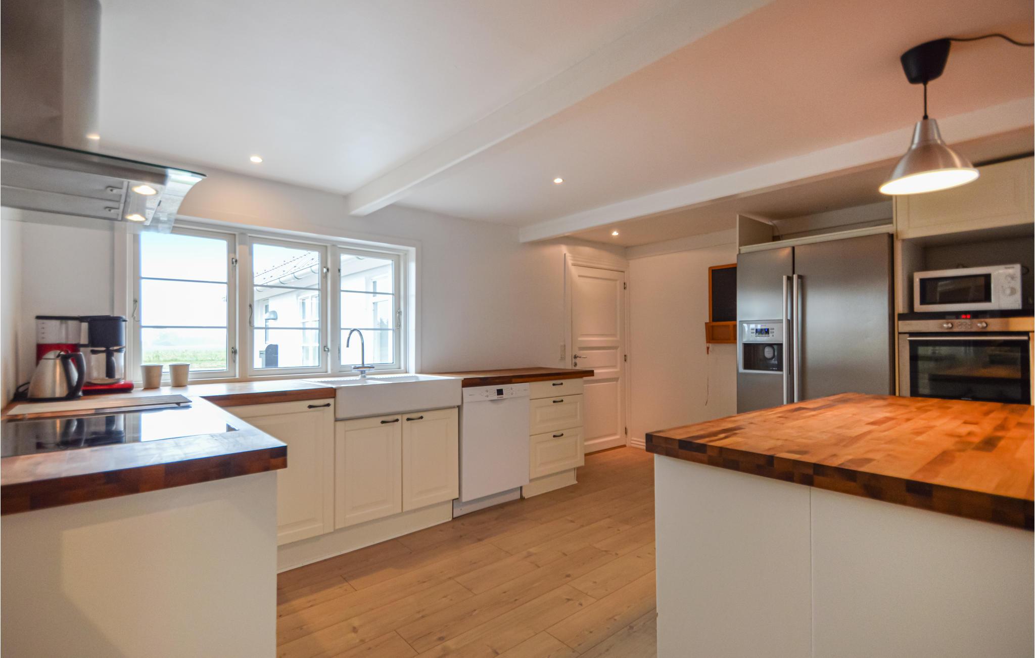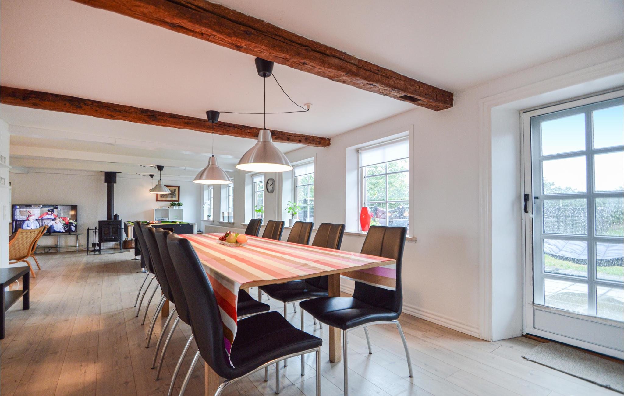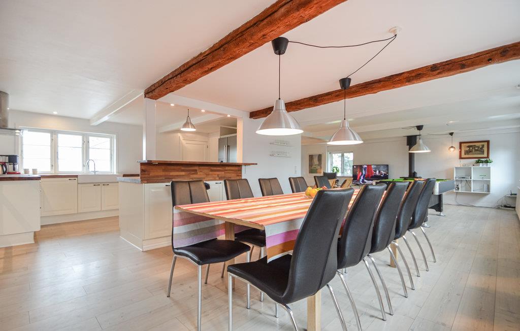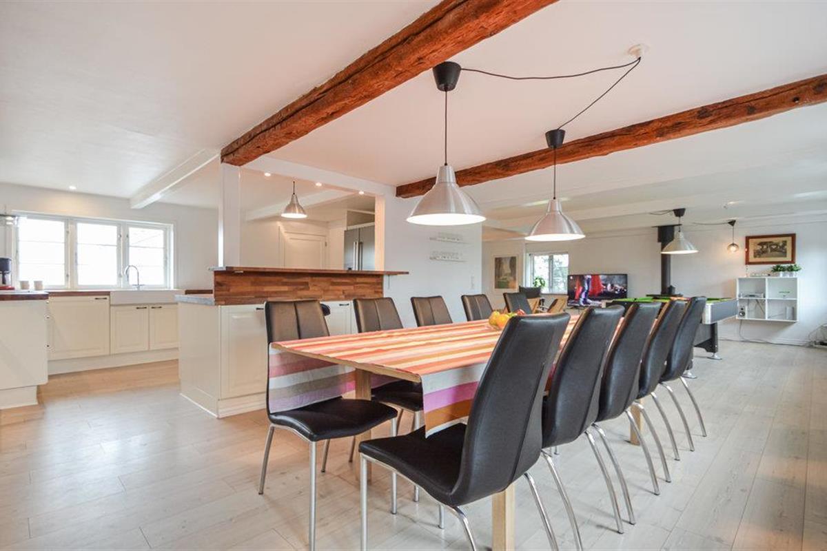 Dit vakantiehuis uit 1740 is zeer ruim en charmant, de originele oude balken in het plafond zijn nog zichtbaar. Er zijn 6 slaapkamers in het huis voor in totaal 12 personen - 3 van de kamers bevinden zich op de 1e verdieping en hebben een iets lagere plafondhoogte. Vanuit de keuken heb je uitzicht op de velden en directe toegang tot de eetkamer en de woonkamer. Je kunt meerdere uren doorbrengen in de activiteitenruimte, die zowel een pooltafel als tafelvoetbal bevat.