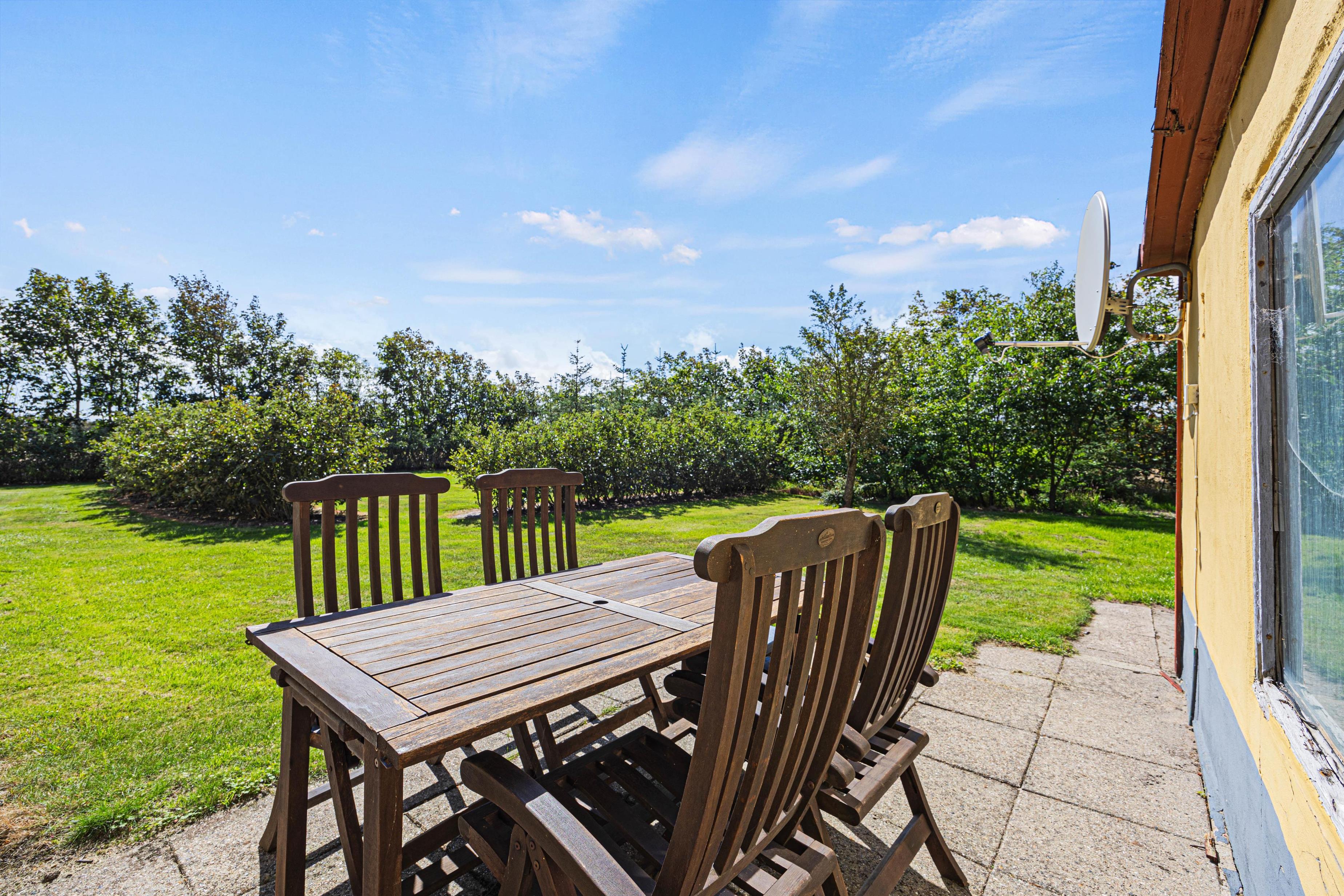 The 1,500-square-metre lawn provides plenty of space for family activities. Why not try a game of Viking chess (Kubb) or other outdoor sports? The open terrace is perfect for relaxation, where you can unwind with a good book in the comfortable garden furniture.