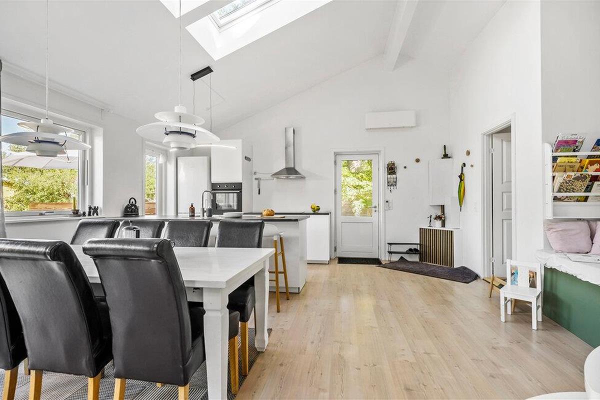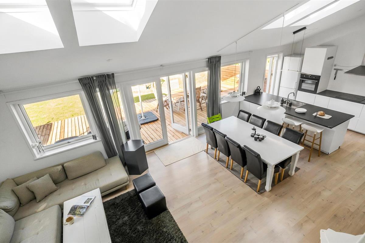 Geniet van de aangename sfeer van dit huis, dat indruk maakt met zijn lichte kamers, vriendelijke inrichting en mooie details. Begin de dag met een ontspannen ontbijt aan de eettafel in de open woonkamer. De grote ramen laten het ochtendlicht binnen en creëren een warme sfeer. Gebruik de ruimte voor gezamenlijke maaltijden, stimulerende gesprekken of gezellige spelletjes en ontspan in de sauna.