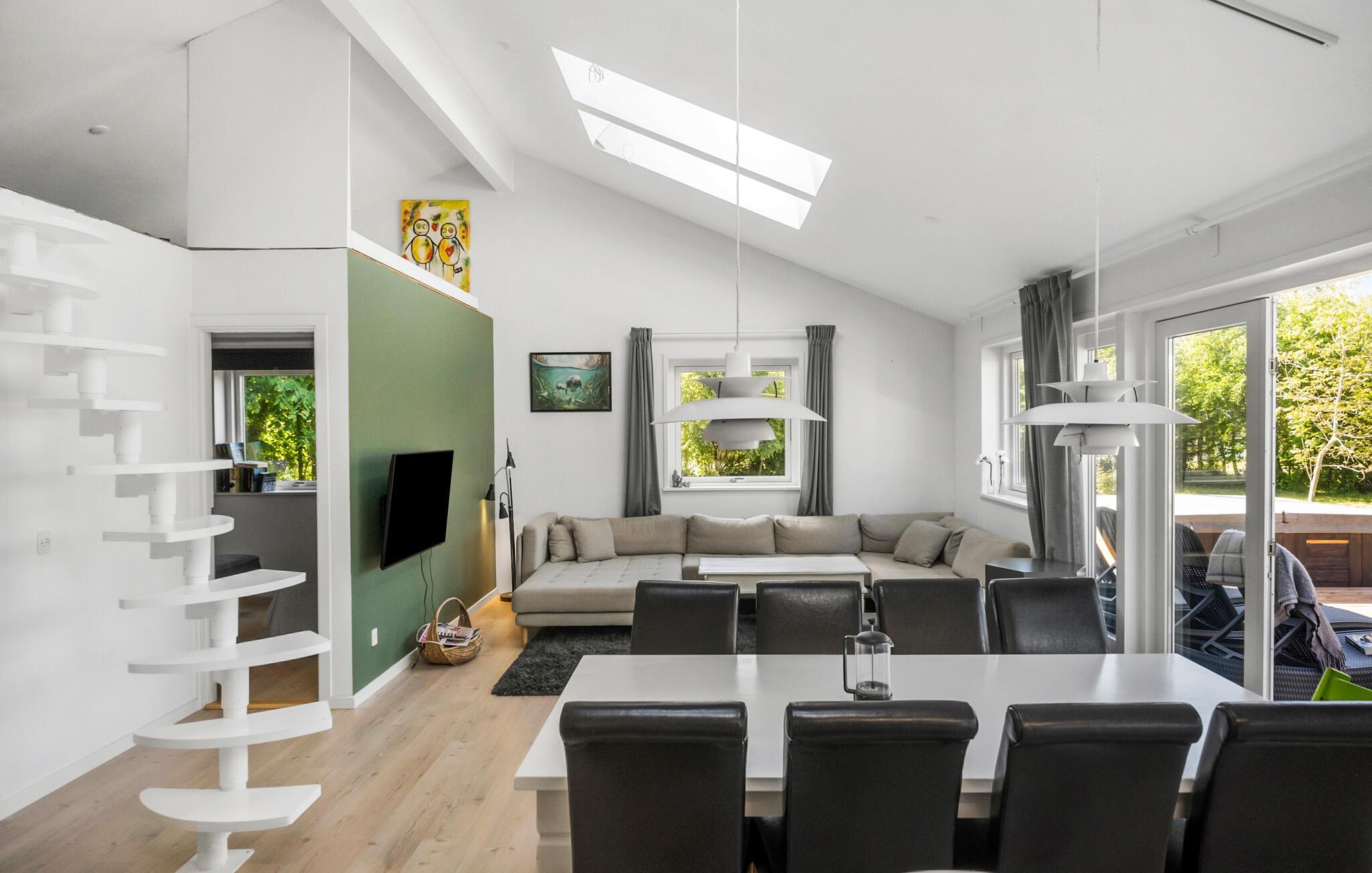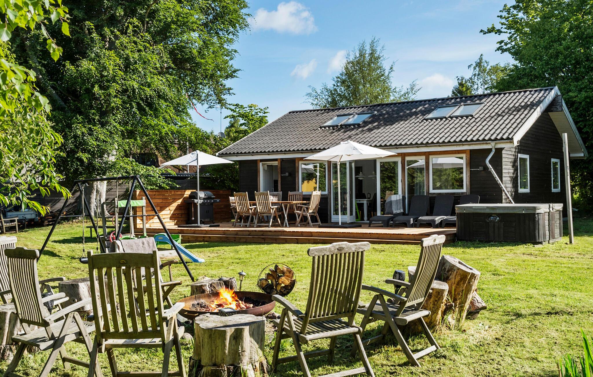 Ontspan in dit lichte vakantiehuis met sauna, tuin, open haard en buitenwhirlpool in Nykøbing Sj.