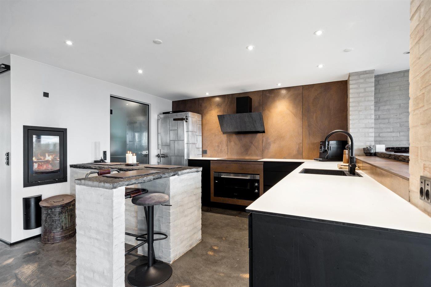 De keuken is uitgerust met koelkast Er is 4 inductiekookplaten, heteluchtoven en vaatwasser.