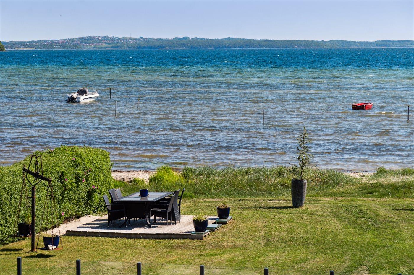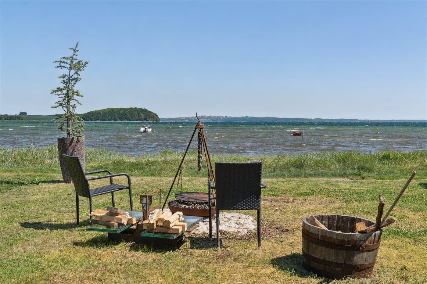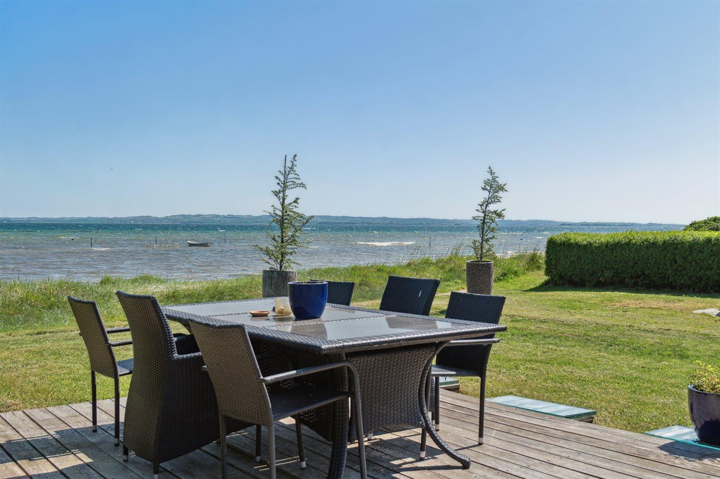 De vakantiewoning is gelegen op een 1068 m² groot aangelegde tuin. Afstand tot de zee 10 m. Dichtstbijzijnde winkel 1500 m. Er is een golfbaan op een afstand van 1200 m. Bij de vakantiewoning hoort terras. Afstand tot speelplaats 100 m. Buitensauna. Parkeerplaats bij het huis.