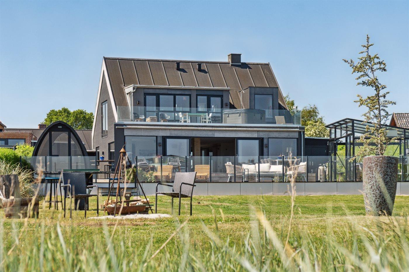 Modern vakantiehuis nabij zee met sauna, bubbelbad en ruime tuin voor ontspanning.
